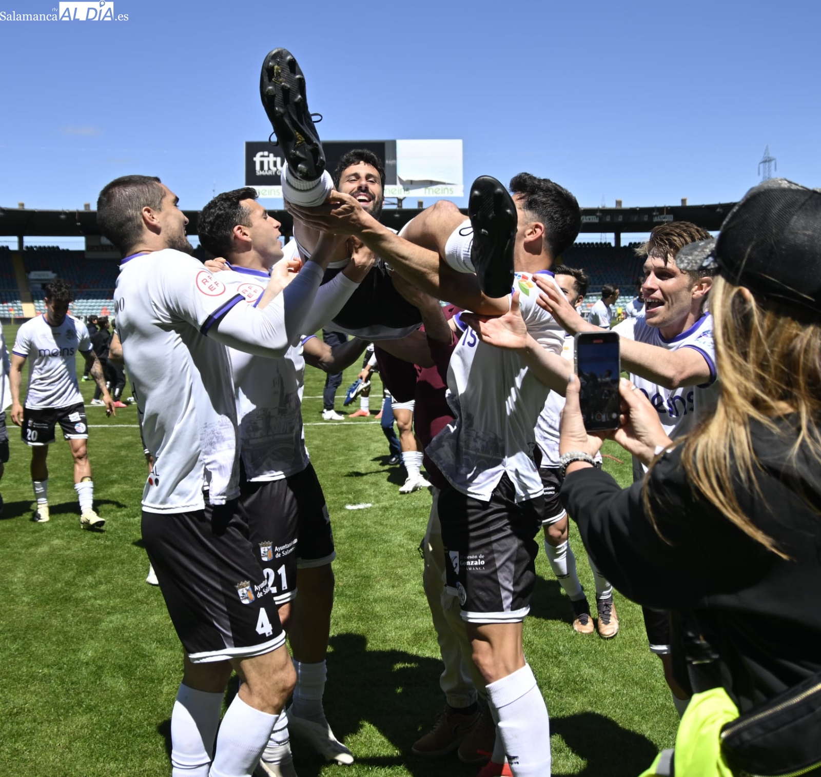 Fin al sufrimiento. El Salamanca UDS se ha salvado en la despedida de Diego Benito del Helmántico (3-1). El centrocampista, que se retirará tras acabar el curso, ha salido besando el césped y tendrá su último baile en Luanco ya con los deberes hechos al no haber opciones de playoff. Por su parte, Jorge García, que ha cosechado su tercera victoria seguida desde que llegó al cargo.