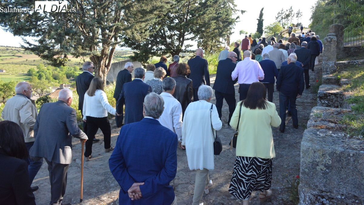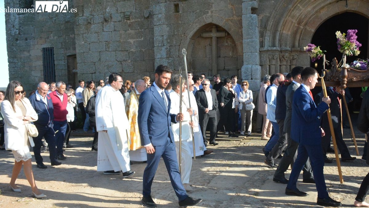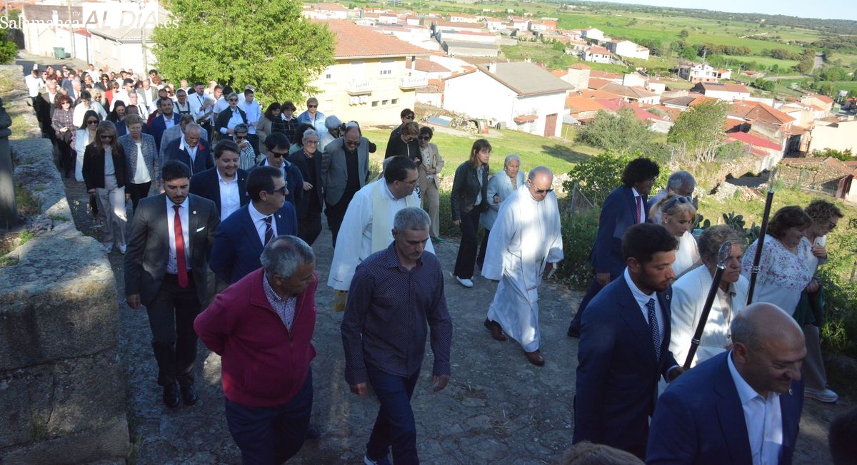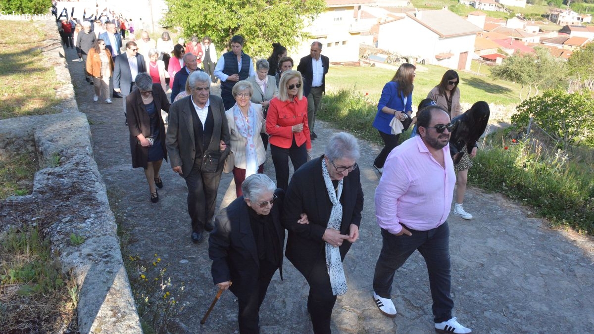 A lo largo de la empinada subida hasta el bello templo románico, los cofrades se relevaron por turnos para llevar las andas del Cristo, custodiada por los mayordomos y los sacerdotes del Abadengo, además del salesiano Eugenio Alburquerque.