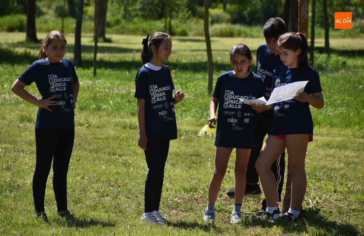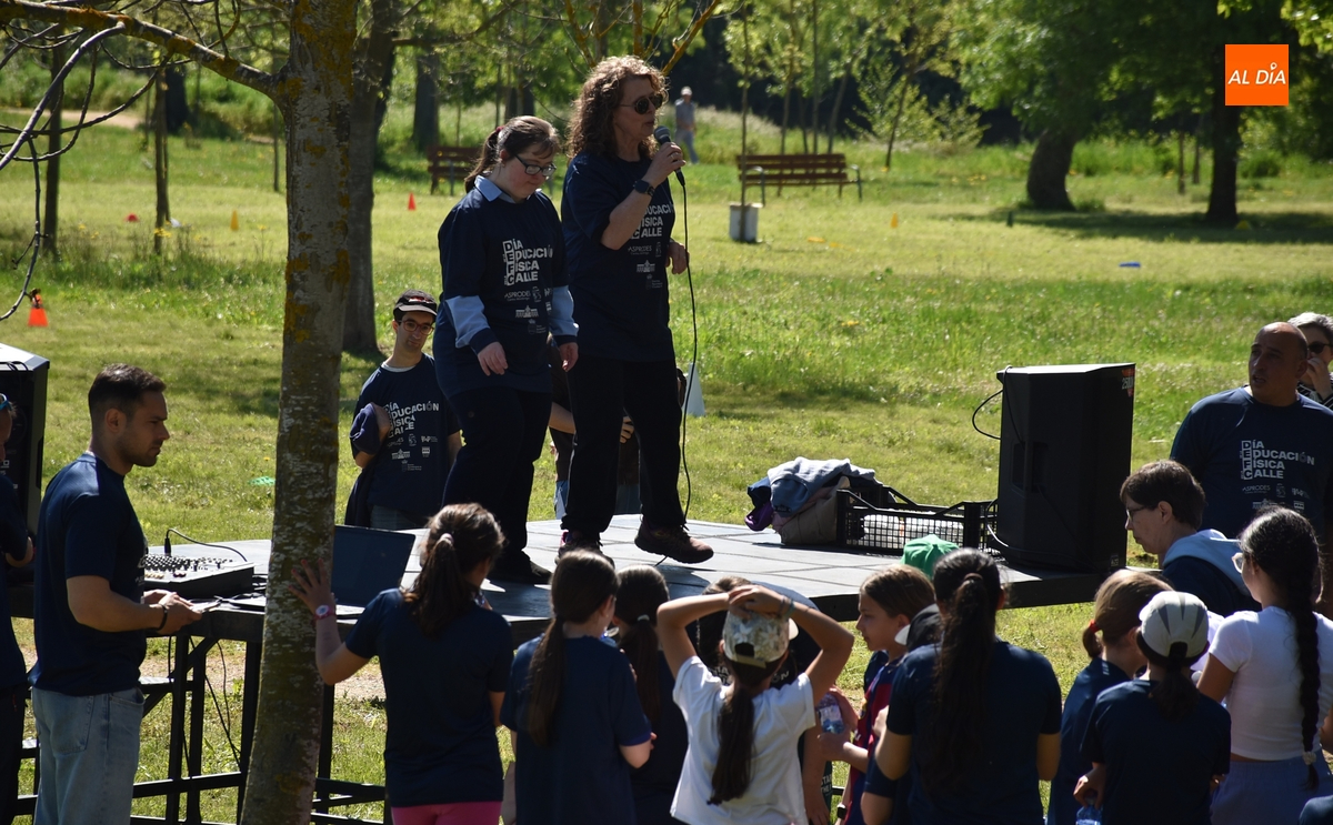En Ciudad Rodrigo, los protagonistas de este Día de la Educación Física en la Calle (que apareció en el calendario el jueves 10) fueron los escolares de 4º, 5º y 6º de Educación Primaria de todos los colegios (San Francisco, Miróbriga, El Puente y Misioneras de la Providencia-Santa Teresa), y también los usuarios del Centro Miróbriga de Asprodes, ya que el lema de este año era ‘La Educación Física: una poderosa herramienta de inclusión’.