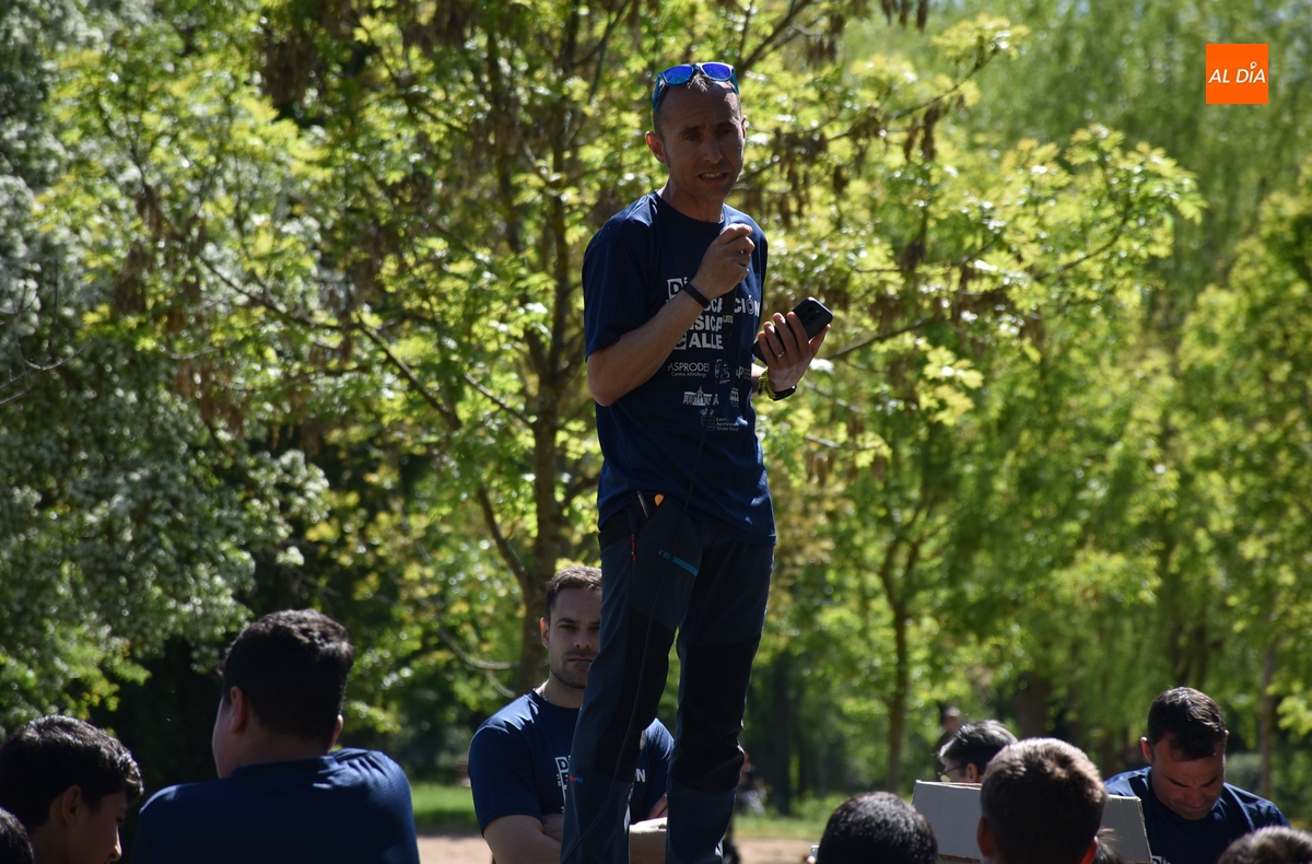 En lo que respecta a los escolares, fueron bajando por niveles a lo largo de la mañana hasta el entorno del río, desarrollando junto a los usuarios de Asprodes varias actividades, como una serie de juegos tradicionales, o un gran juego de orientación por toda la Alameda y El Picón.