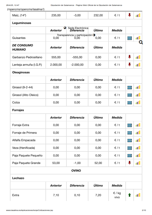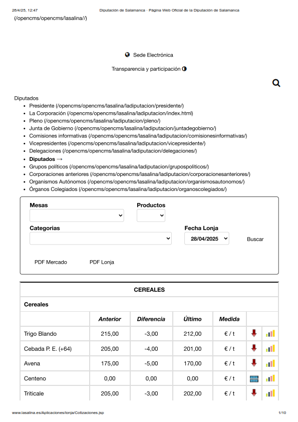 El cereal se sitúa ya en precios inasumibles para los productores tras la bajada de precios aprobada este lunes en la lonja de Salamanca, una sesión en la que también baja la paja y dejan de cotizar el garbanzo pedrosillano y la lenteja de la Armuña ante la llegada de la nueva cosecha. El vacuno repite precios en sacrificio y suben las hembras para vida con lechazos y corderos.