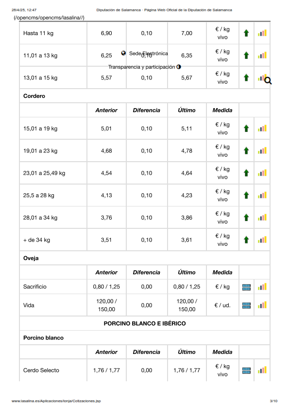 En la Mesa de Ovino se acordó una nueva subida generalizada de precios, en este caso de 0,10 €/kg para corderos y lechazos de todas las categorías. En la de Porcino Blanco únicamente se mueven los lechones con una bajada de -1,00 €/ud., en la de Ibérico los lechos suben 0,03 €/kg mientras que el Cebo de campo y el Cebo bajan 0,01 €/kg. Además, los marranos puros suben 0,05 €/kg y los cruzados 0,03 €/kg.