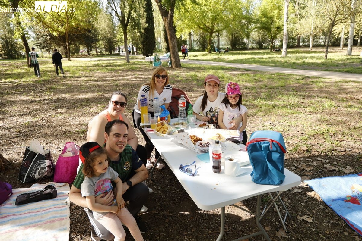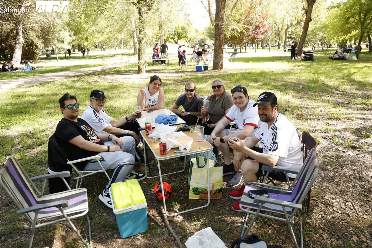 Miles de salmantinos disfrutan en la tarde de este lunes de una merienda de hornazo y diversión en familia y amigos. La Aldehuela es uno de los lugares típicos para celebrar este Lunes de Aguas y, un año más y pese a este día atípico con el apagón masivo en toda España, se ha vuelto a llenar.