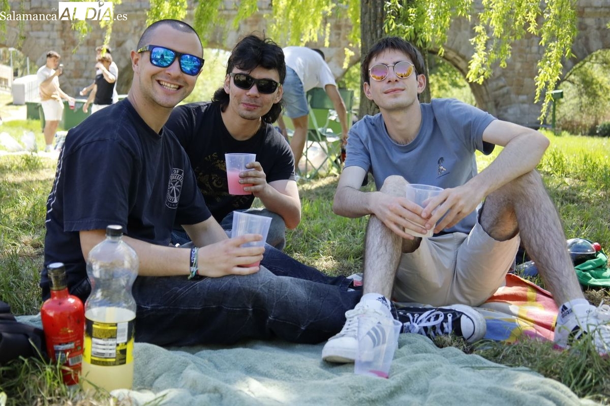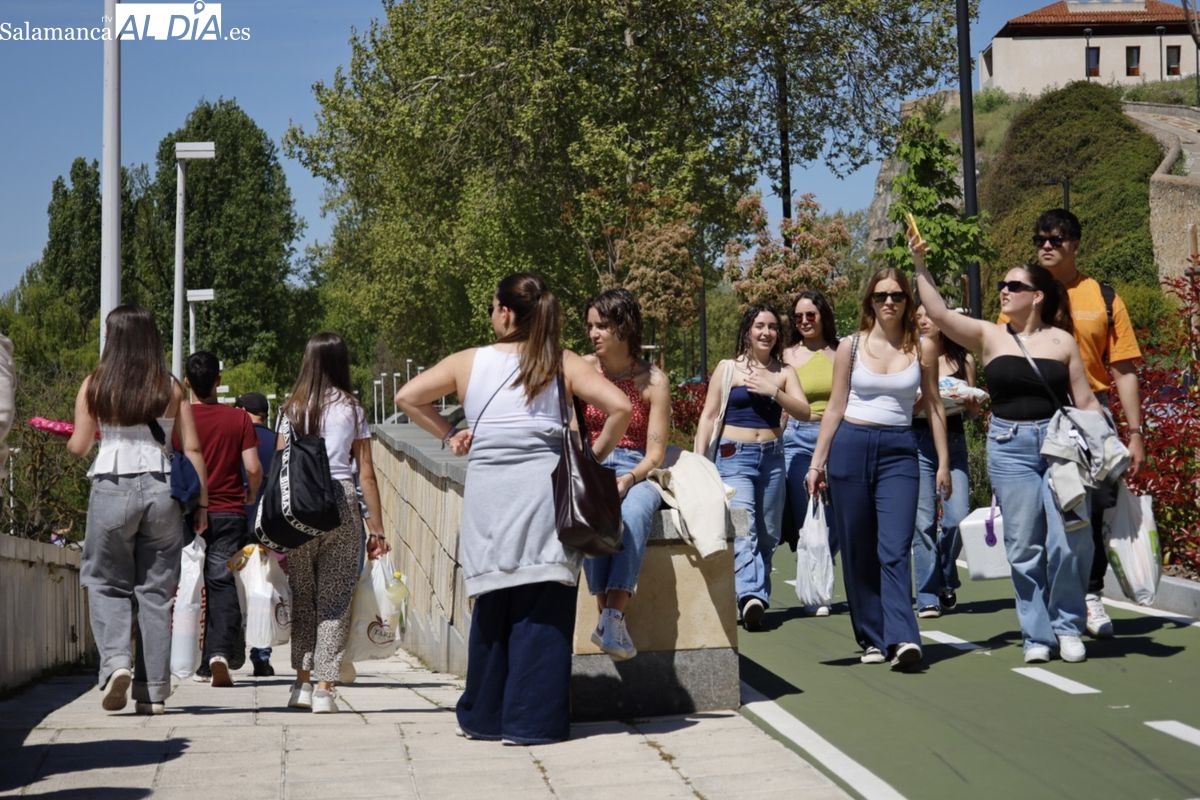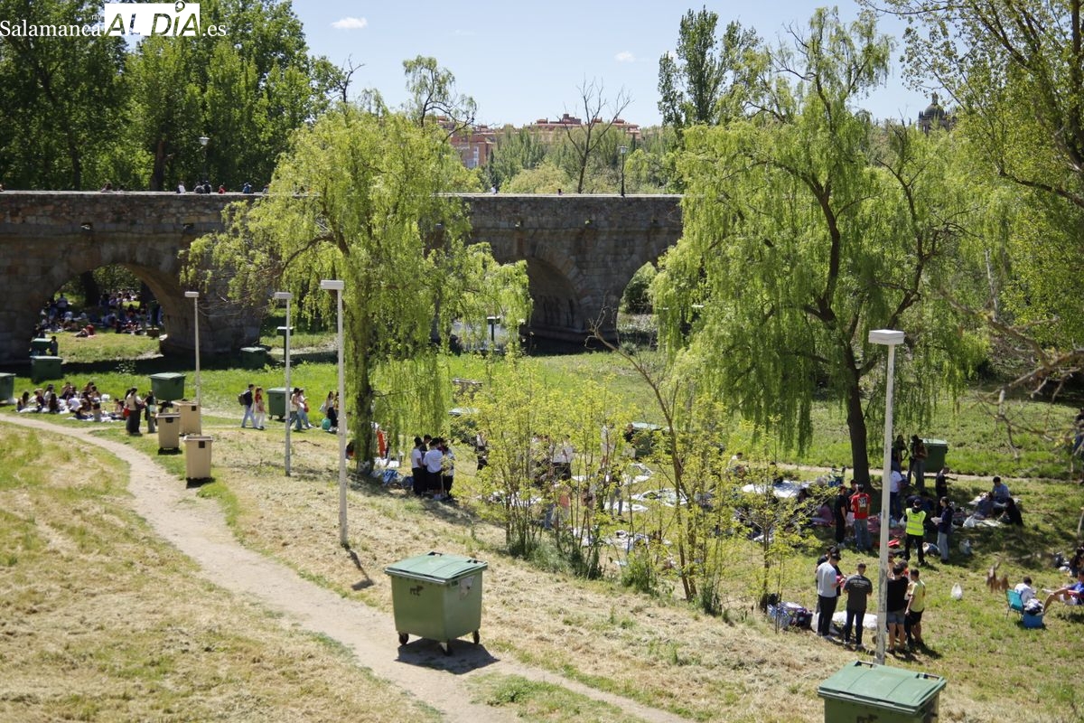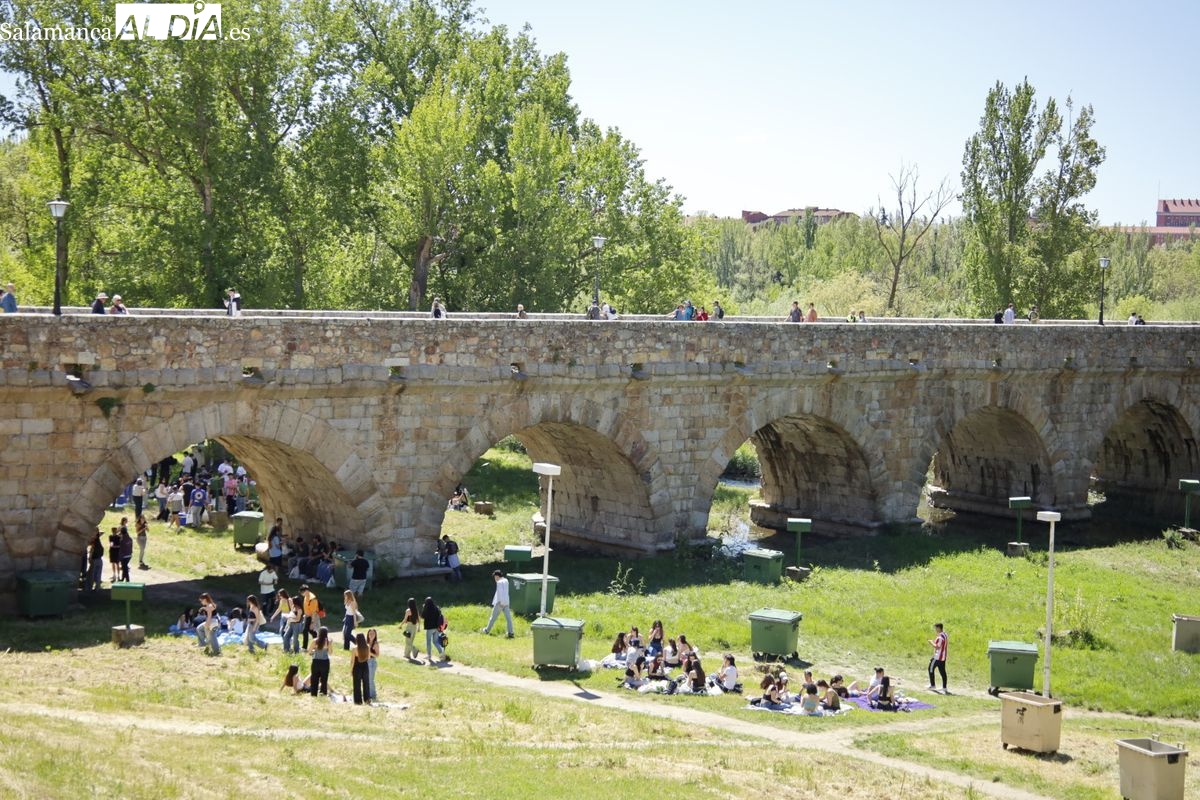 Pese al caos provocado por el apagón masivo del suministro eléctrico, ya a las 14:00 horas de la tarde las inmediaciones del Puente Romano empezaban a congregar a grupos de jóvenes para celebrar el Lunes de Aguas