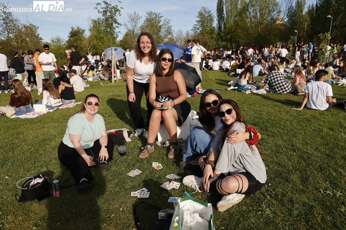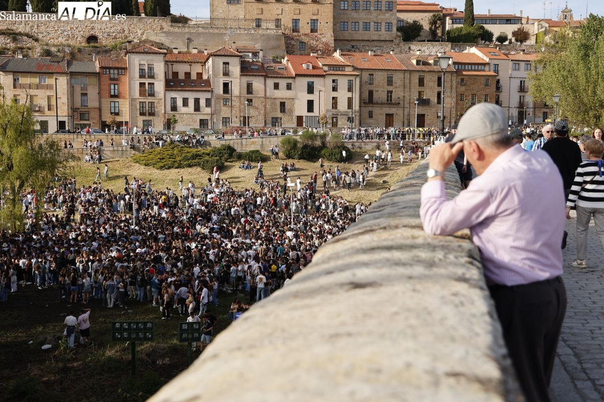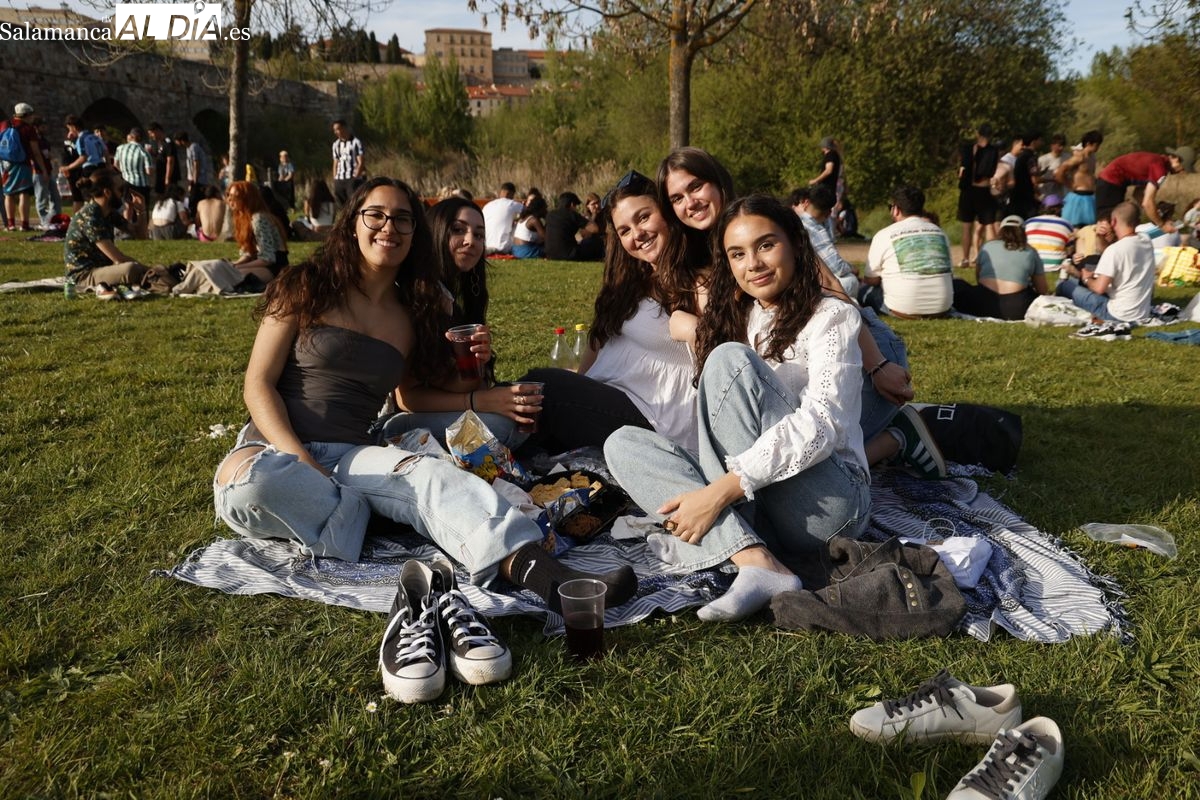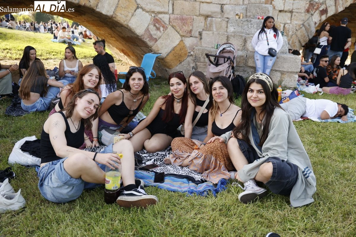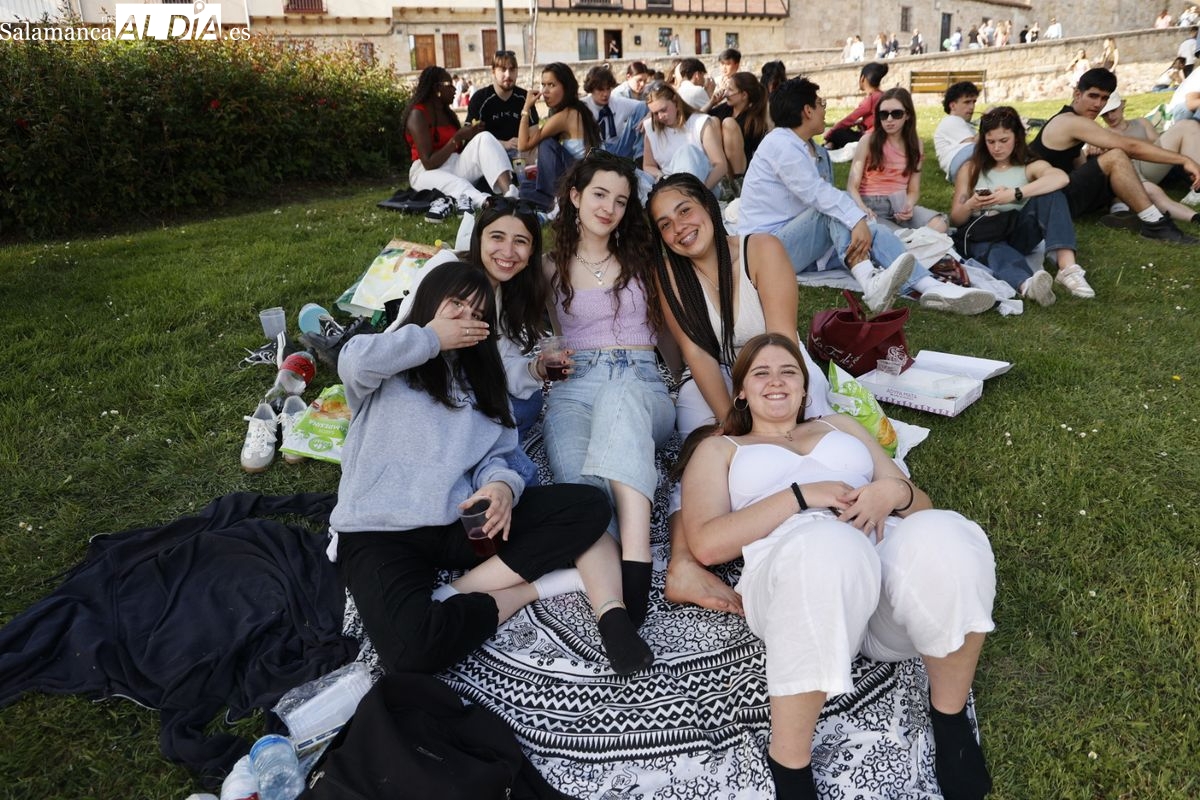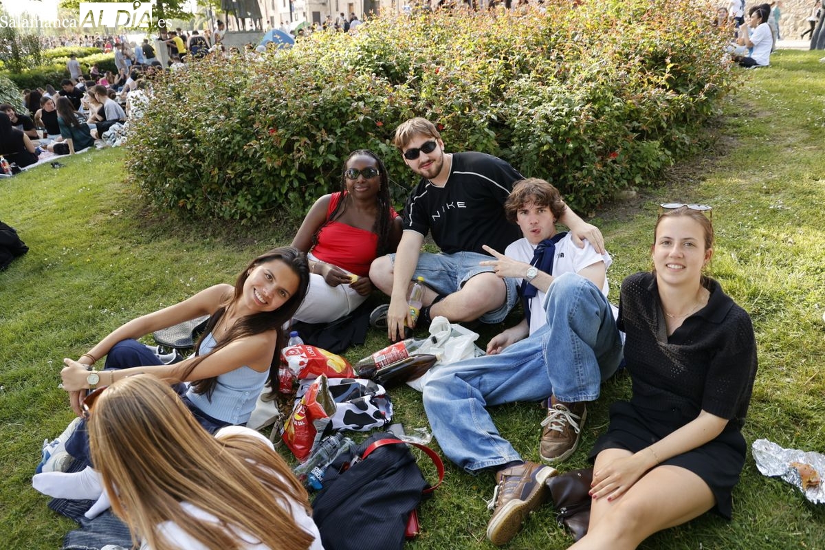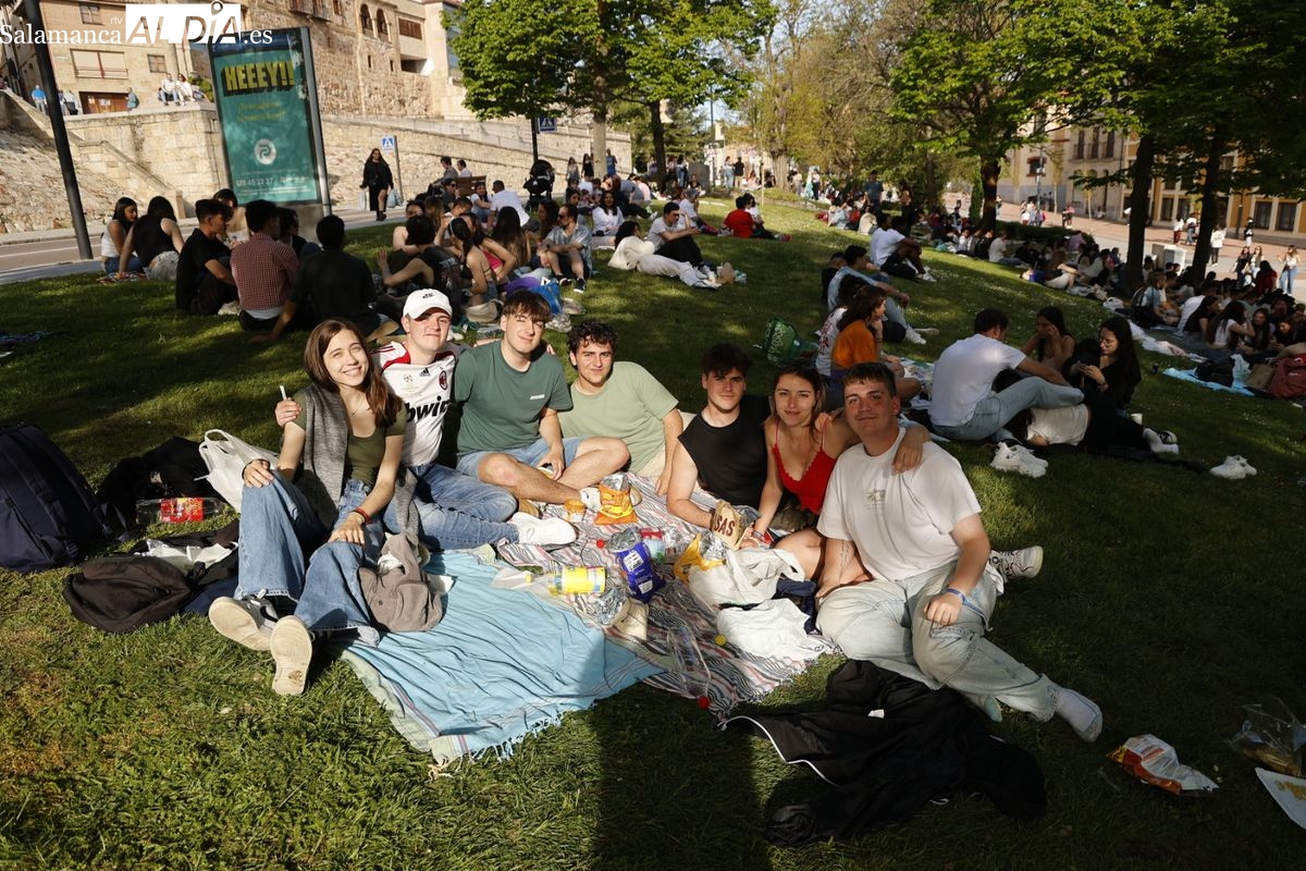 Los jóvenes, sobre todo universitarios, han vuelto a llenar el entorno del Puente Romano en este Lunes de Aguas, volviendo a ser, una vez más, la zona con más aglomeración de la capital y sus alrededores. Un gran botellón que les ha hecho olvidar una jornada atípica con el apagón masivo del suministro eléctrico y la imposibilidad de 'estar conectados' con sus amigos o en sus redes sociales durante varias horas.El parque Elio Antonio de Nebrija también ha registrado, como todas las zonas típicas de Salamanca, un buen ambiente.