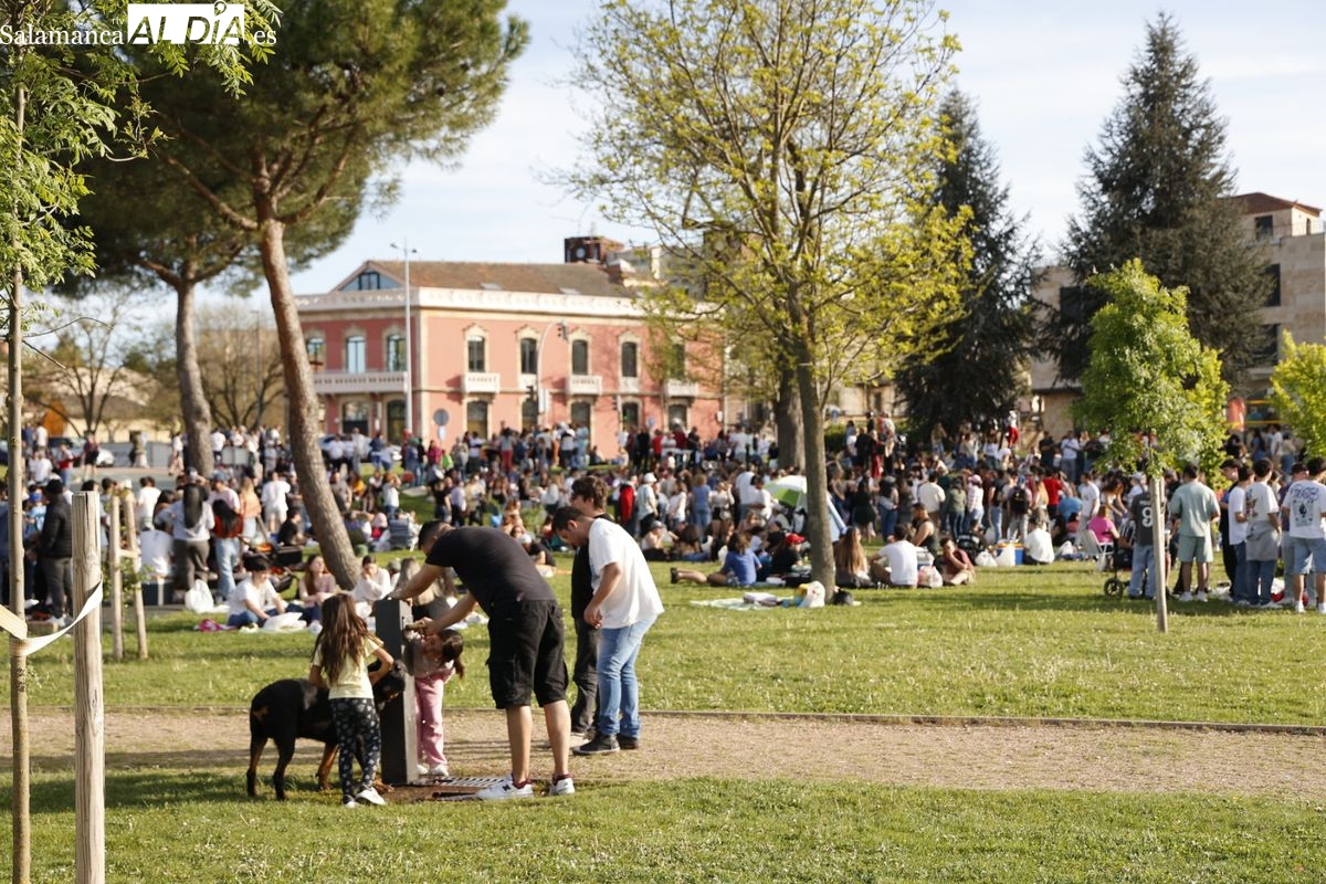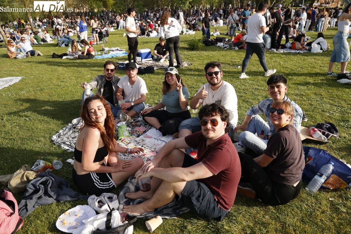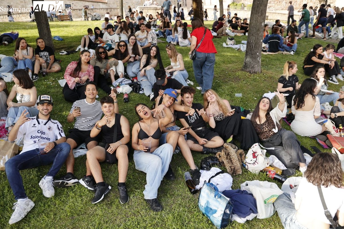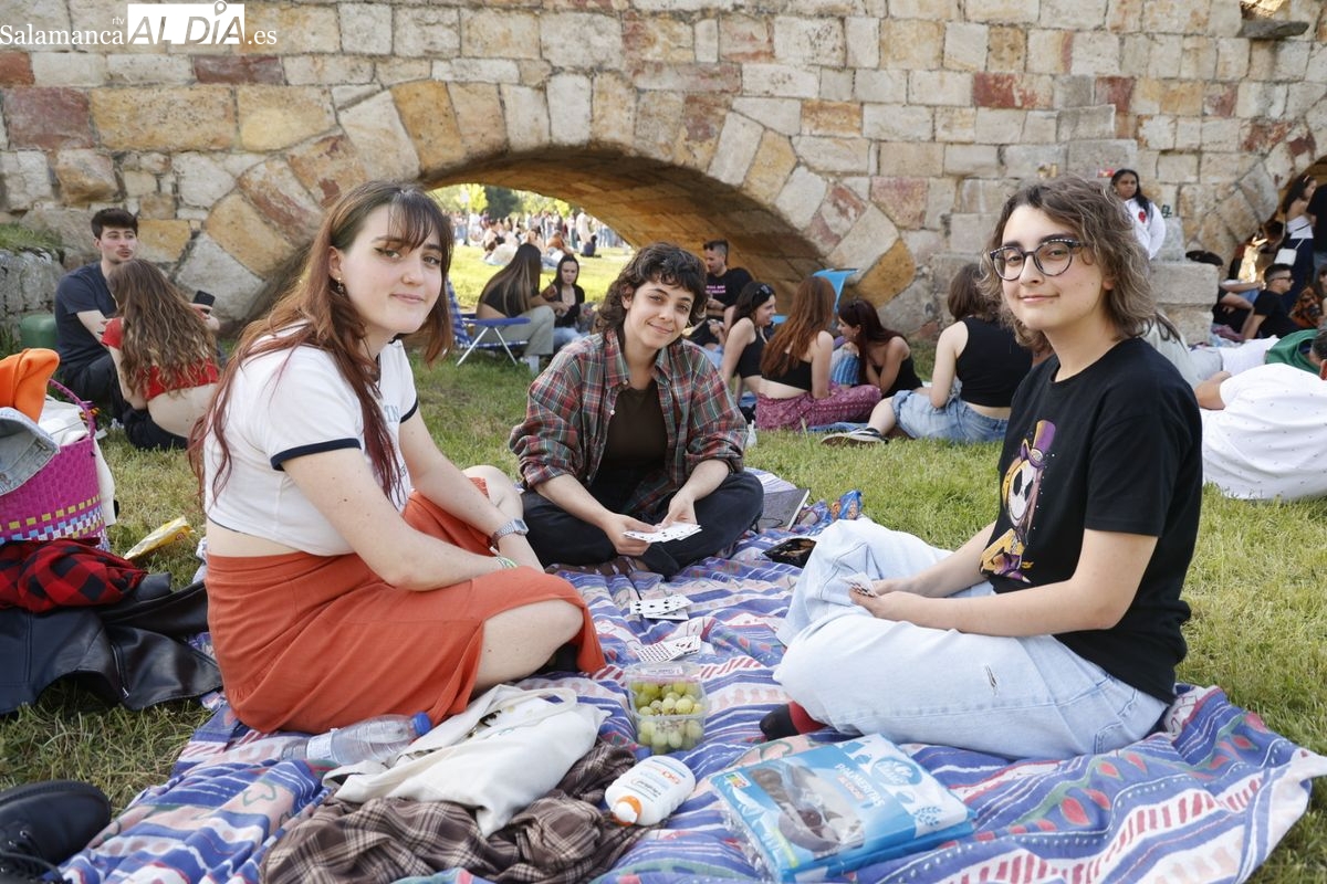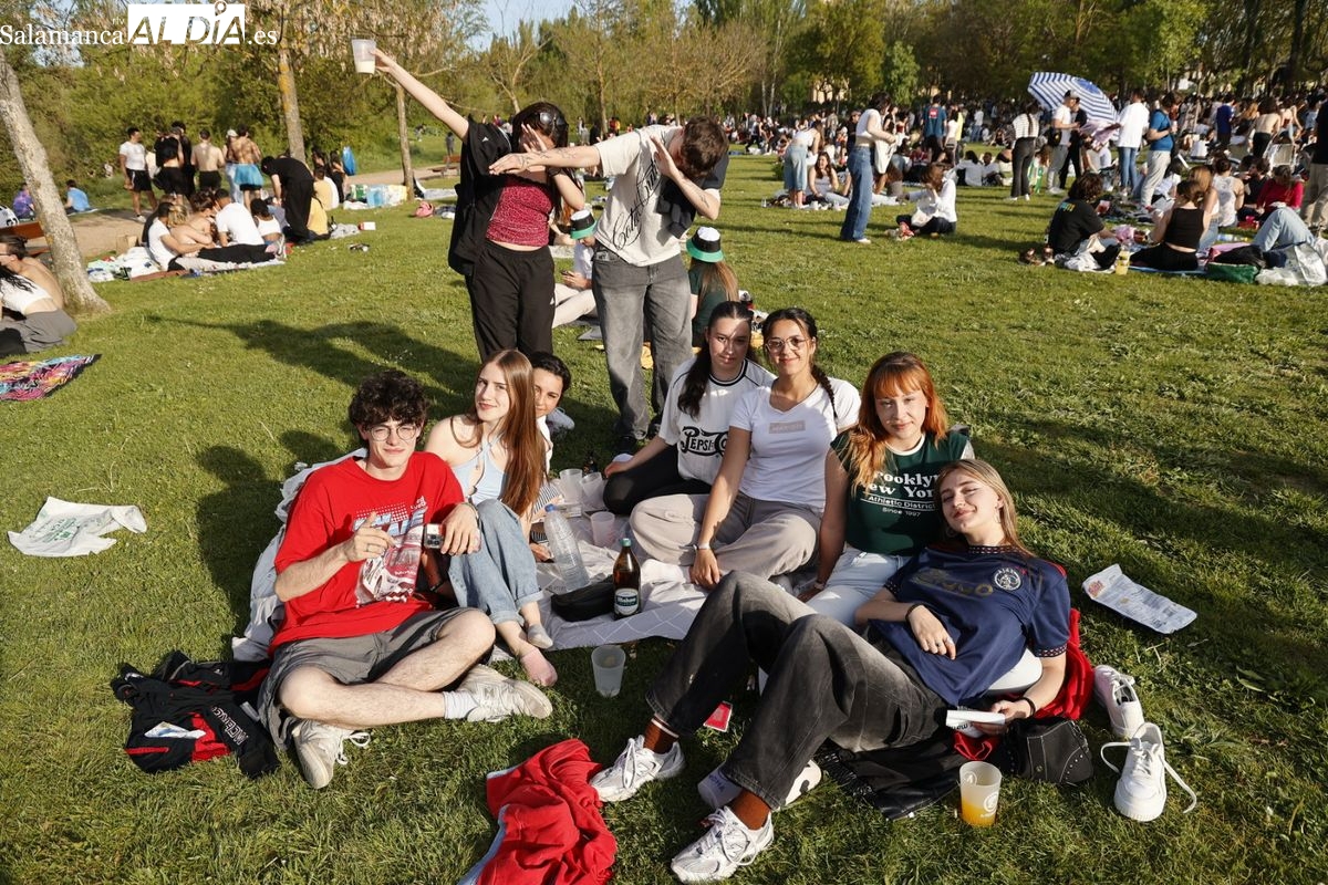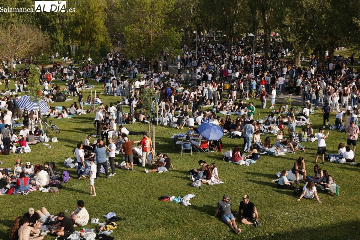 Los jóvenes, sobre todo universitarios, han vuelto a llenar el entorno del Puente Romano en este Lunes de Aguas, volviendo a ser, una vez más, la zona con más aglomeración de la capital y sus alrededores. Un gran botellón que les ha hecho olvidar una jornada atípica con el apagón masivo del suministro eléctrico y la imposibilidad de 'estar conectados' con sus amigos o en sus redes sociales durante varias horas.El parque Elio Antonio de Nebrija también ha registrado, como todas las zonas típicas de Salamanca, un buen ambiente.