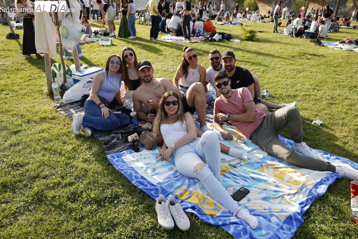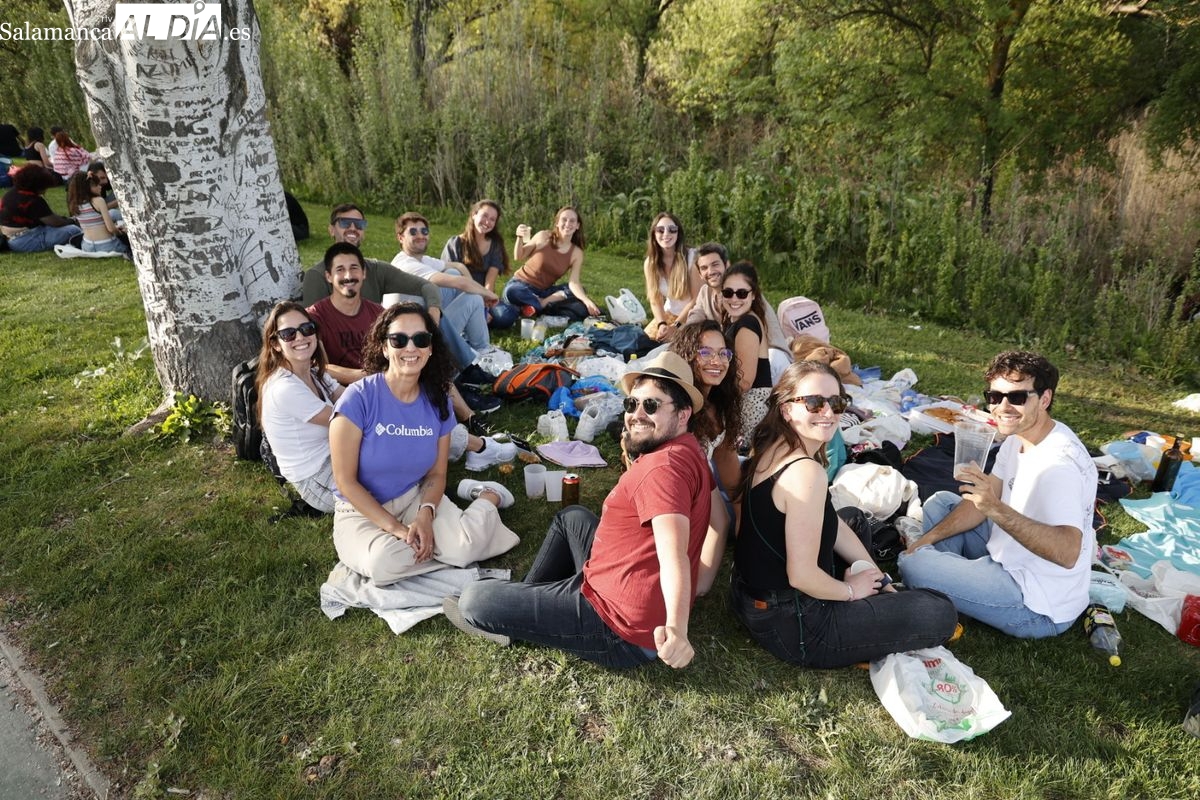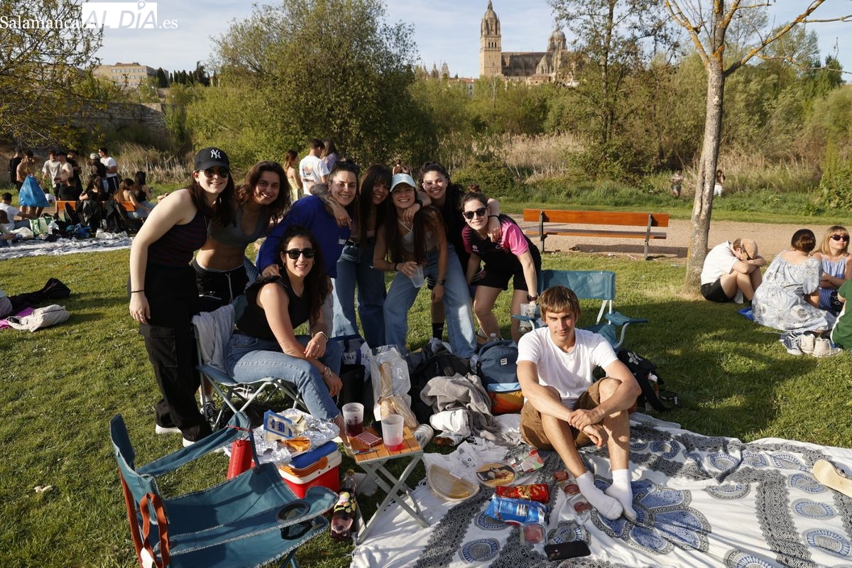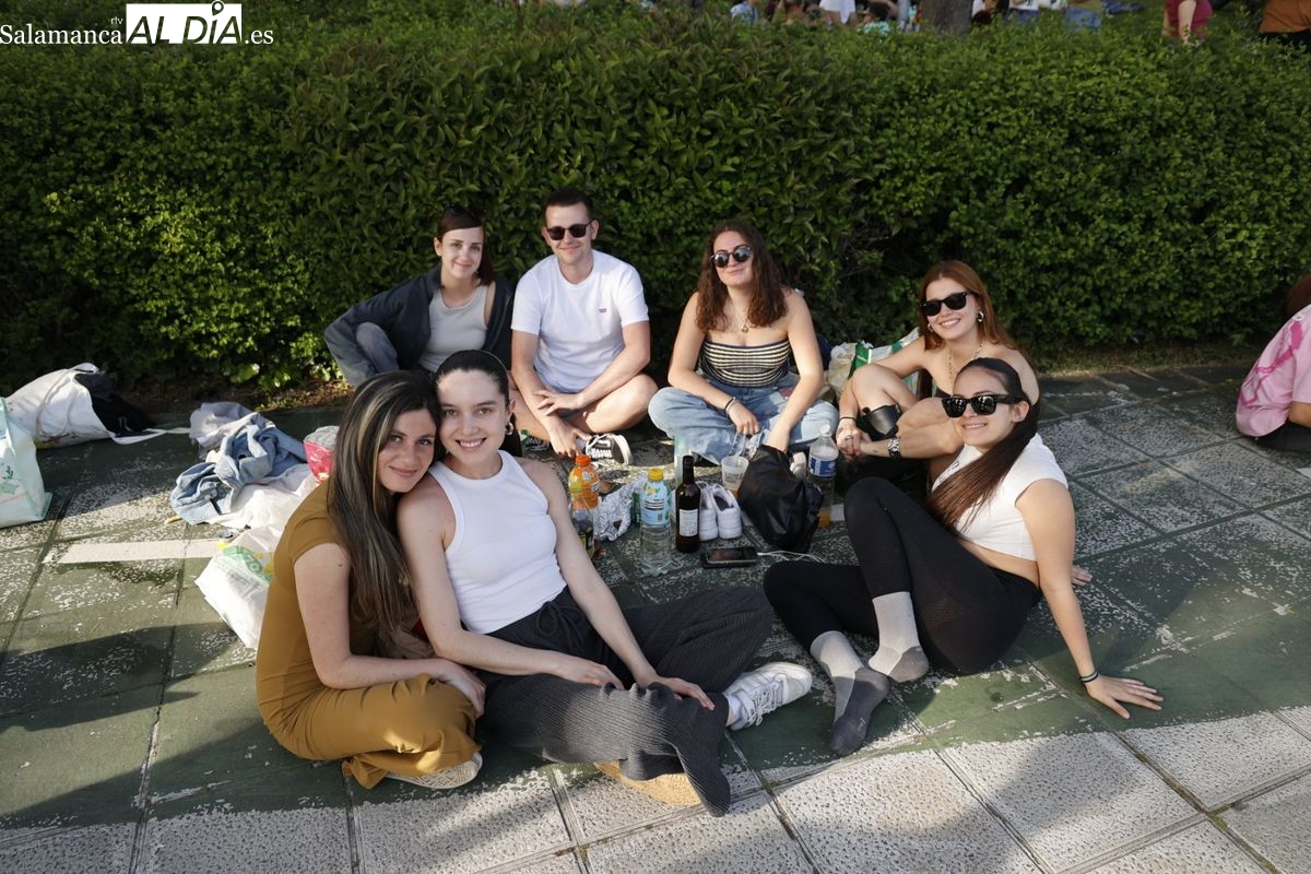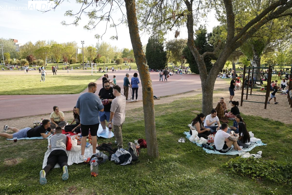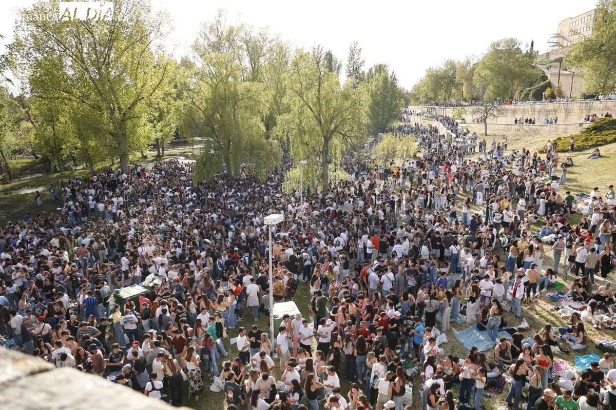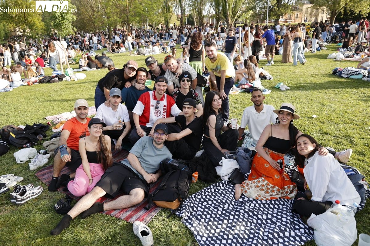 Los jóvenes, sobre todo universitarios, han vuelto a llenar el entorno del Puente Romano en este Lunes de Aguas, volviendo a ser, una vez más, la zona con más aglomeración de la capital y sus alrededores. Un gran botellón que les ha hecho olvidar una jornada atípica con el apagón masivo del suministro eléctrico y la imposibilidad de 'estar conectados' con sus amigos o en sus redes sociales durante varias horas.El parque Elio Antonio de Nebrija también ha registrado, como todas las zonas típicas de Salamanca, un buen ambiente.