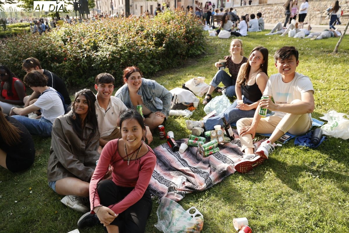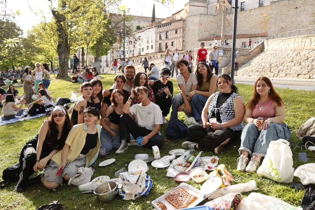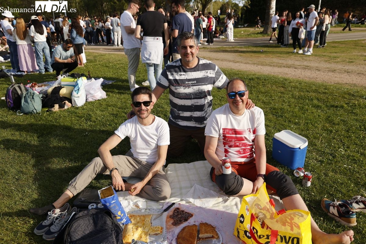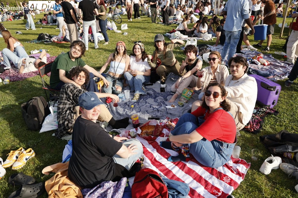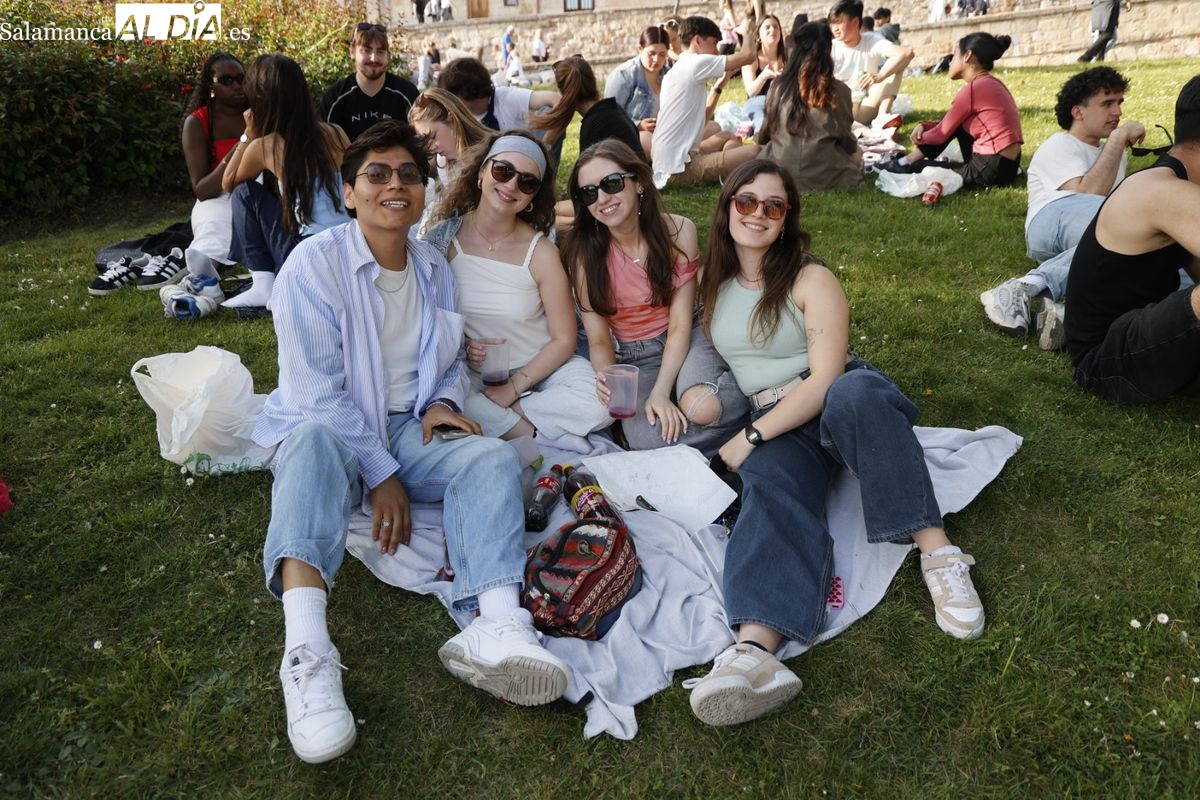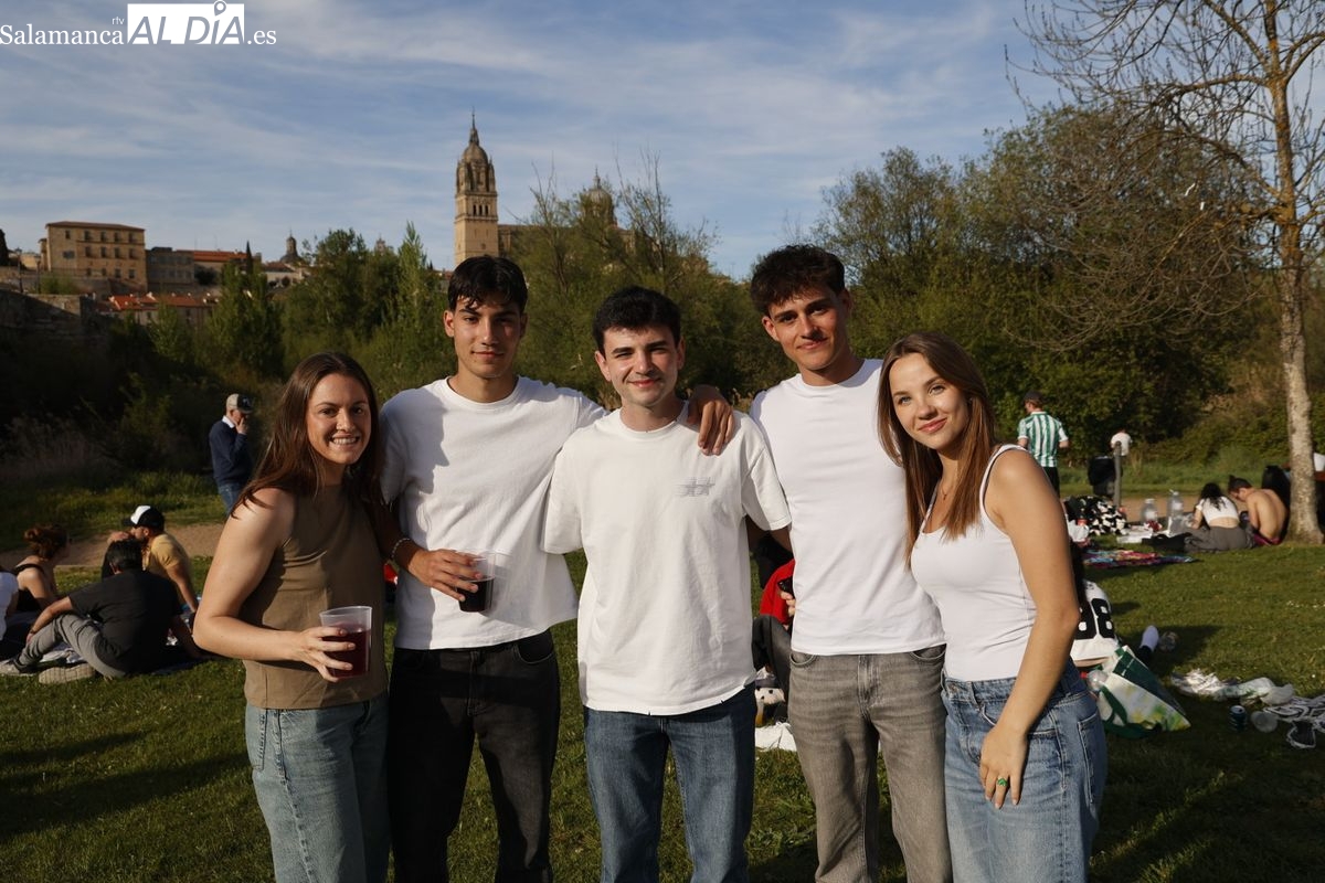 Los jóvenes, sobre todo universitarios, han vuelto a llenar el entorno del Puente Romano en este Lunes de Aguas, volviendo a ser, una vez más, la zona con más aglomeración de la capital y sus alrededores. Un gran botellón que les ha hecho olvidar una jornada atípica con el apagón masivo del suministro eléctrico y la imposibilidad de 'estar conectados' con sus amigos o en sus redes sociales durante varias horas.El parque Elio Antonio de Nebrija también ha registrado, como todas las zonas típicas de Salamanca, un buen ambiente.