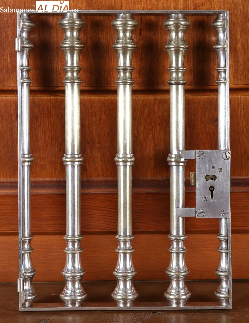 Por su parte, la reja del relicario del brazo se caracteriza por su sobriedad y funcionalidad. Realizada también en plata, cuenta con cinco barrotes torneados y un marco rectangular liso, con una cerradura metálica en el lateral derecho. Diseñada originalmente para el comulgatorio de las carmelitas descalzas del monasterio albense, su estética depurada prioriza la devoción sobre la ornamentación. A pesar de su simplicidad, cumple con dignidad su propósito de custodiar el relicario del brazo, en un contraste que resalta la diversidad de enfoques artísticos al servicio de la fe.