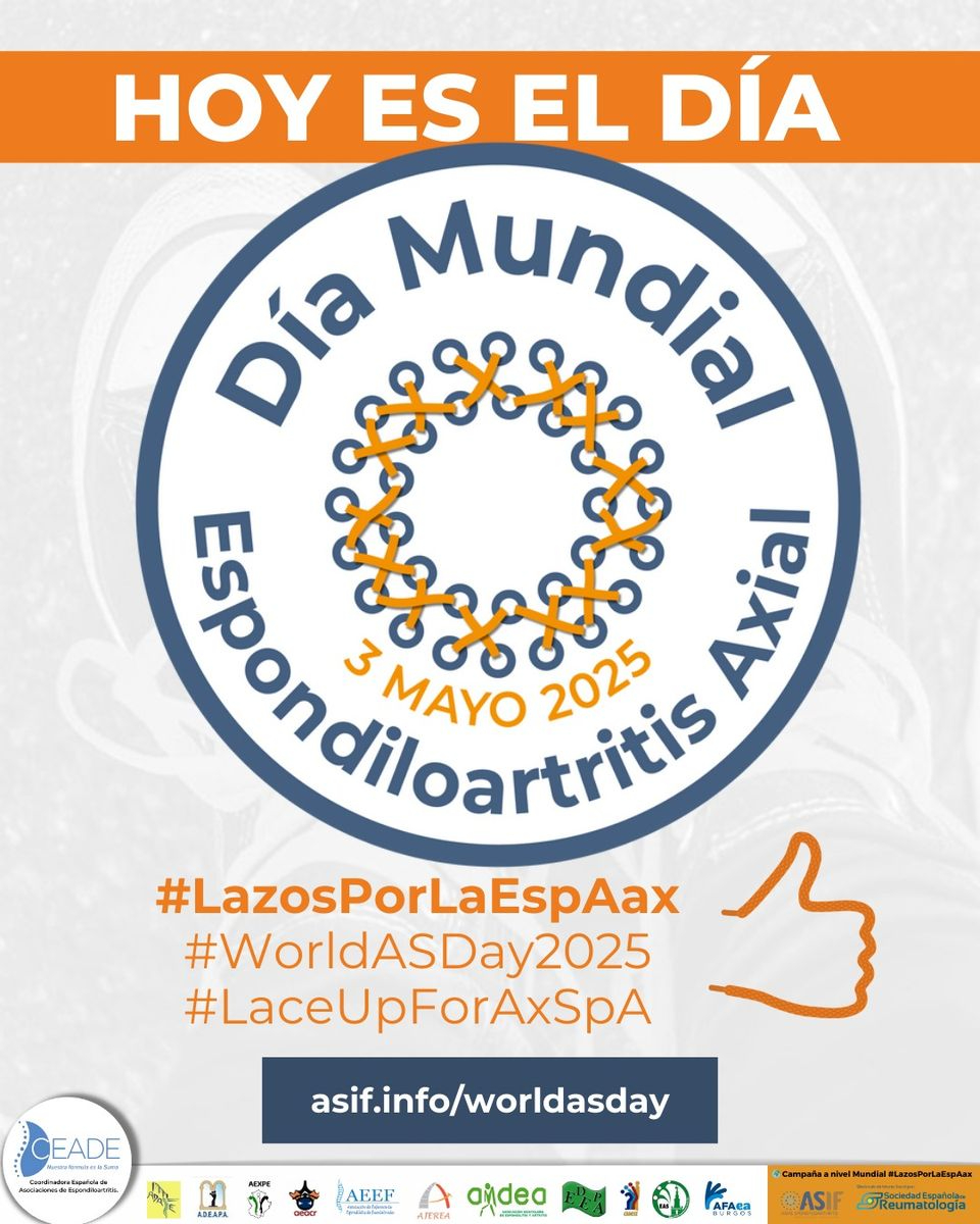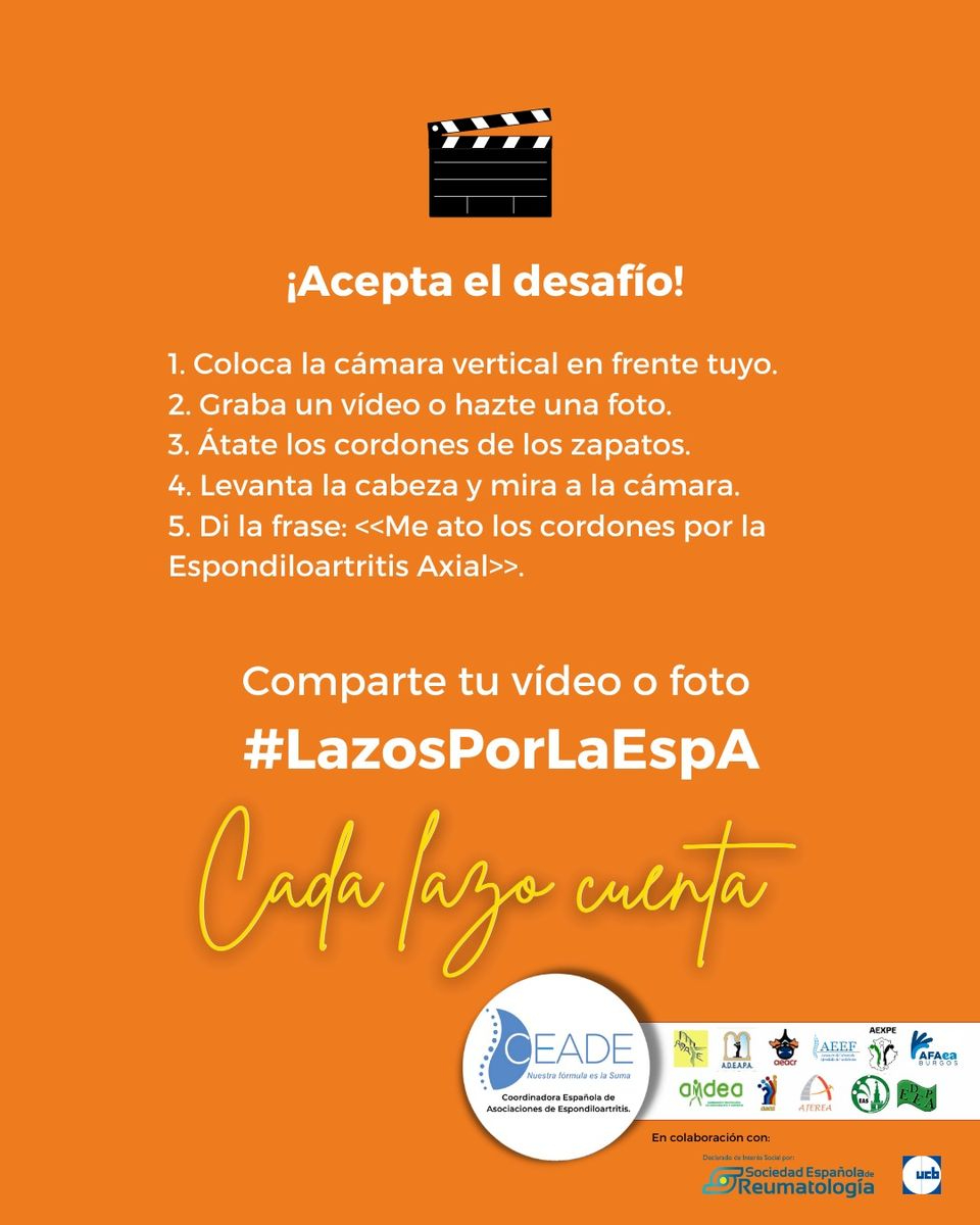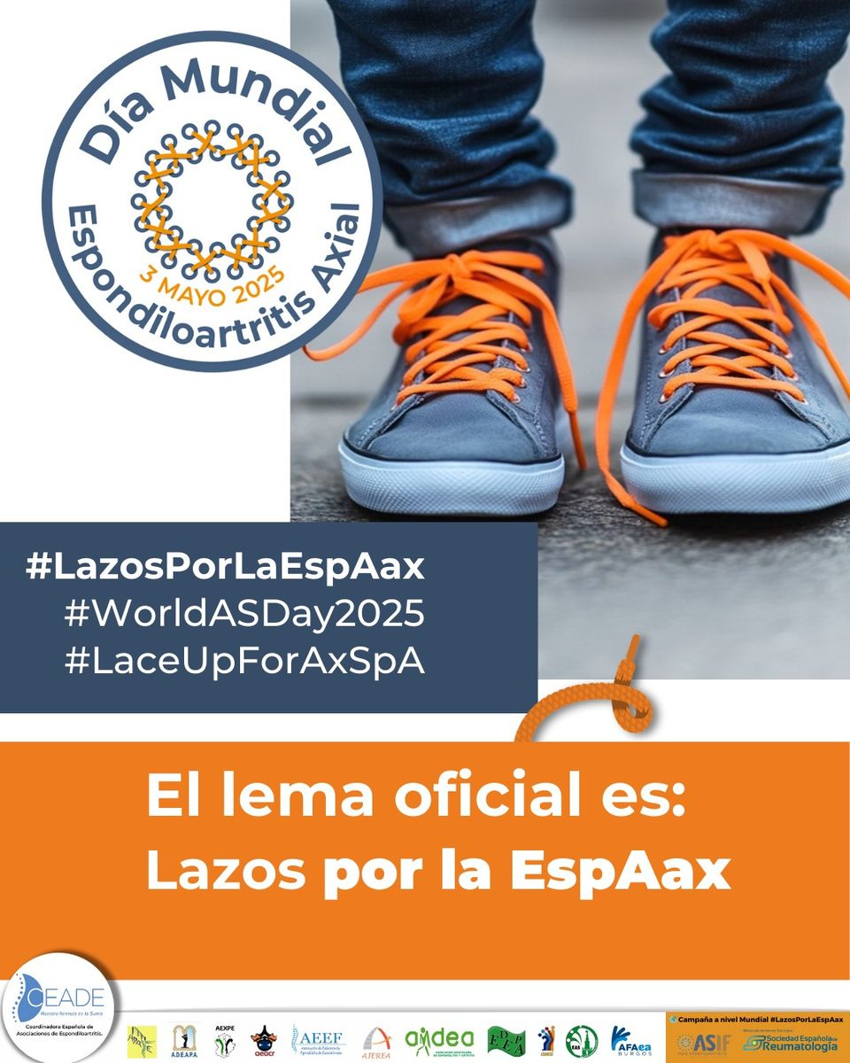 • Compartir fotos o vídeos atándose los cordones (preferiblemente de color naranja) utilizando los hashtags #LazosPorLaEspAax, #WorldASDay2025 y #LaceUpForAxSpA.