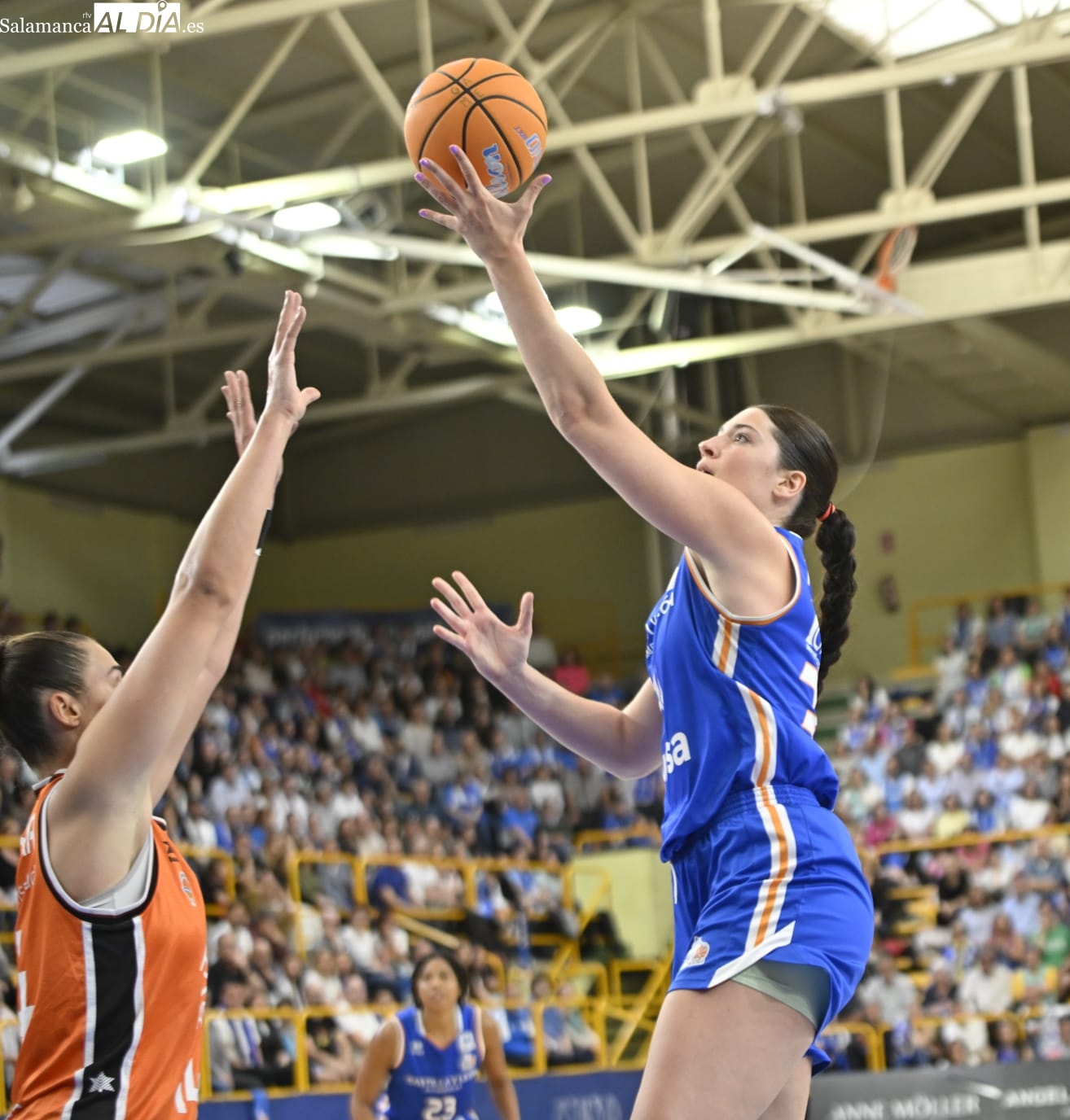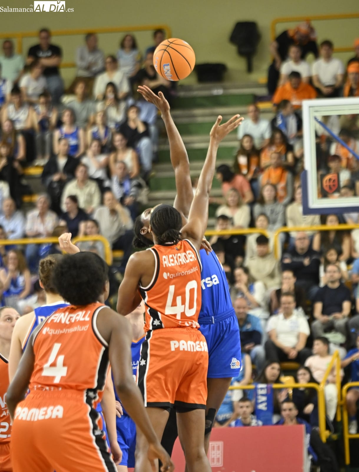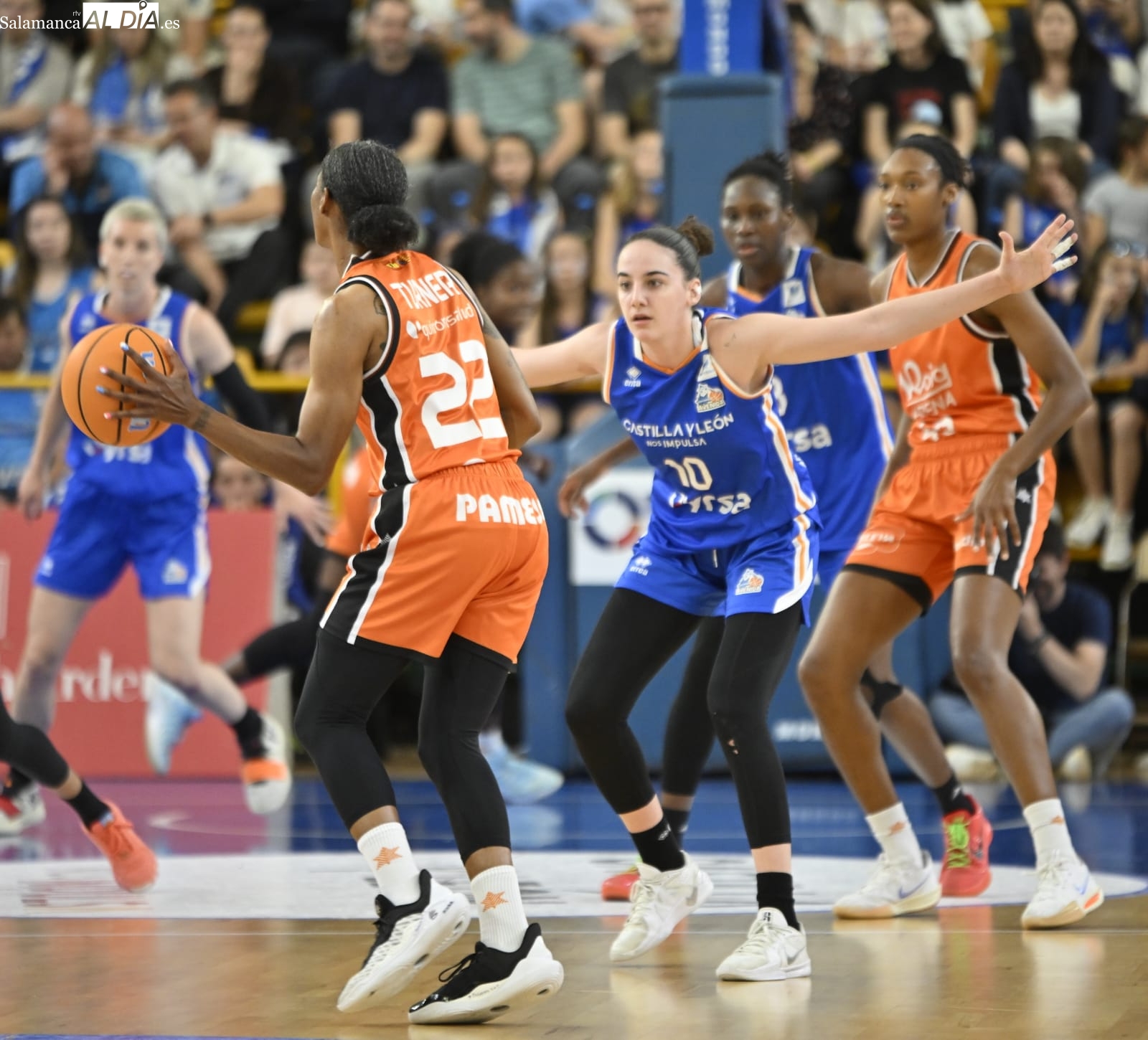 Con el paso por los vestuarios, Carter ha encestado un T3, Silvia ha hecho lo mismo e Iyana ha seguido sus pasos para firmar el 48-43 y forzar el tiempo muerto de Rubén Burgos. La cosa ha seguido igualada con las salmantinas por delante y el árbitro ha tenido unas palabras con Montañana por sus protestas por una jugada mal señalada. Por su parte, Iagupova, casi inédita, ha anotado desde el exterior y Carter le ha replicado del mismo modo al otro lado de la cancha. Además, Vilaró -ha cumplido 300 encuentros en el club- ha tirado de buena mano para el 64-55 y las azulonas han cogido una renta importantísima de cara a los últimos minutos frente a un Valencia Basket al que no le han señalado ni una sola falta en todo el 3ºC.