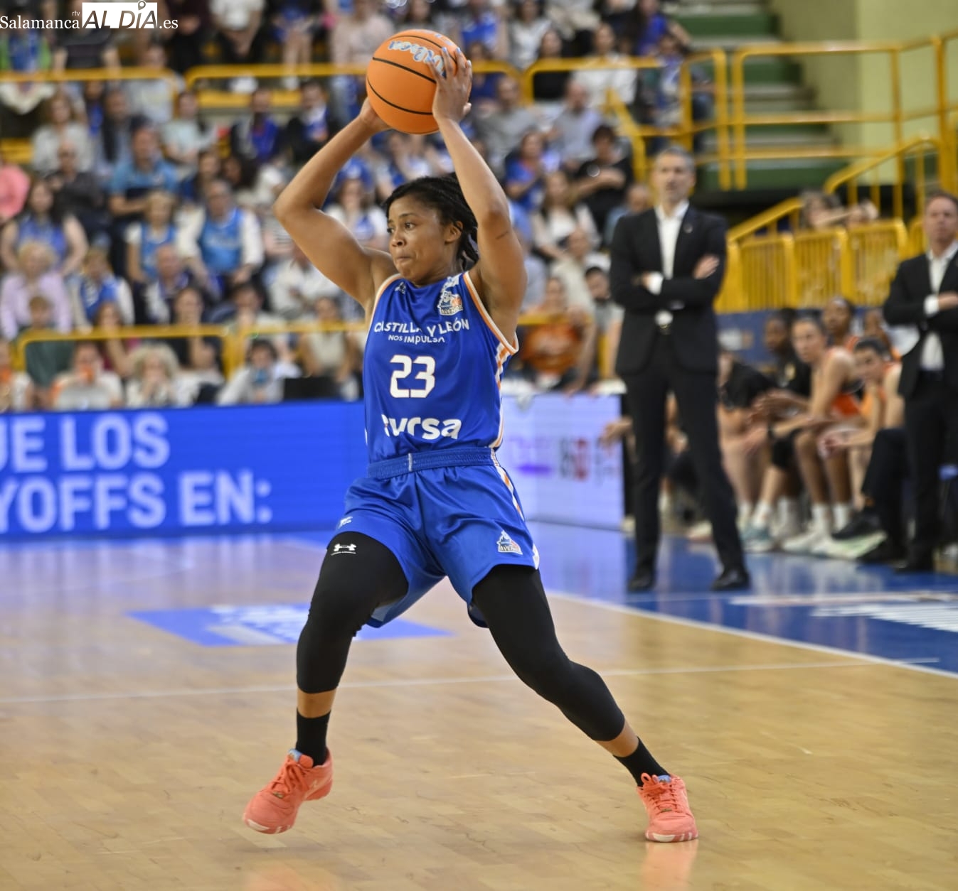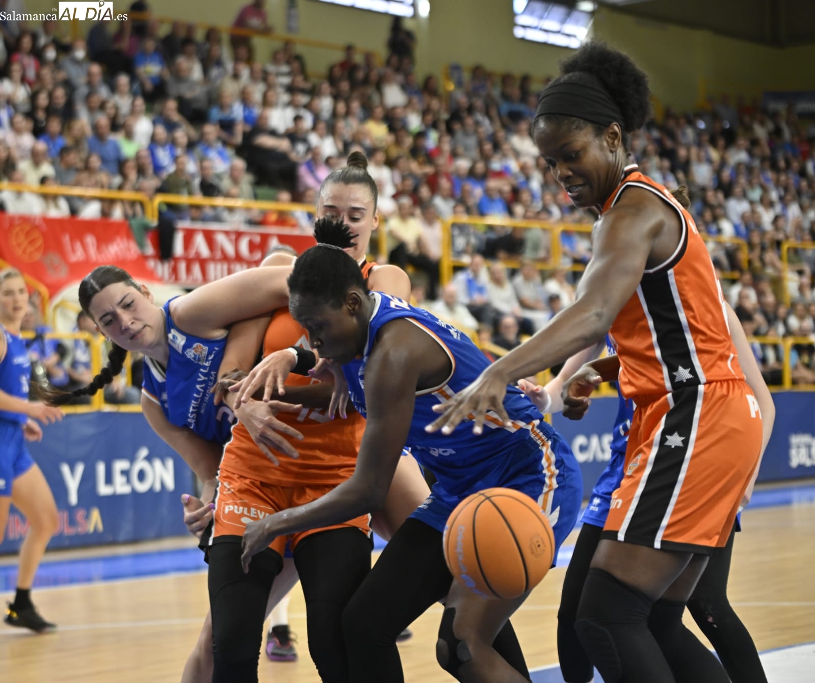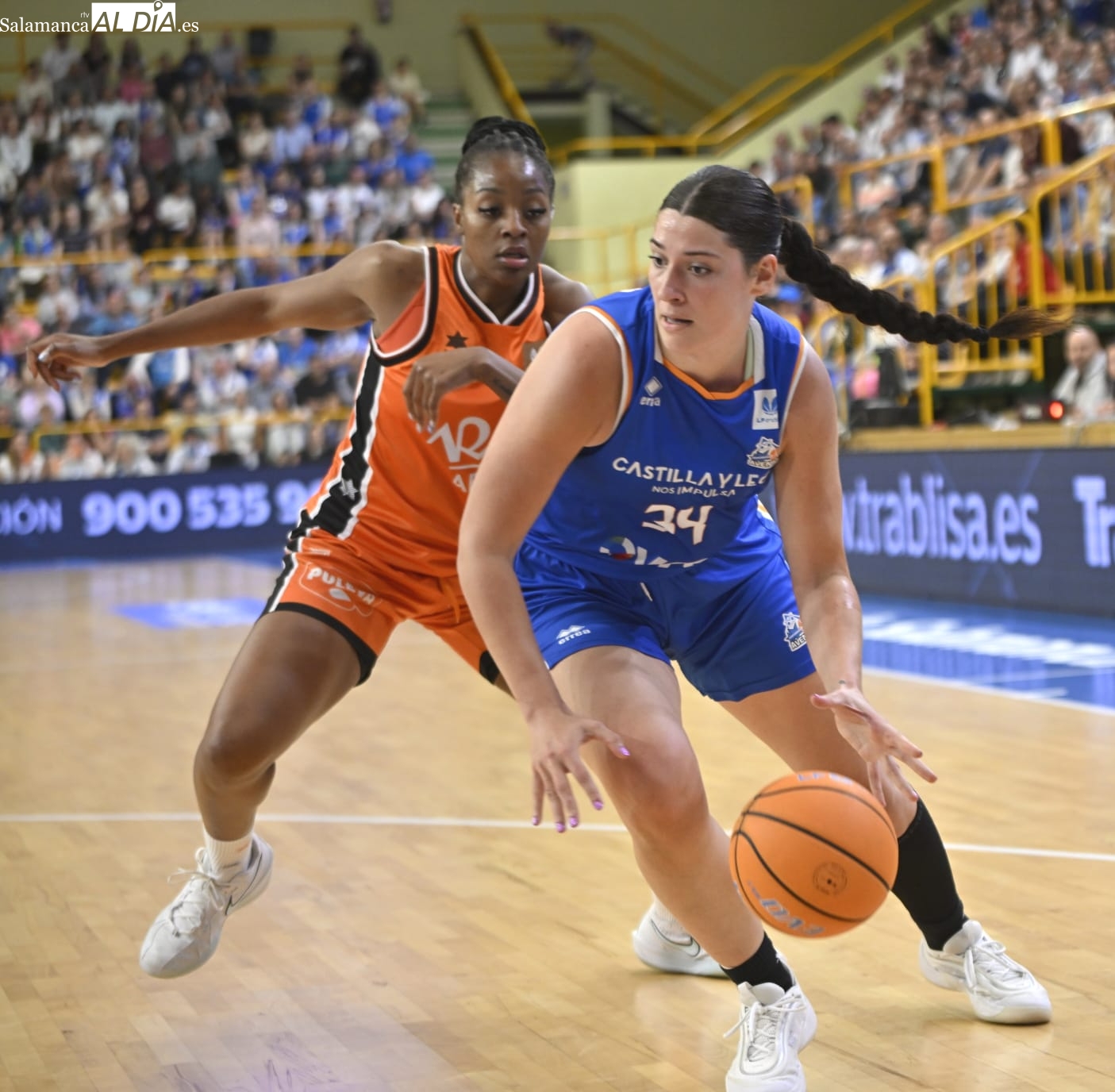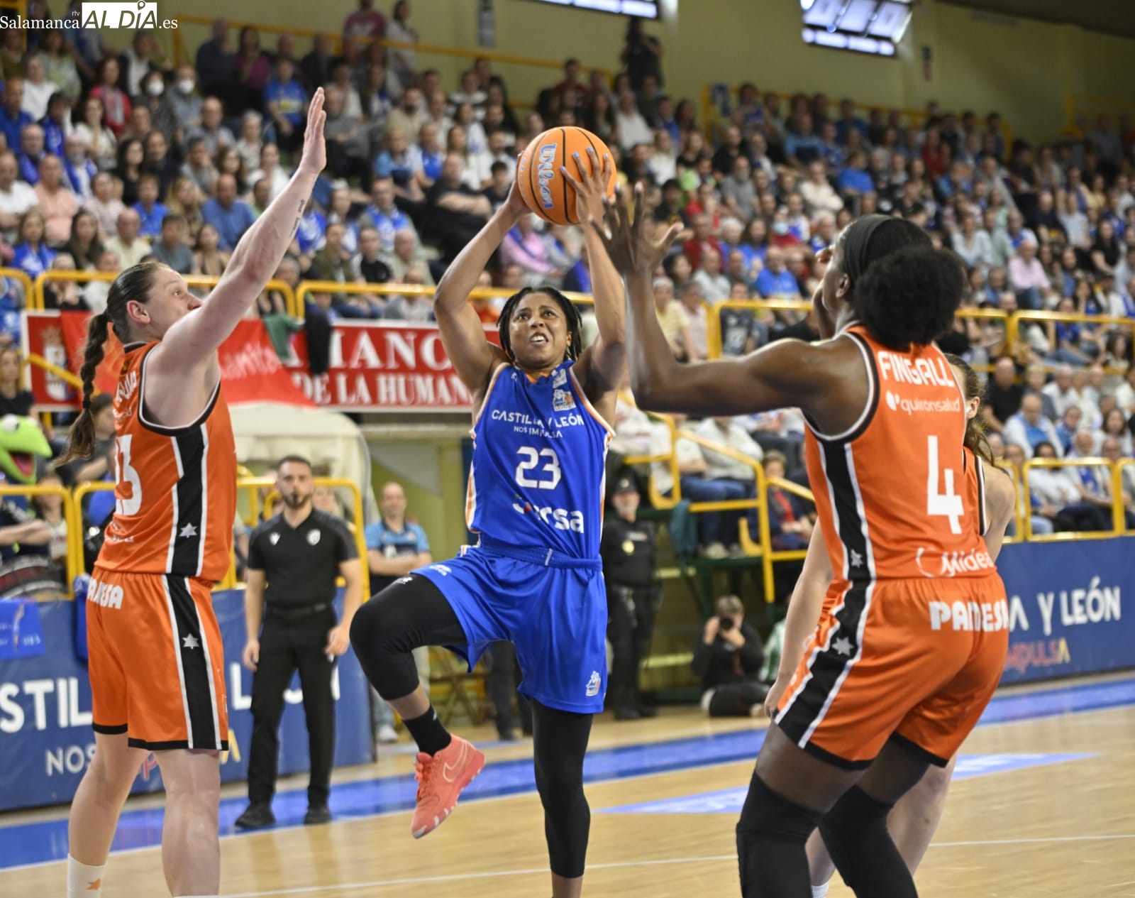Con el paso por los vestuarios, Carter ha encestado un T3, Silvia ha hecho lo mismo e Iyana ha seguido sus pasos para firmar el 48-43 y forzar el tiempo muerto de Rubén Burgos. La cosa ha seguido igualada con las salmantinas por delante y el árbitro ha tenido unas palabras con Montañana por sus protestas por una jugada mal señalada. Por su parte, Iagupova, casi inédita, ha anotado desde el exterior y Carter le ha replicado del mismo modo al otro lado de la cancha. Además, Vilaró -ha cumplido 300 encuentros en el club- ha tirado de buena mano para el 64-55 y las azulonas han cogido una renta importantísima de cara a los últimos minutos frente a un Valencia Basket al que no le han señalado ni una sola falta en todo el 3ºC.