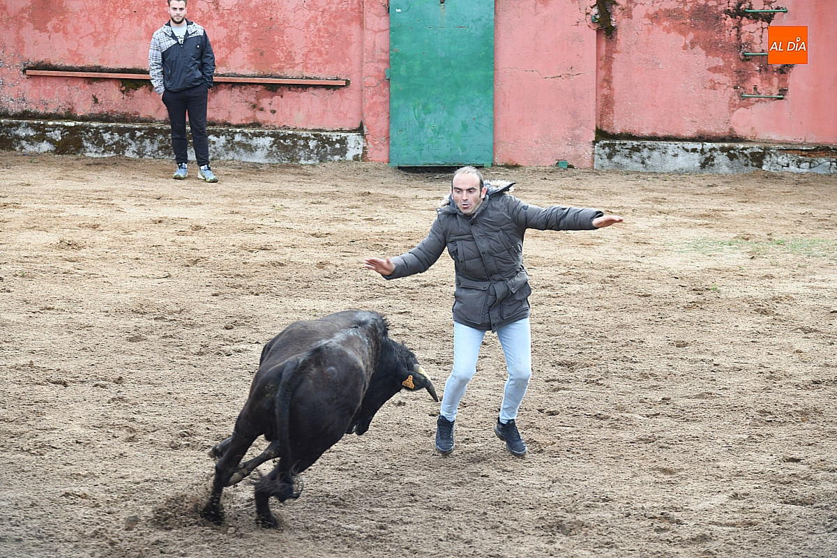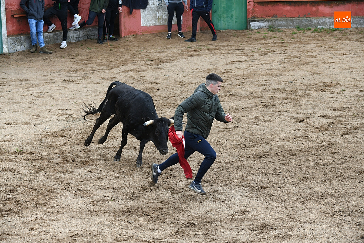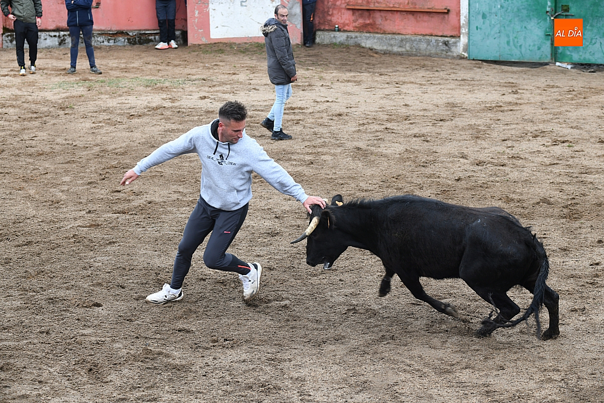 Mientras tanto, la charanga mirobrigense ‘SantAna’ animaba al frío público y a los mozos valientes que se enfrentaban a las reses, alguno de los cuales sufrió algún revolcón sin más consecuencia que mancharse la ropa de barro.