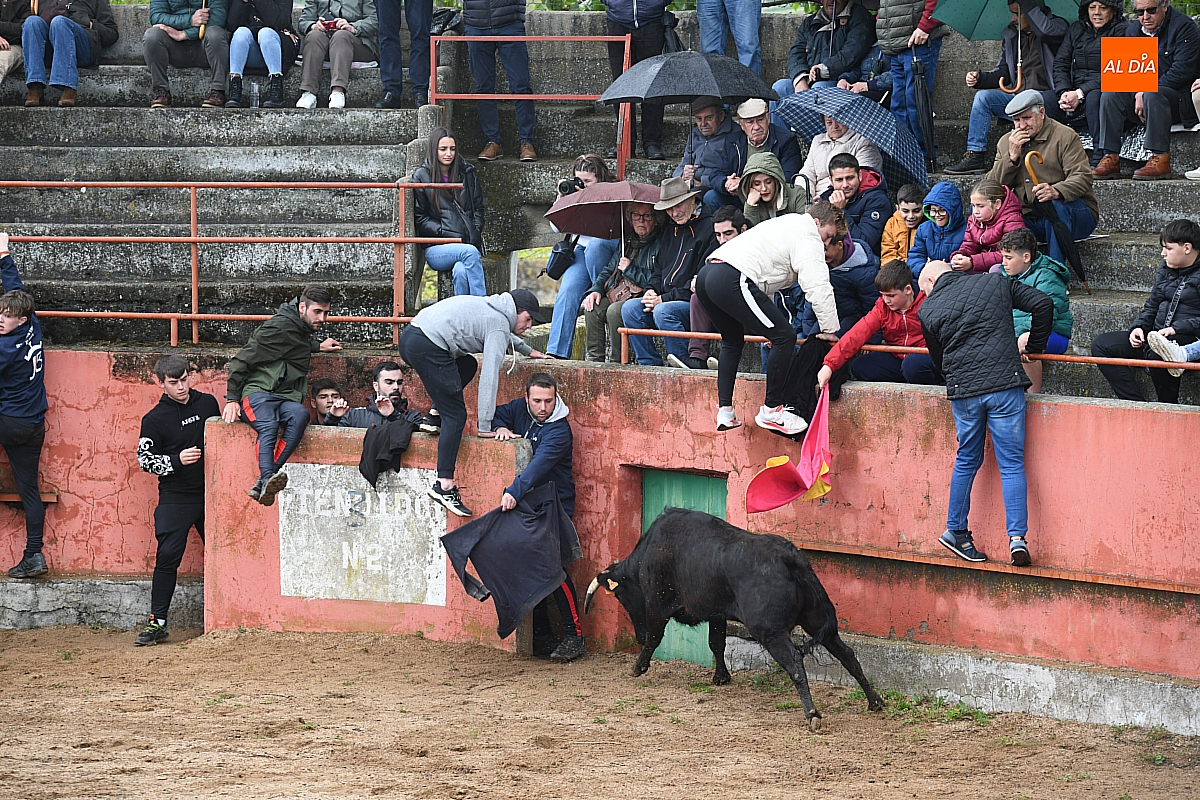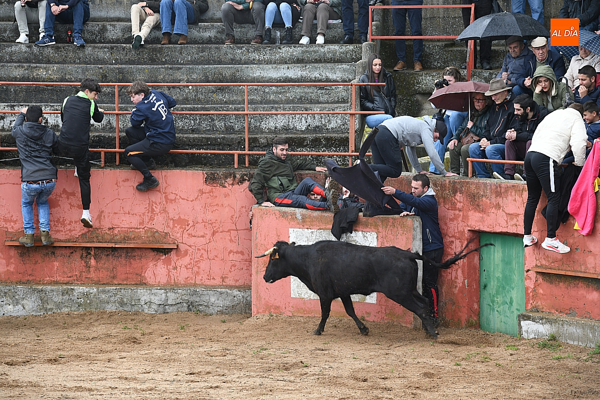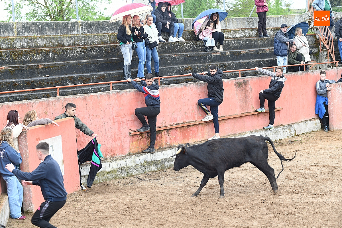 El Bodón cerró su cremallera festiva el domingo por la tarde con una capea popular, en una jornada que comenzó bajo una meteorología amenazante. La lluvia, aunque tenue, desanimaba inicialmente a los bodoneses a acudir a la Plaza de Tientas.