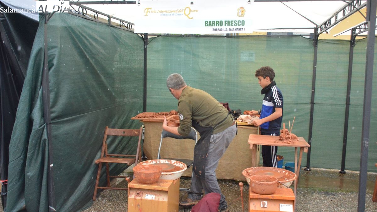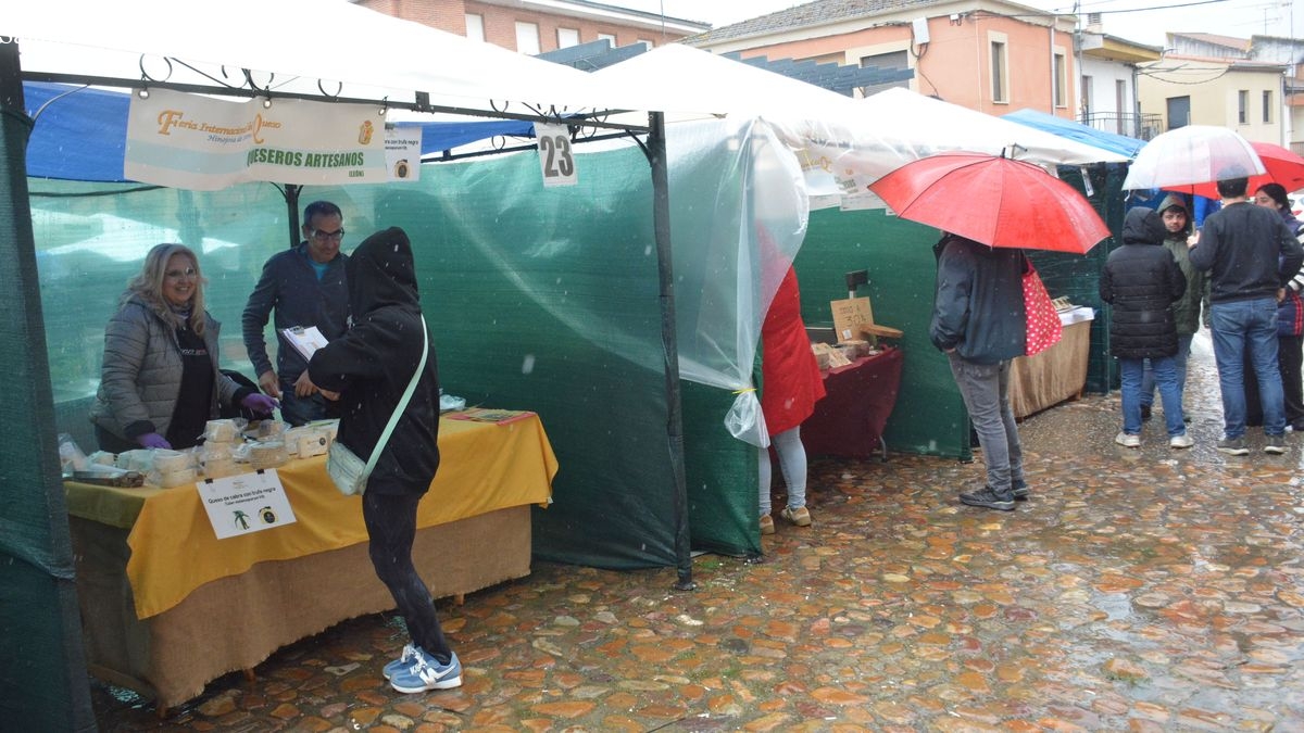 Hinojosa de Duero ha celebrado este fin de semana la XXII Feria Internacional del Queso con balance positivo en la venta productos agroalimentarios de calidad, y también de visitantes, a pesar del mal tiempo climatológico. La lluvia caída la mañana del domingo influyó en una menor afluencia de público que el registrado el sábado, jornada que estuvo muy animada tanto en el recinto ferial como en los establecimientos de hostelería del pueblo. "La feria ha estado muy bien, con mucha gente, y con muchas ventas, según me han comentado varios artesanos" afirma el alcalde de Hinojosa, Jesús Pata. "La lluvia nos ha hecho cambiar el escenario de algunas actividades, como el concierto de Mayalde y la actuación del grupo de sevillanas a un espacio cerrado, pero todo ha ido bien, con mucho público" añade el alcalde.