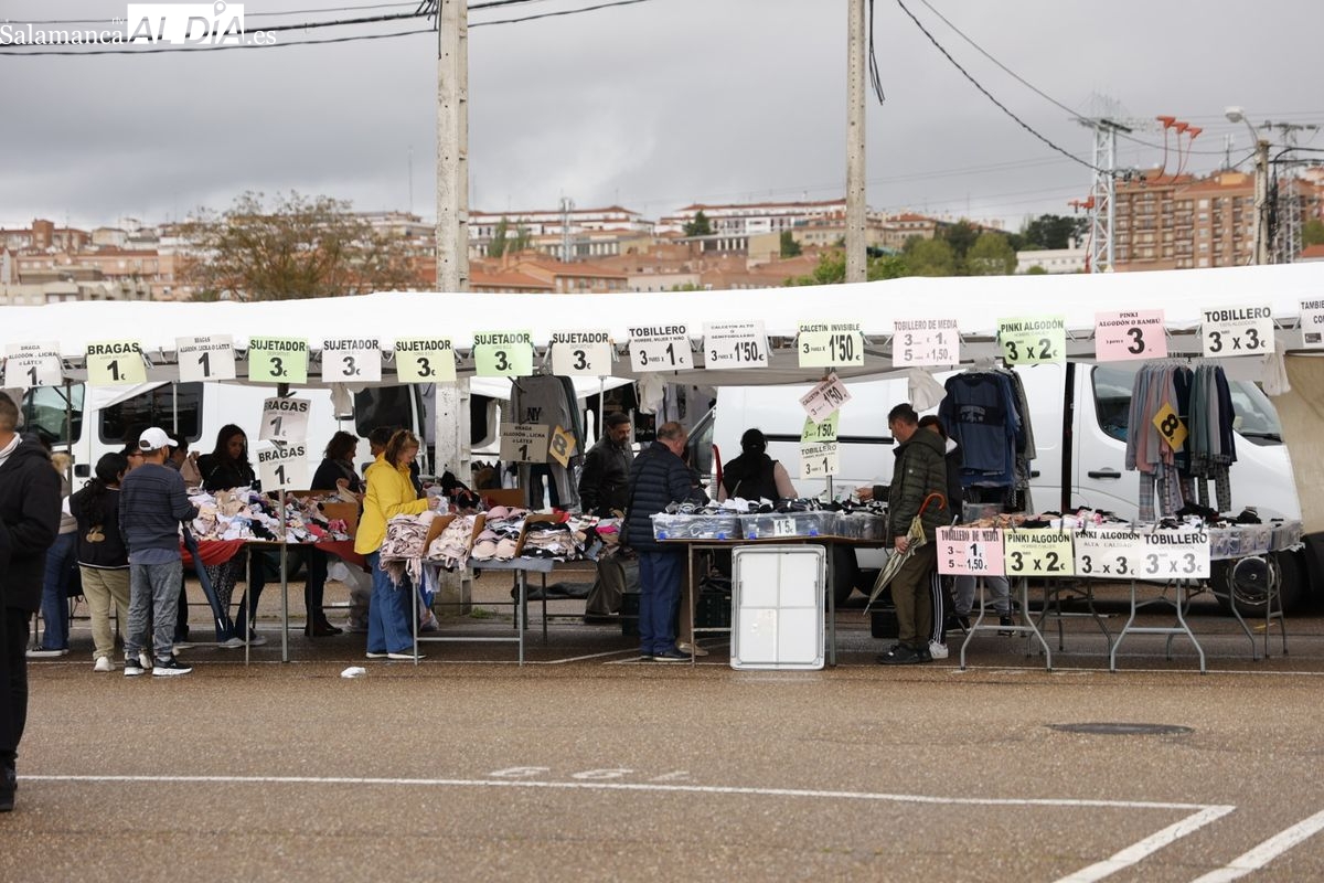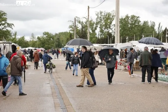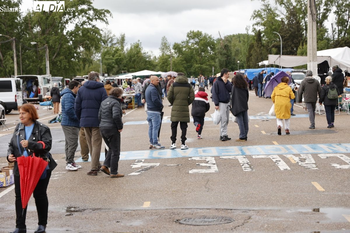 La lluvia, aunque no muy intensa ni constante, y una temperatura que no acompañaba ha deslucido el tradicional Rastro de la capital charra, que cada mañana dominical congrega a numerosas personas en busca de algún producto o simplemente para ver y disfrutar del ambiente.