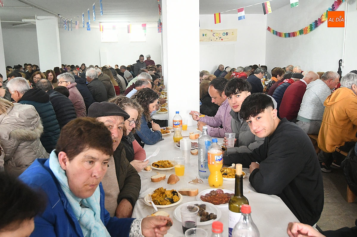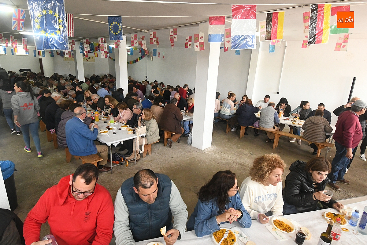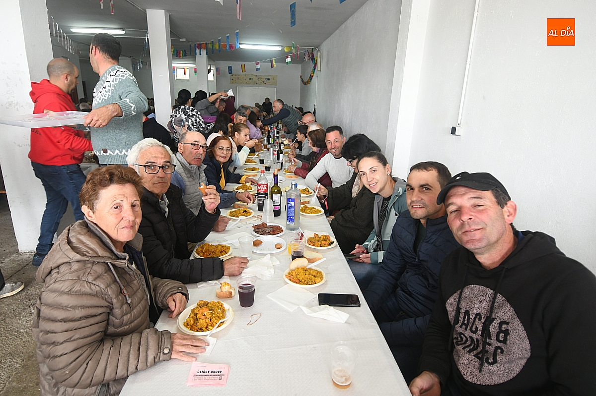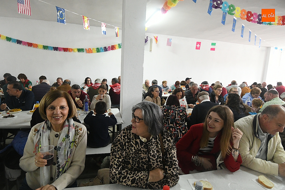 El evento tuvo lugar en los bajos del Ayuntamiento, espacio que resultó ser el lugar idóneo para acoger a los cerca de 300 asistentes. Allí, vecinos e invitados pudieron disfrutar de la comida en un ambiente de convivencia, resguardados de las inclemencias meteorológicas que marcaron todo el fin de semana y amenazaron con empañar los actos al aire libre.