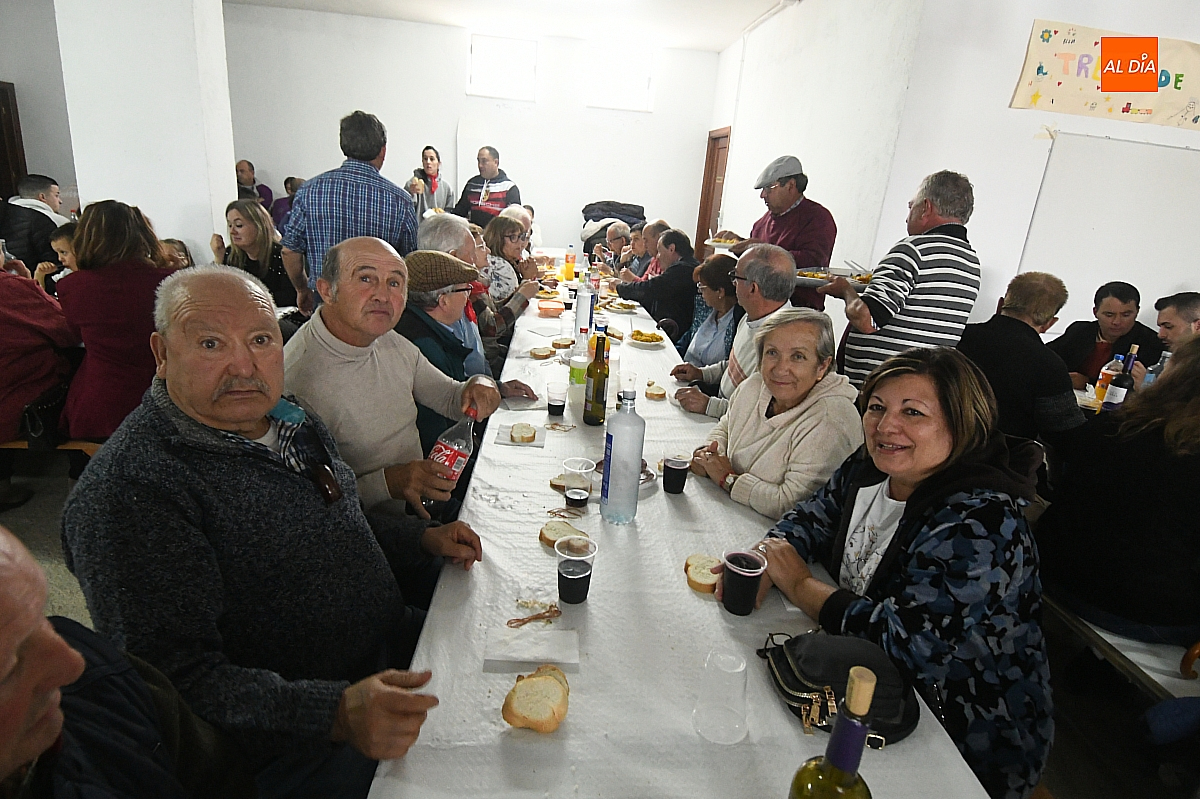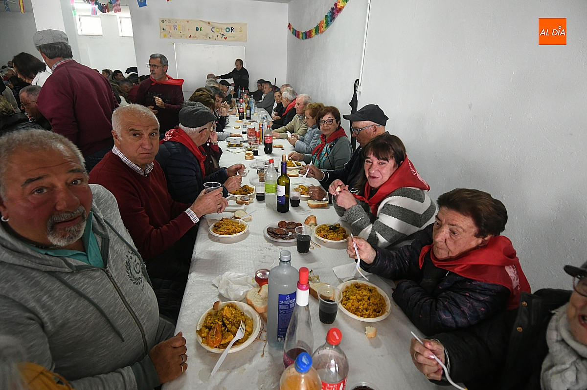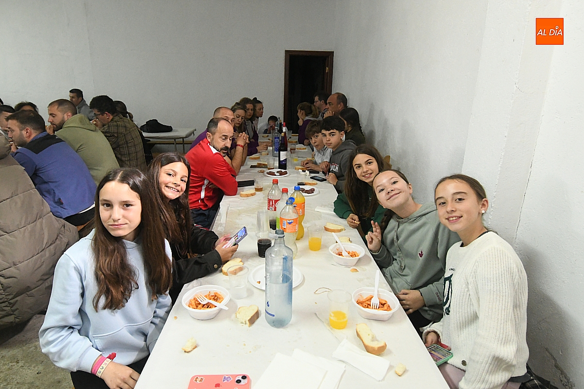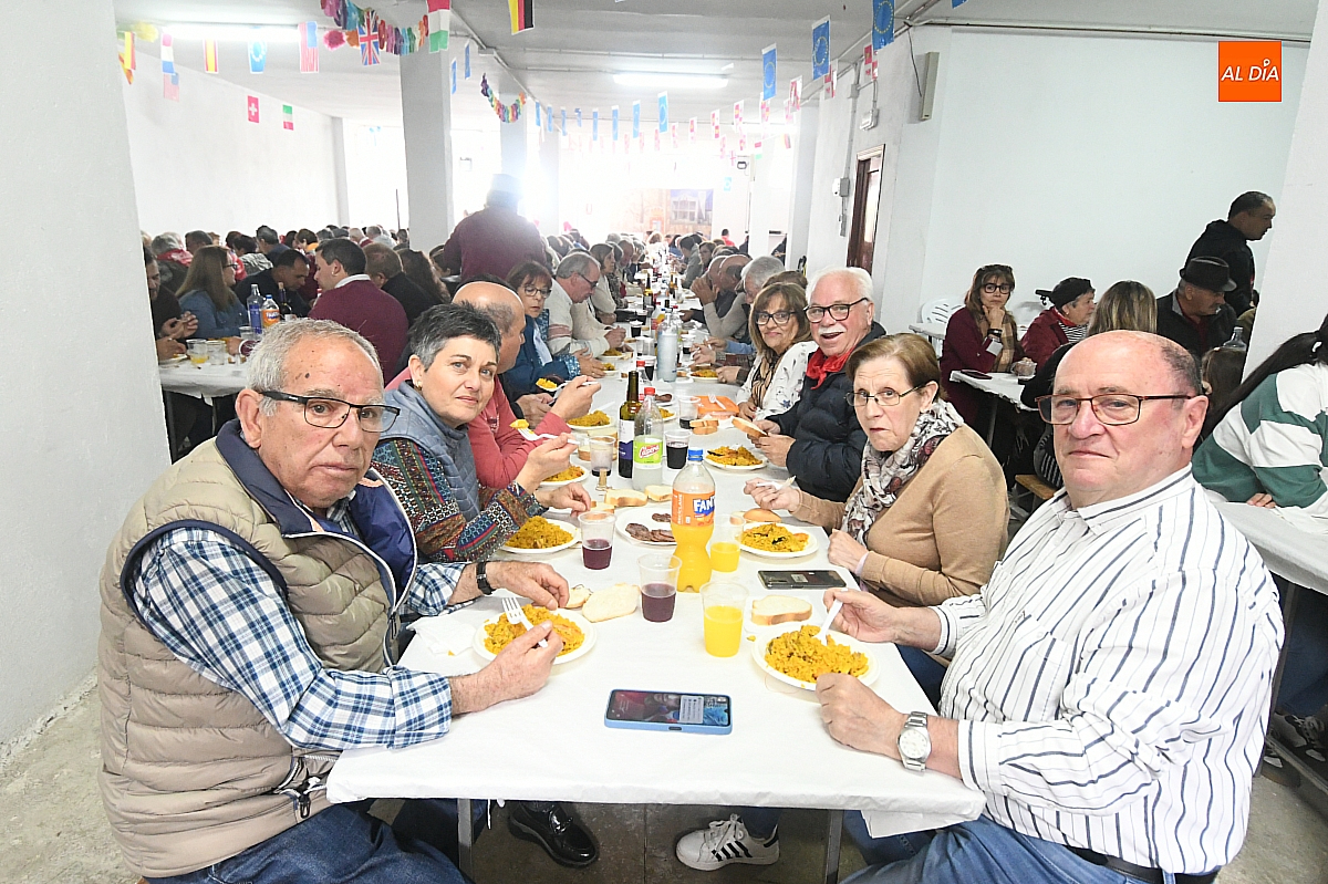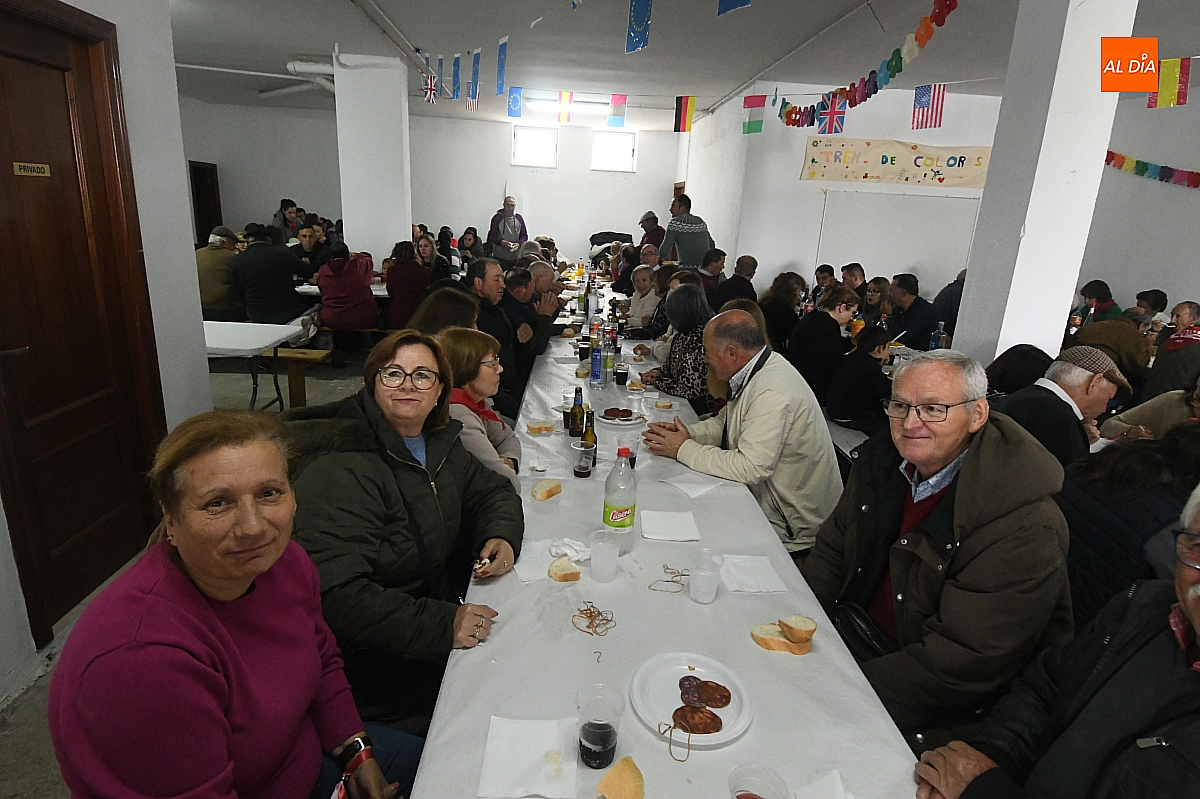 El evento tuvo lugar en los bajos del Ayuntamiento, espacio que resultó ser el lugar idóneo para acoger a los cerca de 300 asistentes. Allí, vecinos e invitados pudieron disfrutar de la comida en un ambiente de convivencia, resguardados de las inclemencias meteorológicas que marcaron todo el fin de semana y amenazaron con empañar los actos al aire libre.