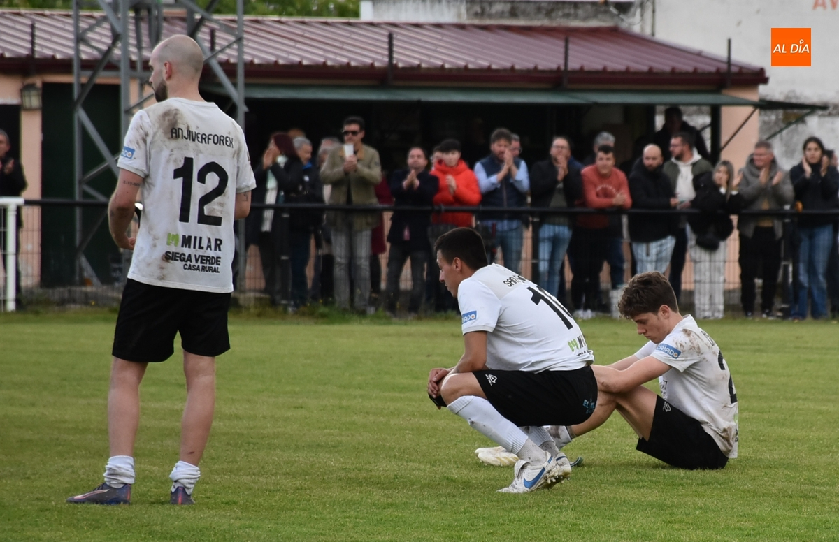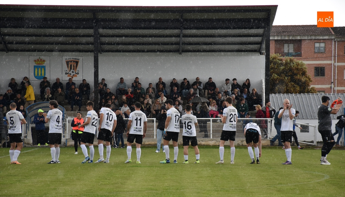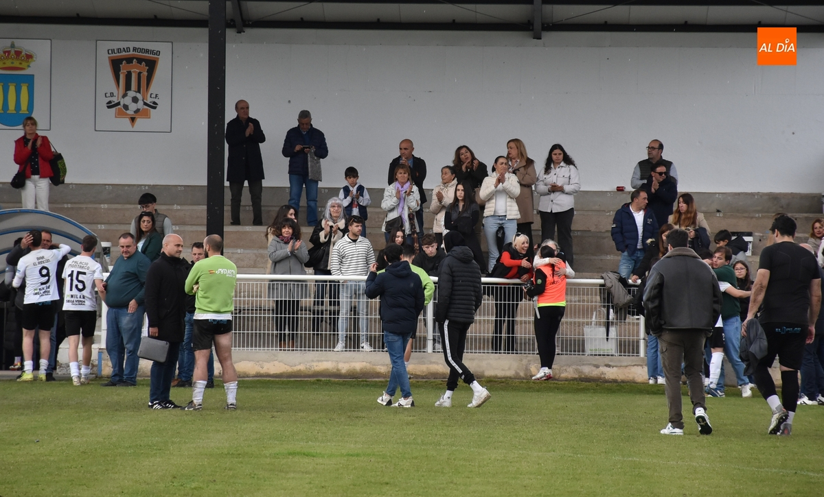 Mientras el Mojados celebraba este gol, el árbitro pitó el final, que realmente no consumaba el descenso del Ciudad Rodrigo porque ya se había hecho efectivo instantes antes con el final en Bembibre, pero sí certificaba una dolorosa derrota, quedándose así sin poder dar una última alegría a la afición mirobrigense. En todo caso, buena parte del público brindó los últimos aplausos a los jugadores, en varios de los cuales aparecieron las lágrimas (incluido alguno foráneo que apenas lleva una temporada, como Iván).