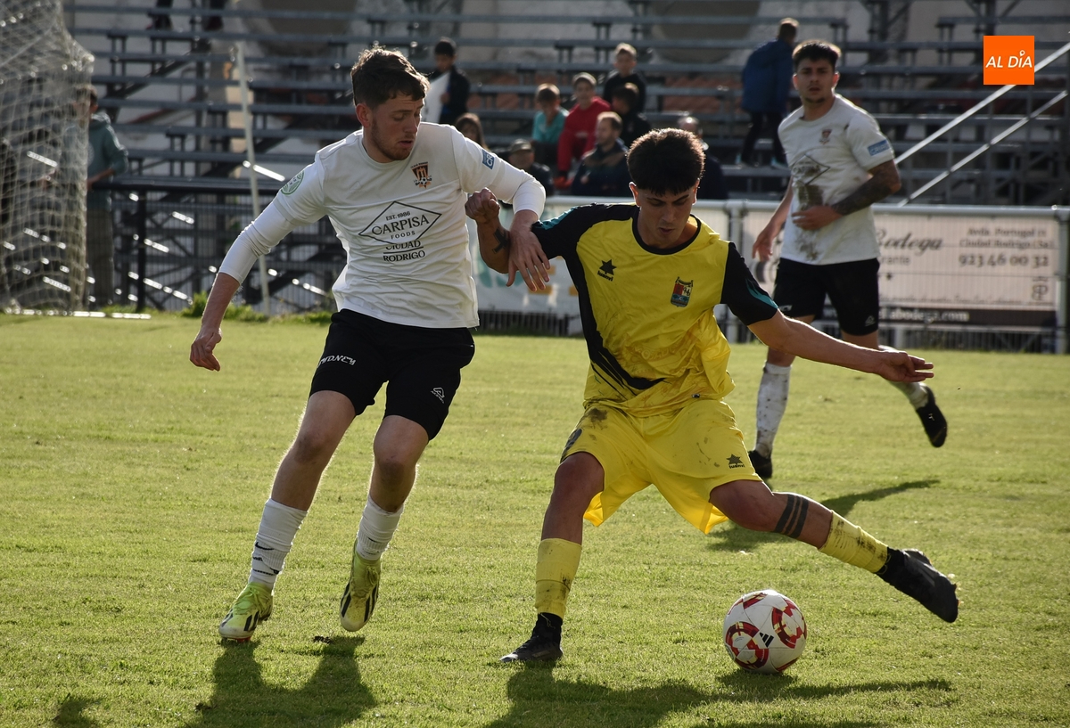 El Ciudad Rodrigo protagonizó en el siguiente tramo varias ocasiones claras, pero sin suerte: un fuerte disparo de Álex Pérez desde ¾ de campo se fue por encima del larguero, Rober cabeceó un saque de esquina justo hacia donde estaba el portero, y un tiro en carrera de Alberto García se fue al lado del palo izquierdo. En el 74’, Álvaro Castaño puso un gran balón desde la derecha hacia Iván, cuyo golpeo de primeras fue desviado por un jugador visitante a córner.