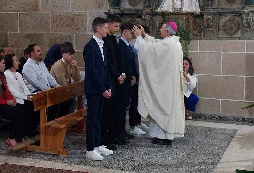La Iglesia de Robleda prácticamente se llenó en la jornada del domingo de familiares y amigos de los 7 jóvenes vinculados a la Parroquia que recibieron en una solemne ceremonia el Sacramento de la Confirmación. Los jóvenes recibieron el Espíritu Santo de manos del Obispo de la Diócesis de Ciudad Rodrigo, José Luis Retana, quién fue el encargado de presidir la celebración.