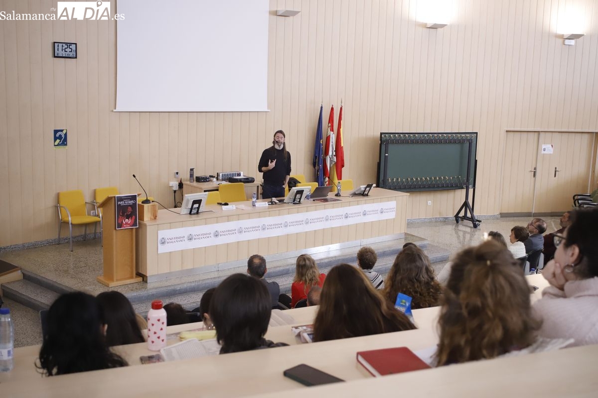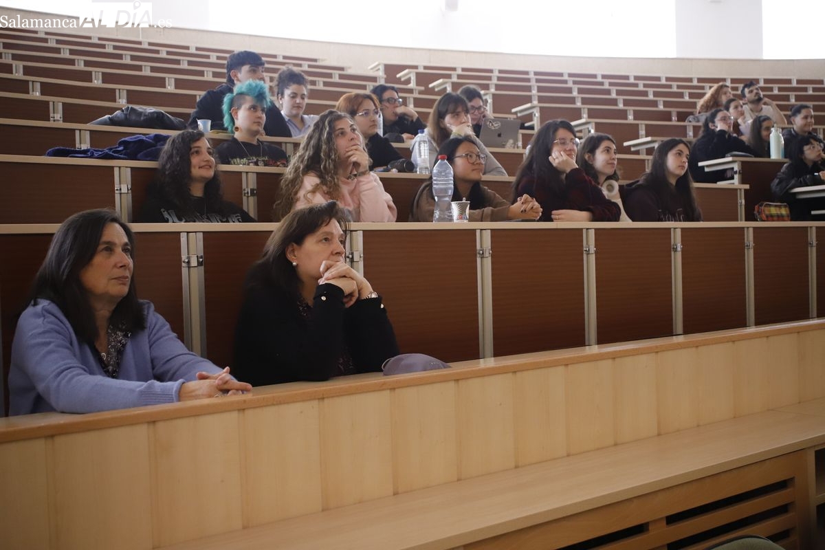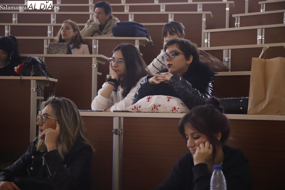 La Facultad de Bellas Artes de la Universidad de Salamanca se convertía este lunes en punto de encuentro para los amantes del cine y el diseño artístico. El prestigioso director de arte Javier Alvariño, galardonado con el Premio Goya a la Mejor Dirección de Arte por la película 'La virgen roja', regresaba a las instalaciones en las que estudió para compartir su experiencia profesional y método de trabajo con estudiantes y docentes.