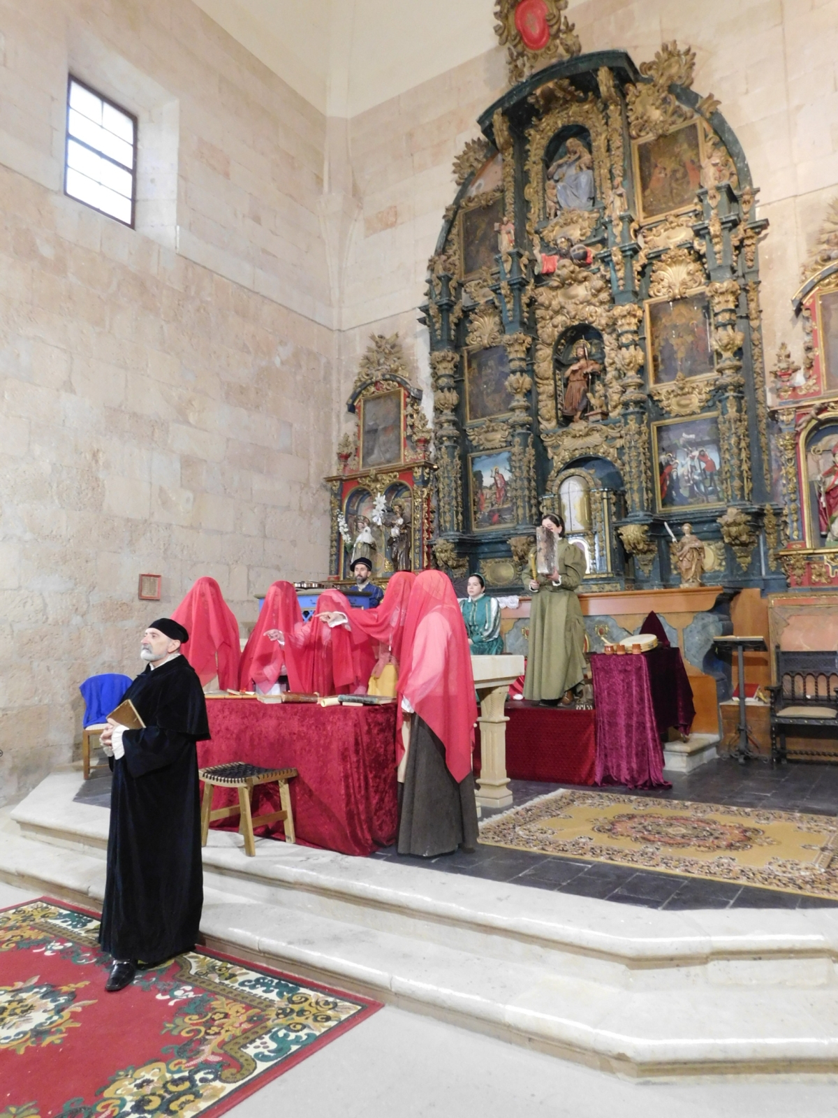 La capilla mayor de la iglesia parroquial de San Juan Bautista de Castellanos de Villiquera se convirtió el pasado domingo 4 de mayo, coincidiendo con el Día de la Madre, en escenario cultural para acoger la representación de la obra "Buscando a Nebrija" a cargo del Grupo de Teatro Lazarillo de Tormes.