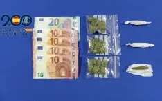 Además, se le intervino un total de 60 euros en billetes, presumiblemente procedentes de la venta de estupefacientes.