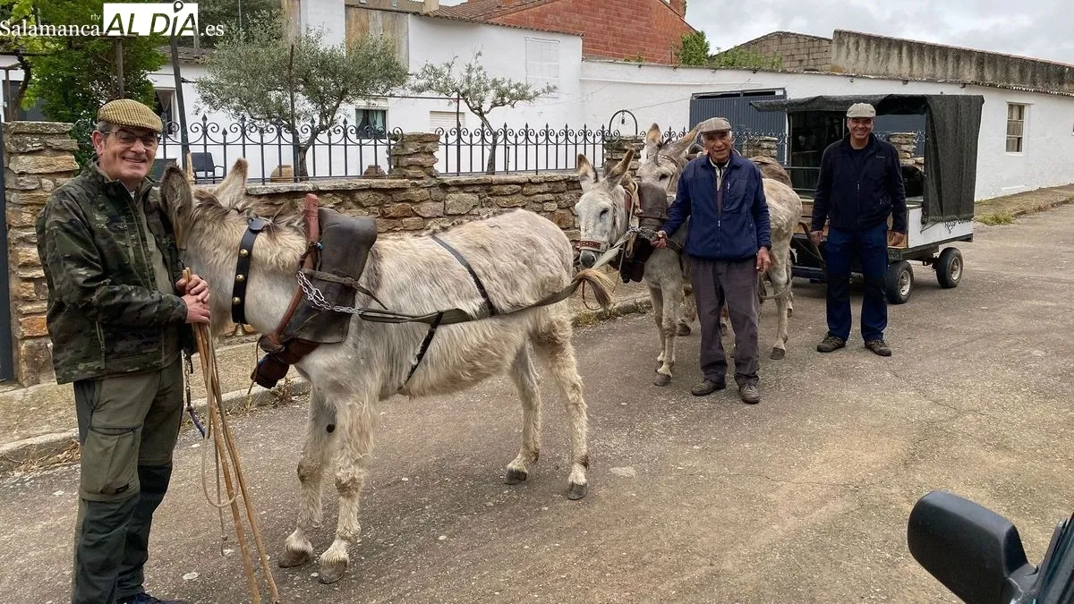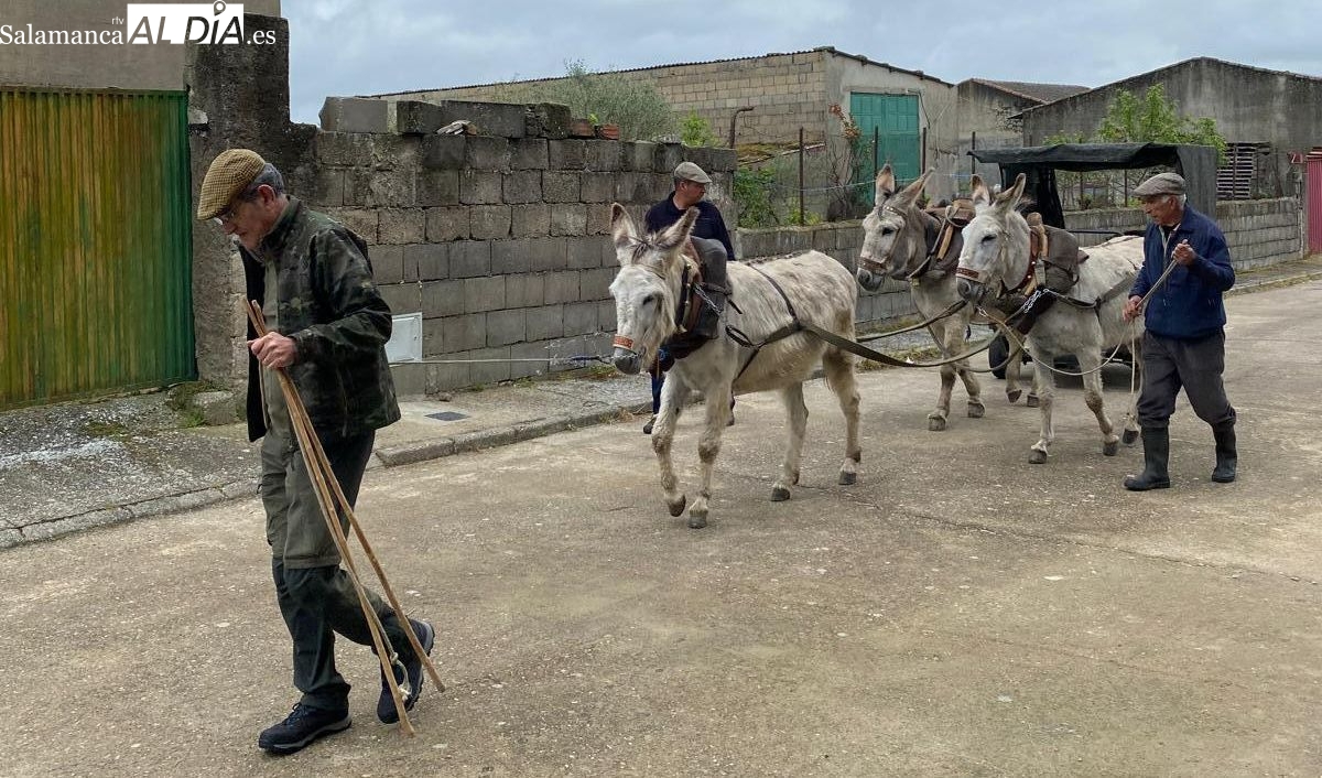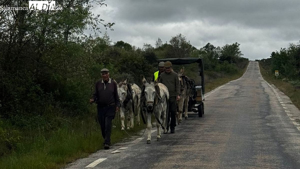 Tres vecinos de Lumbrales, Simón Miguel, octogenario, su hijo Miguel Francisco Miguel y su amigo Felipe Méndez, han emprendido esta mañana una aventura a pie de 110 kilómetros, con la compañía de tres burras. Esta particular romería les llevará desde Lumbrales a la ermita del Cristo de Cabrera, en Las Veguillas, donde esperan llegar el próximo jueves.