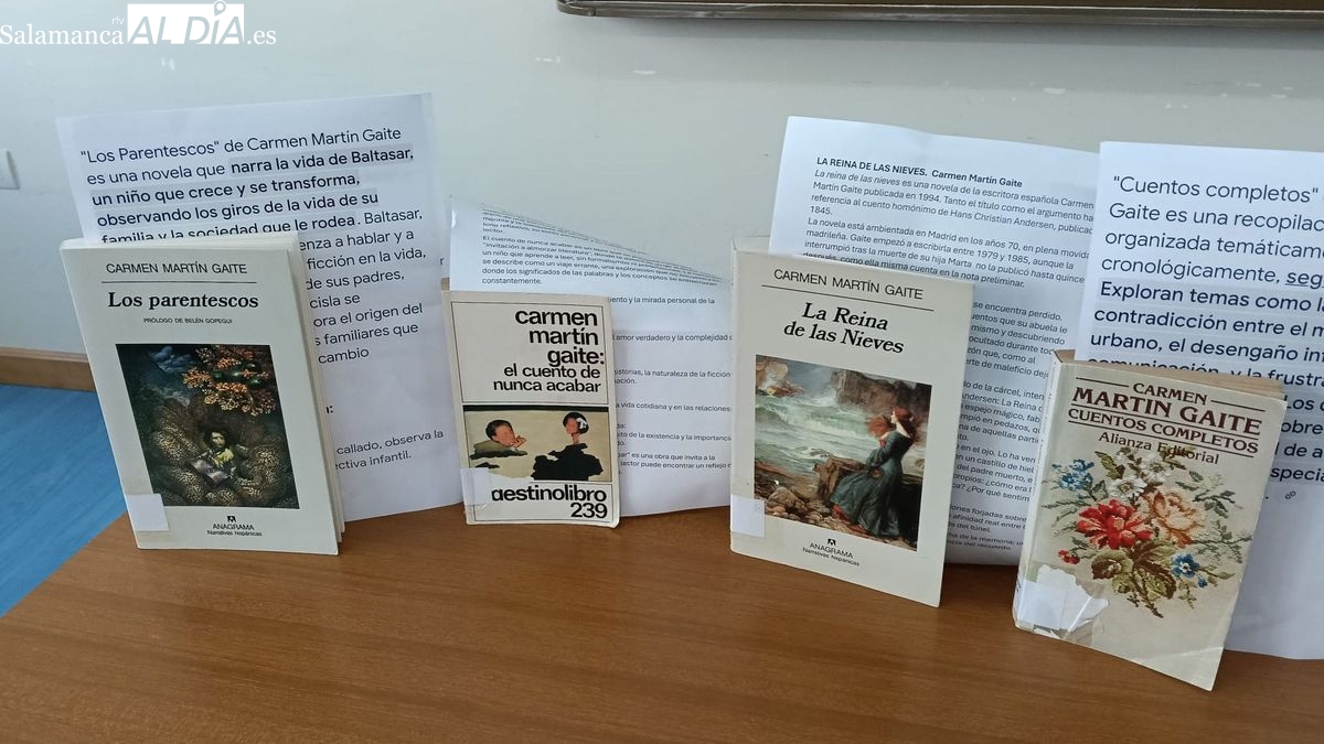 En el acto cultural, celebrado esta tarde, se leyeron poemas de Carmen Martín Gaite y fragmentos de algunas de sus novelas y de sus cuentos, de obras como 'La reina de las Nieves', 'Entre visillos', 'Los parentescos', 'Nubosidad variable', 'Lo raro es vivir', 'El cuento de nunca acabar' .....