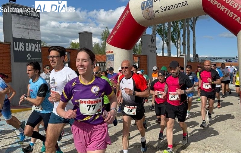 La alcaldesa de Peñaranda, Carmen Ávila, era la encargada de dar la salida a los participantes desde el Polideportivo, iniciando así un circuito de 14.570 metros por caminos y términos de diferentes localidades de la zona hasta la meta, situada en Coca de Alba.