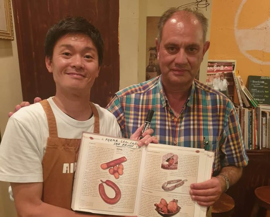 Según explica José Ramón Cid, a la conclusión de una de esas actuaciones fueron a cenar a un restaurante de Osaka en el cual había varios libros de cocina y gastronomía en varios idiomas, entre ellos uno en español sobre La matanza tradicional del cerdo. Dentro de ese libro hay un capítulo dedicado al farinato escrito por el propio José Ramón Cid, comentándole esa circunstancia al dueño-cocinero del establecimiento quién, tras mostrar su sorpresa, le pidió que se lo firmara y que se hiciesen una foto con la publicación.