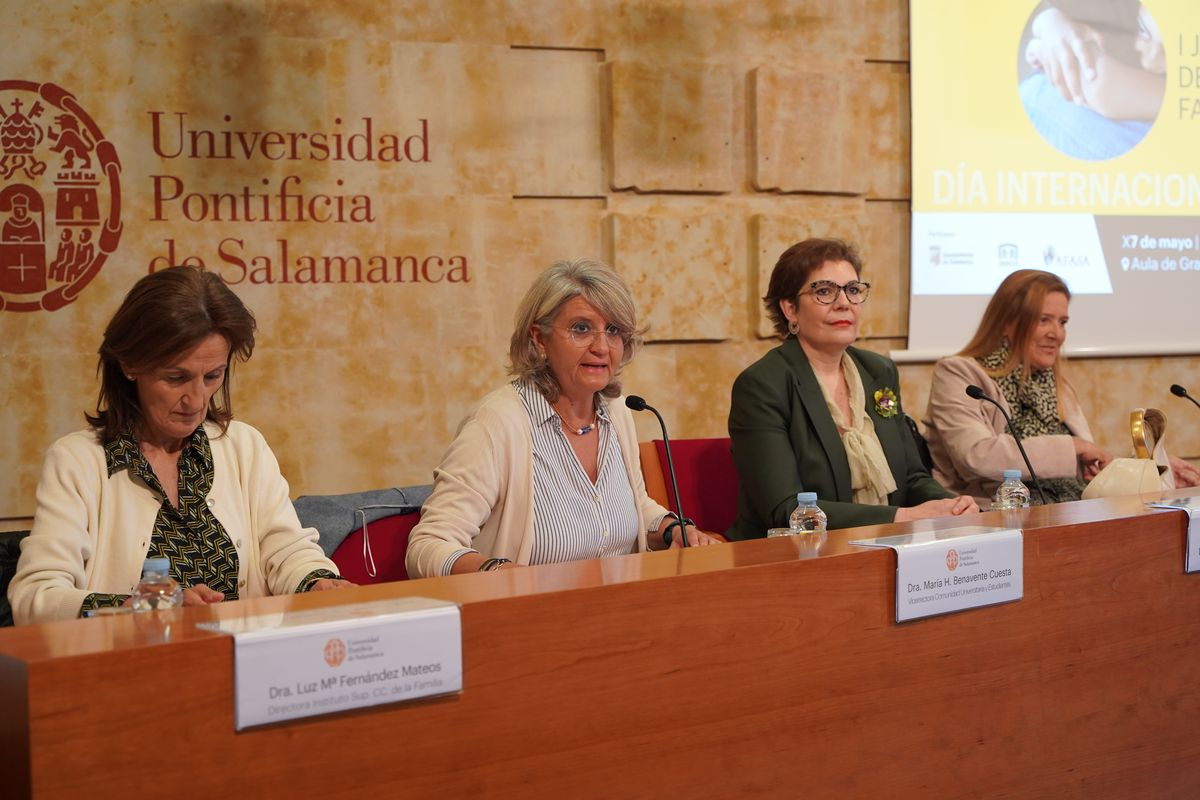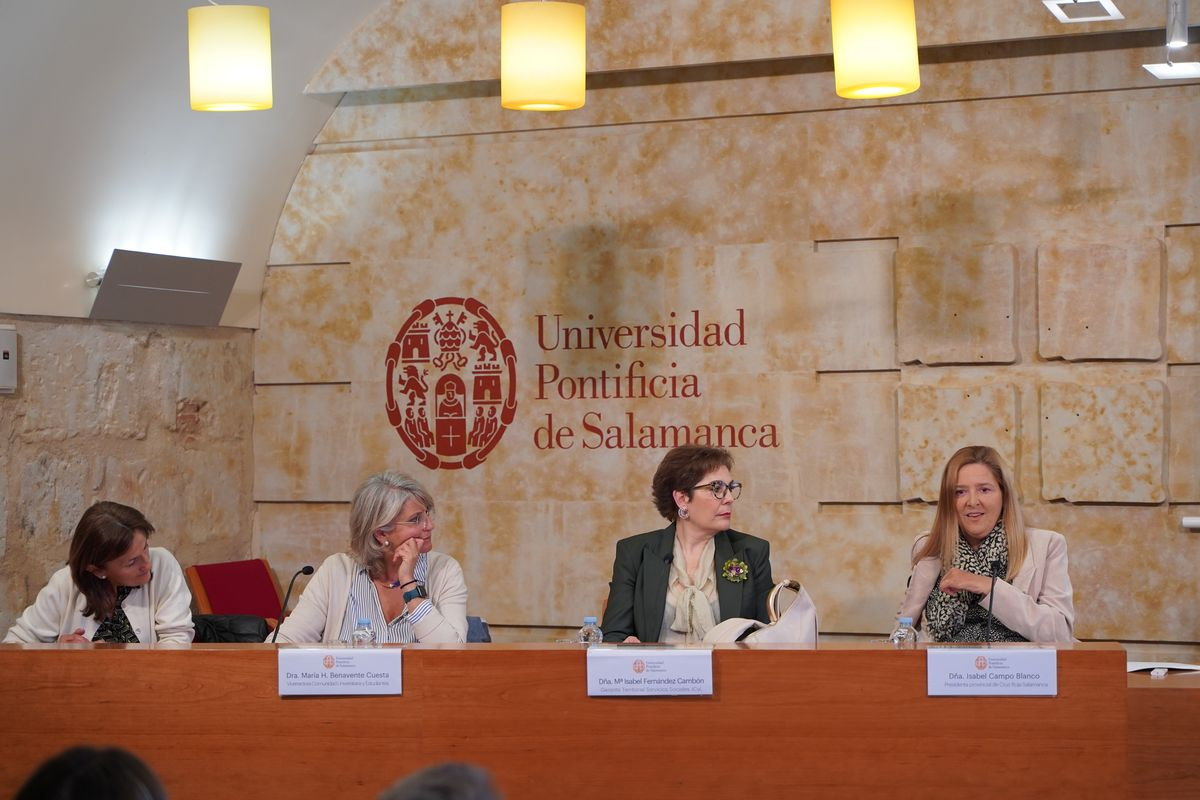 La inauguración del encuentro contó con la presencia de la vicerrectora de Comunidad Universitaria y Estudiantes de la UPSA, María H. Benavente; la gerente territorial de Servicios Sociales de la Junta de Castilla y León, María Isabel Fernández; la presidenta provincial de Cruz Roja Salamanca, Isabel Campo, y la directora del Instituto de Ciencias de la Familia de la UPSA, Luz María Fernández. Todas ellas subrayaron la importancia de la colaboración institucional y la sensibilización social.