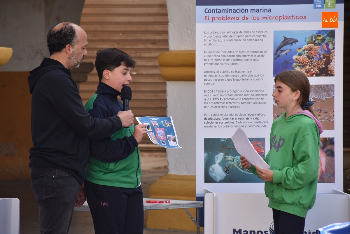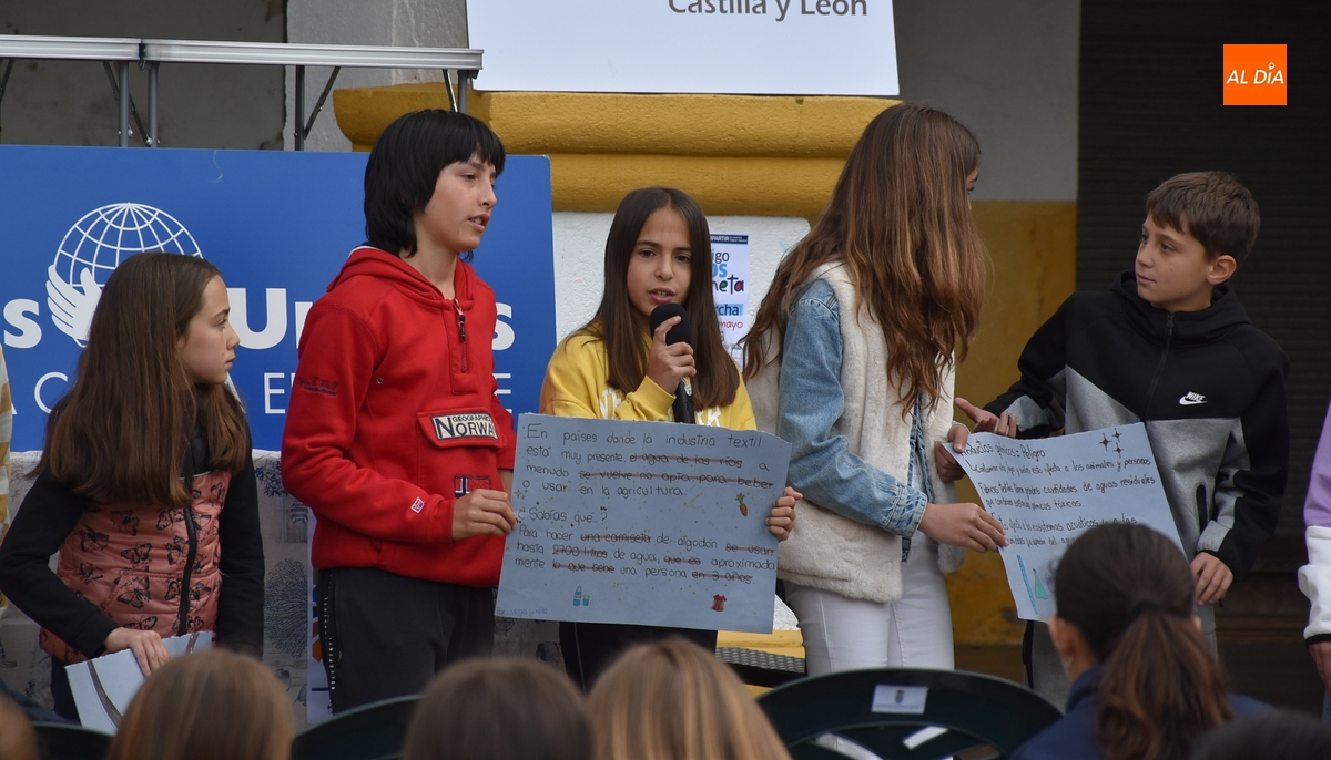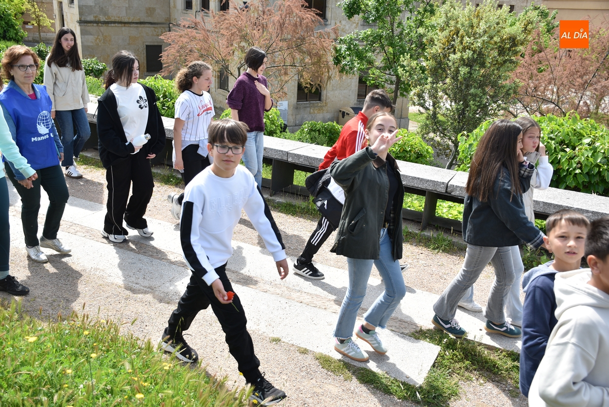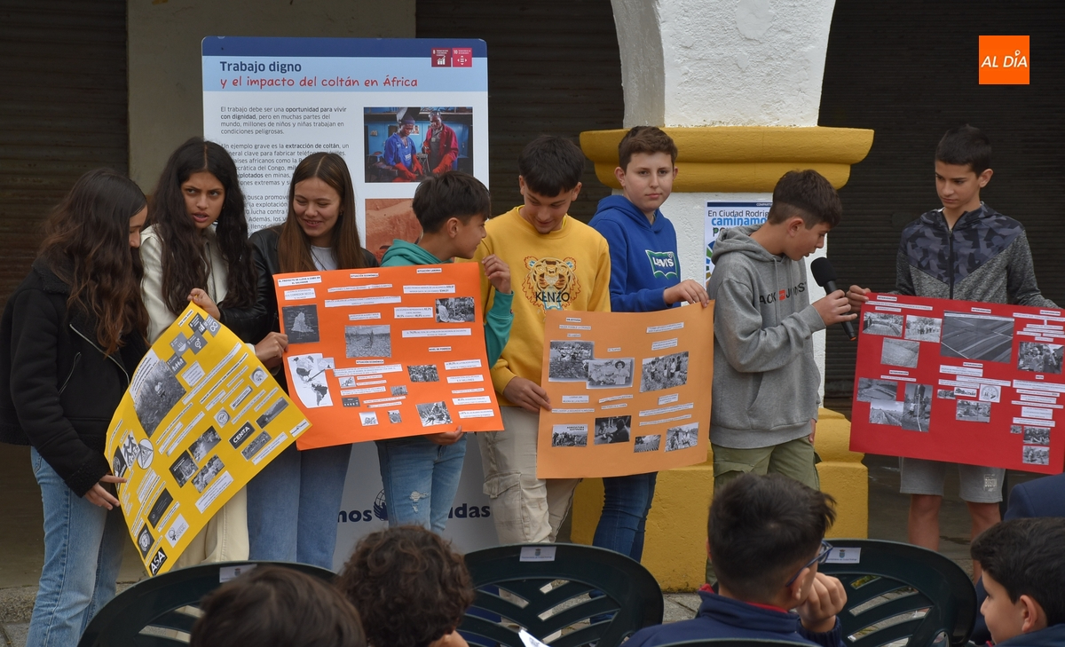 Esa ‘gente joven’ participante en la iniciativa fueron unos 160 escolares de 6º de Educación Primaria de los colegios San Francisco, Miróbriga y Misioneras de la Providencia-Santa Teresa, y de 1º de la ESO del IES Tierra de Ciudad Rodrigo, que acudieron junto a sus profesores hasta la Plazuela del Buen Alcalde, epicentro principal del evento, que contó con la colaboración de numerosos voluntarios de Manos Unidas.