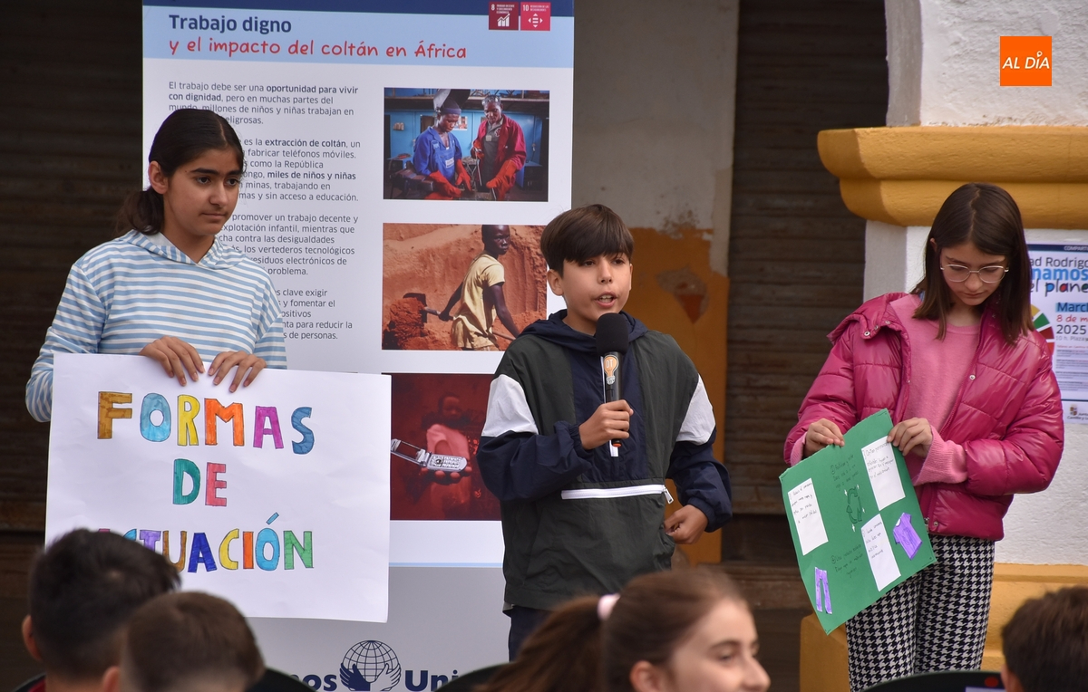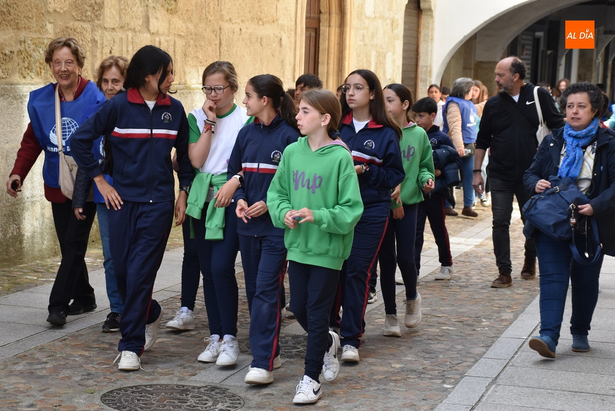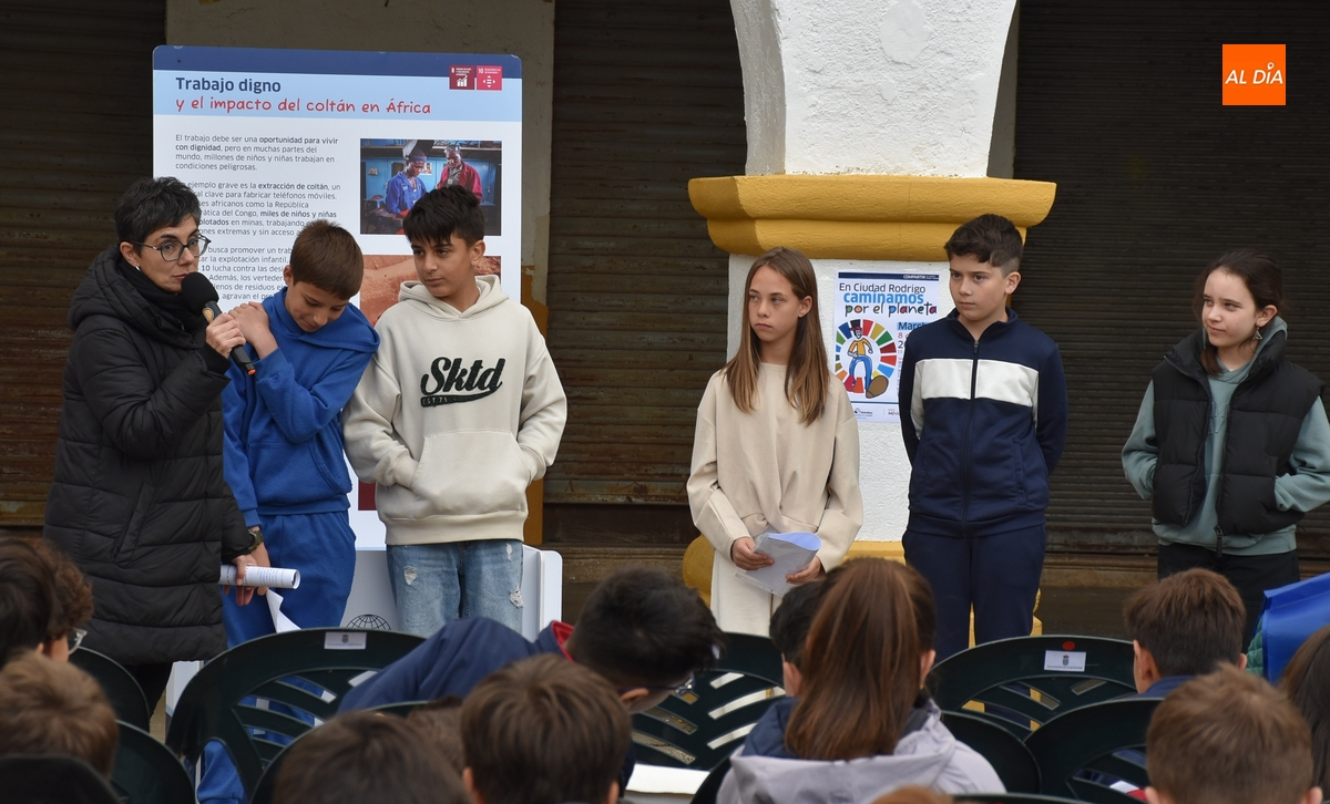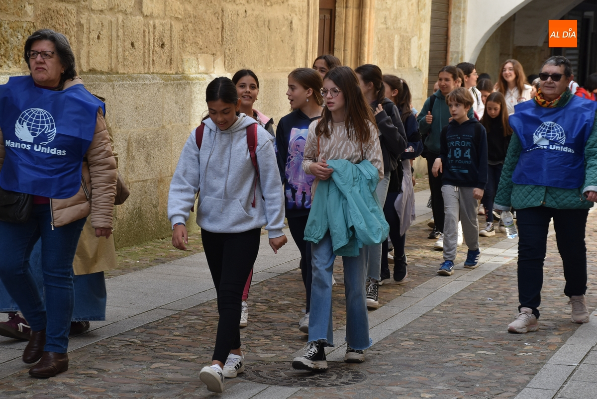 La Delegación Diocesana de Manos Unidas en Ciudad Rodrigo llevó a cabo en el tramo de la mañana del jueves que estuvo presidido por el sol (posteriormente se puso a llover) una actividad de sensibilización denominada Caminamos por el Planeta, que tenía como finalidad que los participantes reflexionasen sobre las desigualdades globales, queriendo “compartir con los hermanos del Sur nuestro esfuerzo para acabar con la desigualdad”, según expresó en la apertura la delegada diocesana, Ana Isabel Lucas.