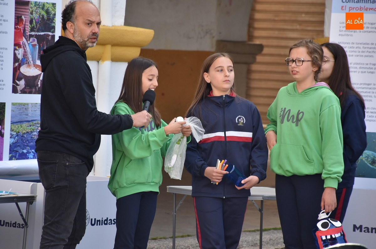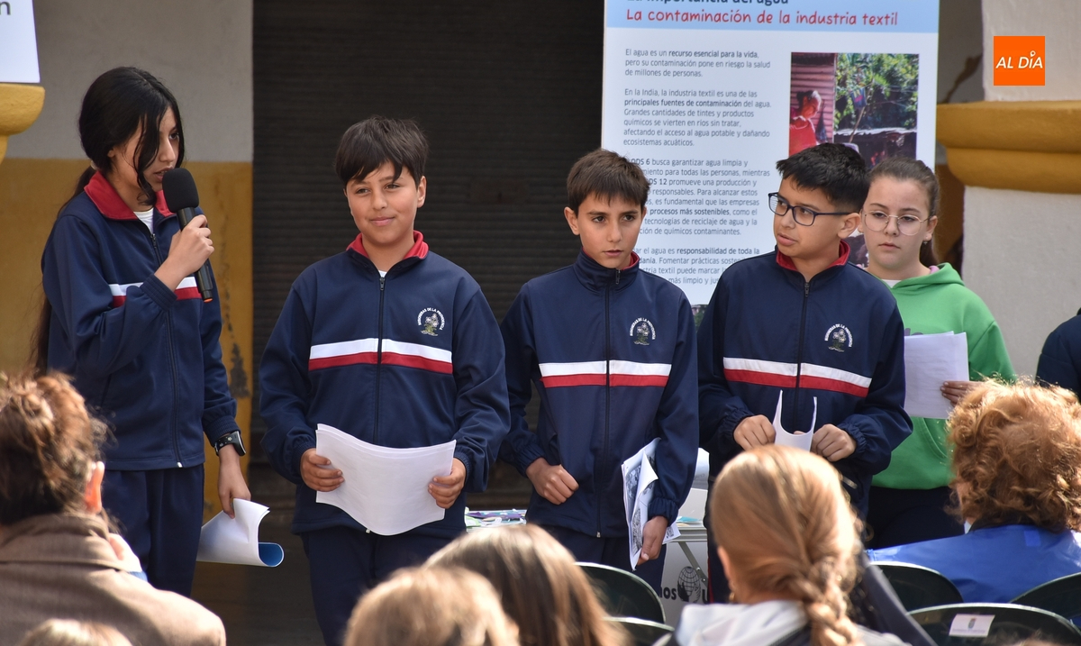 En lo que respecta a los alumnos del Colegio Miróbriga, trataron La importancia del agua, la contaminación y la industria textil (remarcando que “la ropa no debería costar el futuro del agua”); y por último, los alumnos del Colegio Misioneras-Santa Teresa expusieron su trabajo sobre La contaminación marina, los microplásticos y las islas de plástico. Estos dos últimos grupos mostraron asimismo varias creaciones que han hecho relacionadas con sus proyectos: los del Miróbriga enseñaron unas bolsas que han creado con camisetas; y los de Misioneras-Santa Teresa, unos dibujos y manualidades a partir de elementos de plástico.