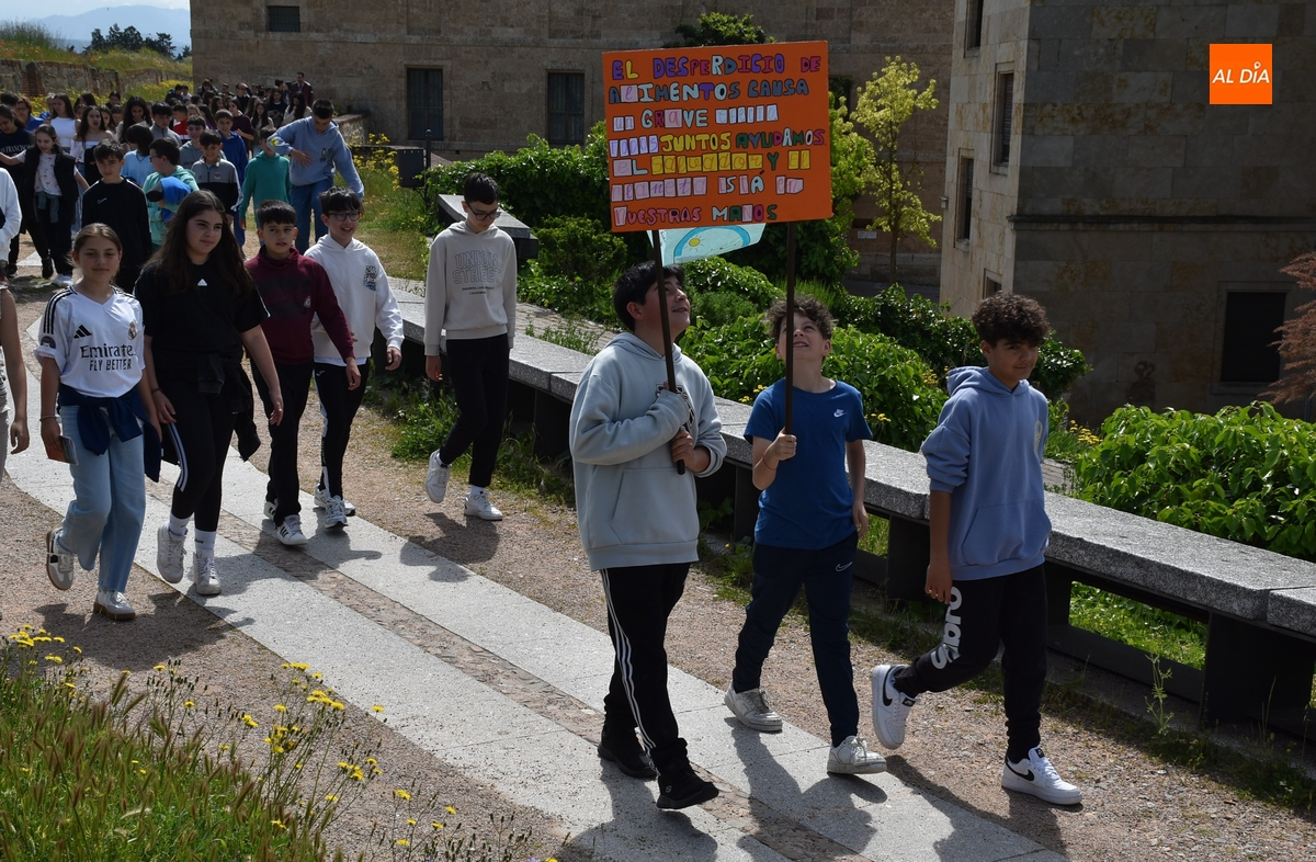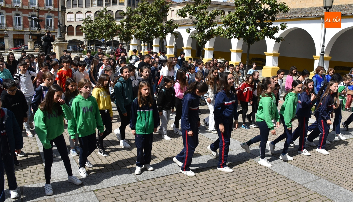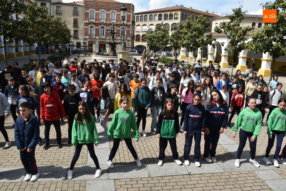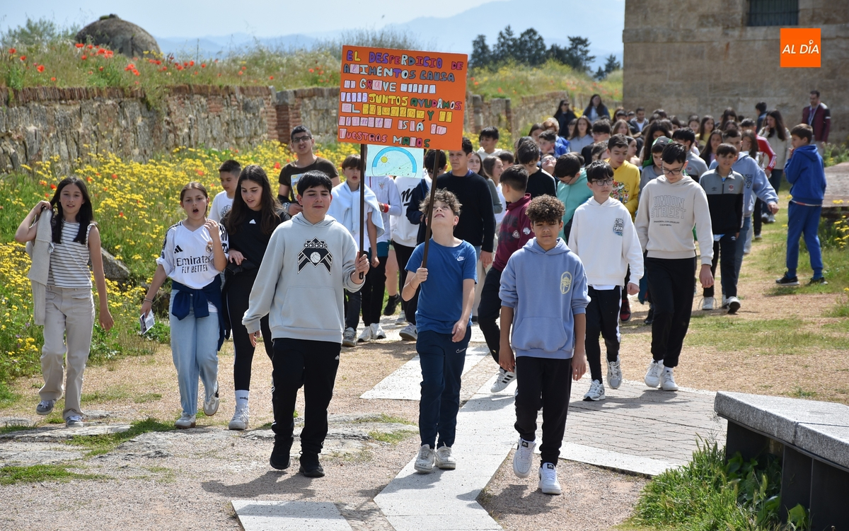 Escolares de Ciudad Rodrigo bailan y pasean por la muralla para conseguir un planeta mejor