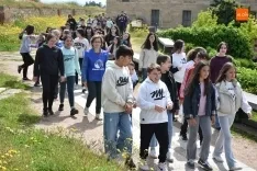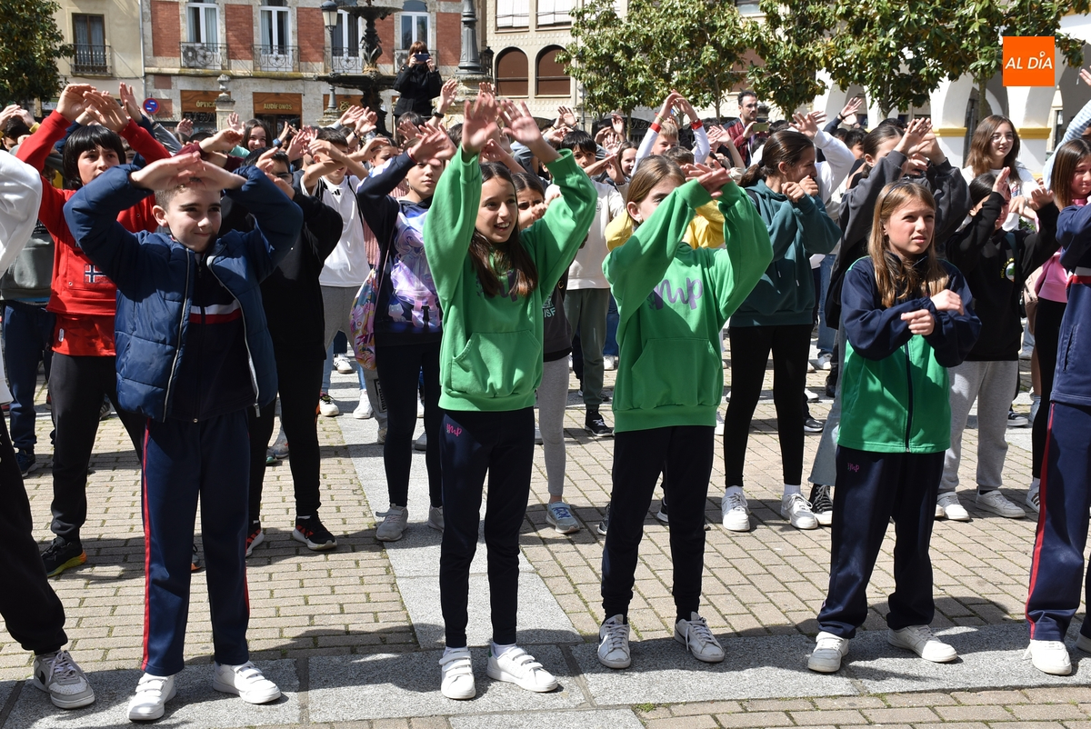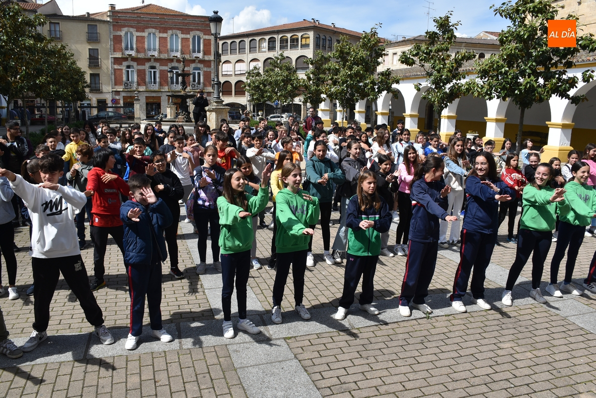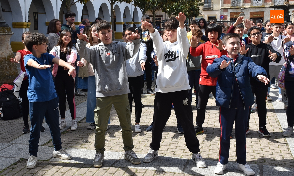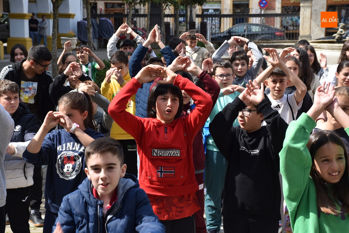 Escolares de Ciudad Rodrigo bailan y pasean por la muralla para conseguir un planeta mejor