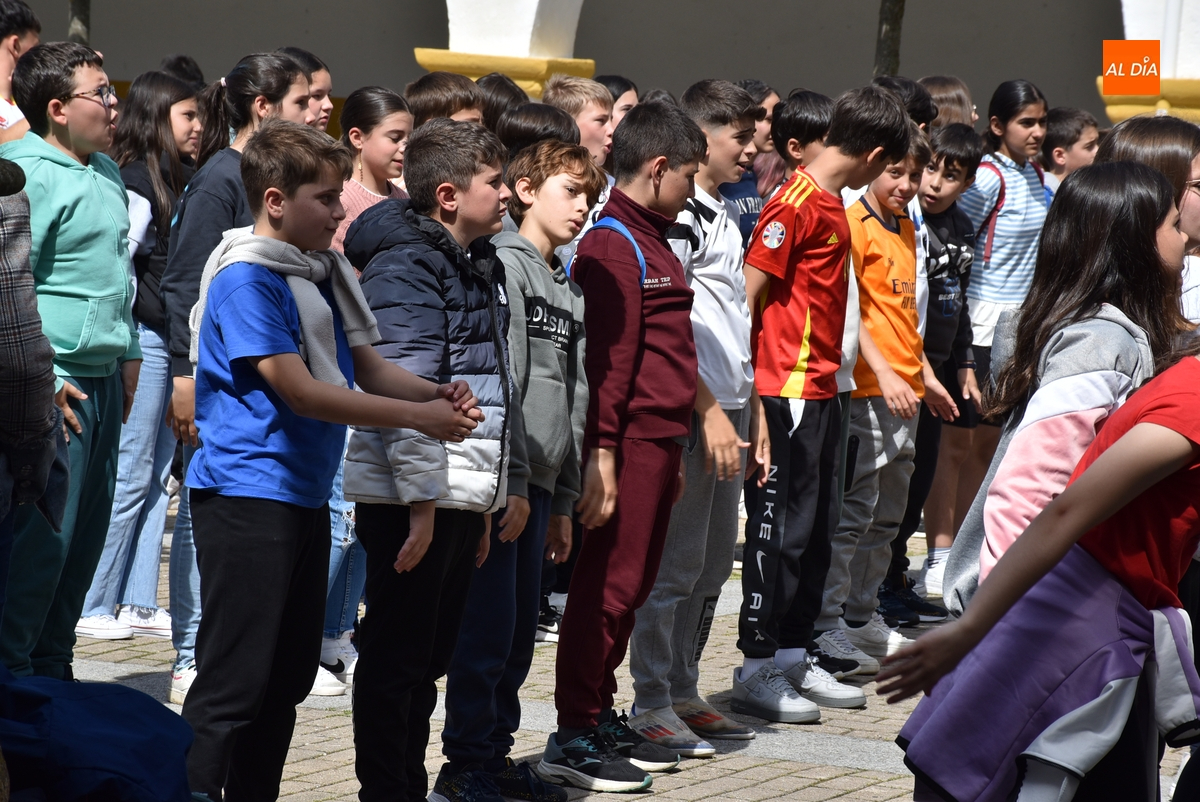 Tras la parte más ‘teórica’ de la mañana, se pasó a la lúdica y festiva, comenzando con el baile con coreografía en la propia Plazuela del Buen Alcalde de la canción Los Derechos Humanos de la Infancia. A continuación, todos los presentes se dirigieron hacia la Puerta del Conde para subir a la muralla, por cuyo adarve transitaron en dirección a la Plazuela del Castillo.