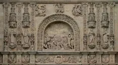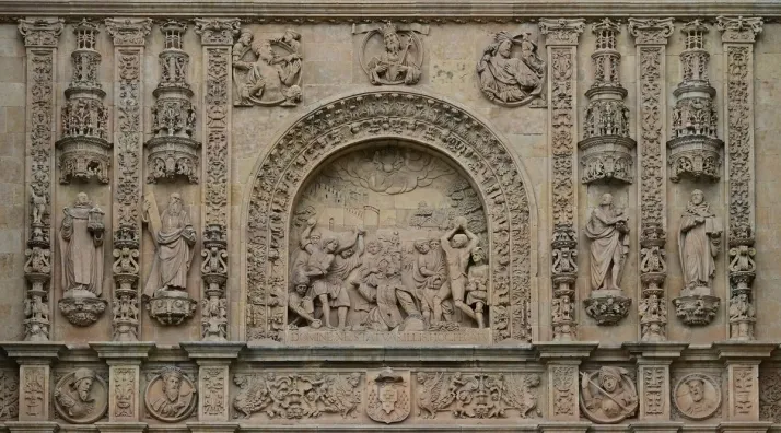 Fachada del convento de San Esteban que recrea la lapidación de ese santo