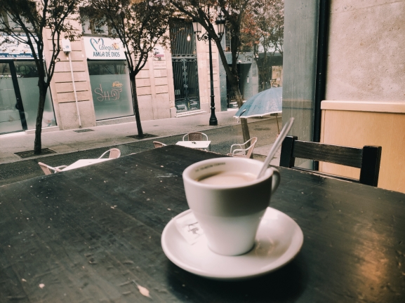 En las tardes de los padres surgen huecos. En los huecos de las tardes, a veces lluvias. Y en las lluvias, ocasión para un café solitario, que hoy tenía que ser aquí. Mirando frente a frente la puerta de un colegio donde no hay charco pese a que sí ha llovido. Esperando que ocupe la silla vacía la próxima intervención en una cháchara virtual con signos de realidad, inusitada con síntomas de nostalgia.