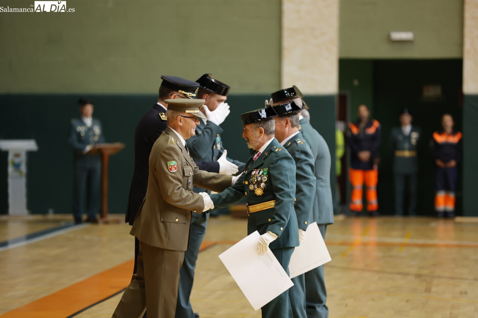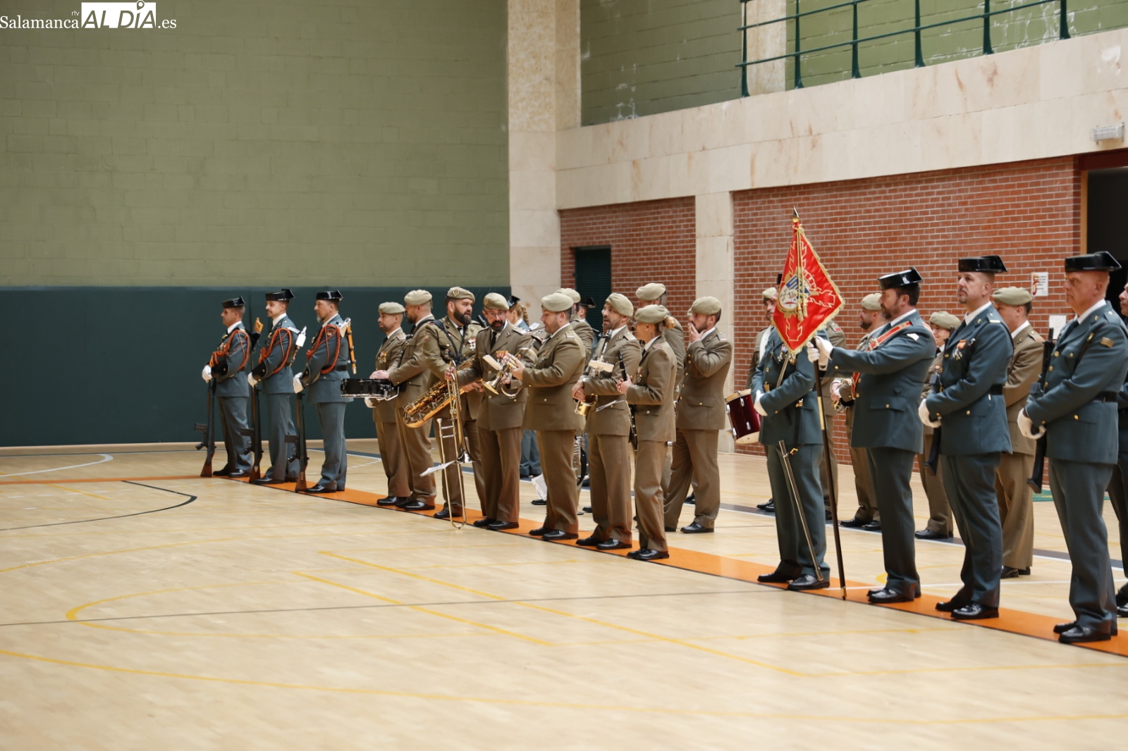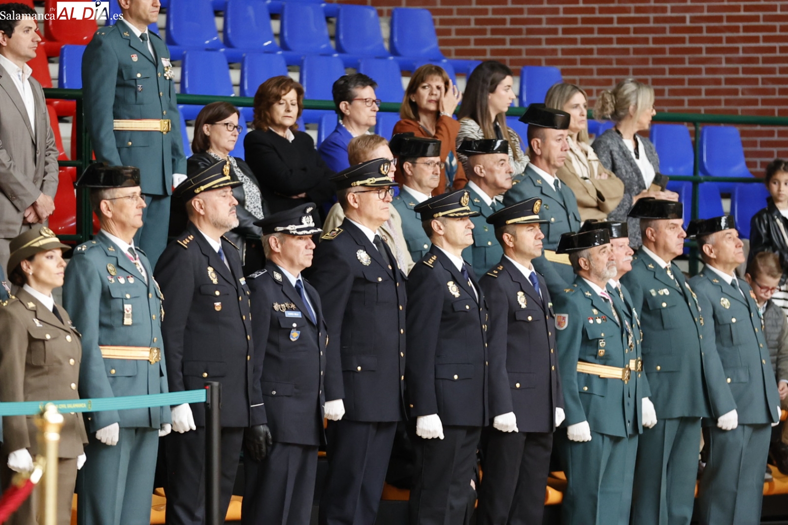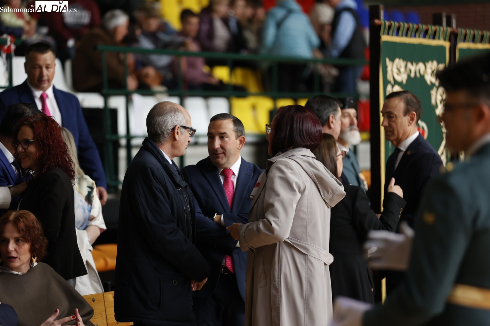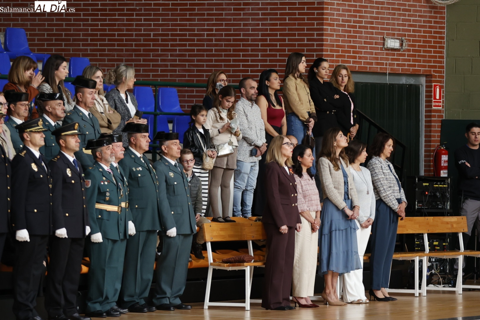 El pabellón municipal de Carbajosa de la Sagrada ha sido el escenario esta mañana de sábado, 10 de mayo, de los solemnes actos conmemorativos del 181 Aniversario de la Fundación del Cuerpo de la Guardia Civil. La celebración, presidida por Arturo Marcos, Teniente Coronel Jefe de la Comandancia de Salamanca y Rosa López, Subdelegada del Gobierno en Salamanca, ha contado con la asistencia de diversas autoridades civiles y militares de la provincia y ha congregado a numeroso público, en un evento que tuvo que ser celebrado bajo techo debido a las inclemencias meteorológicas.