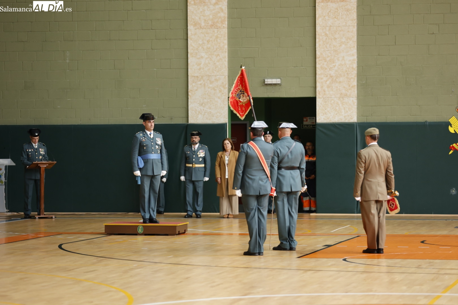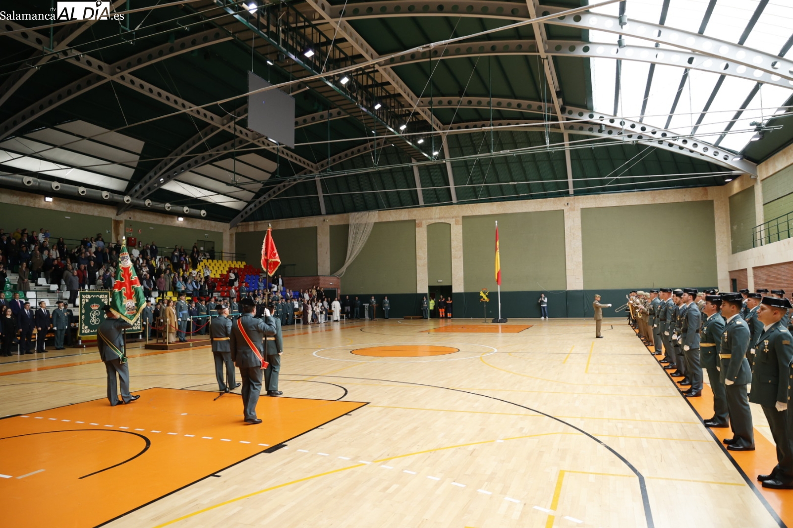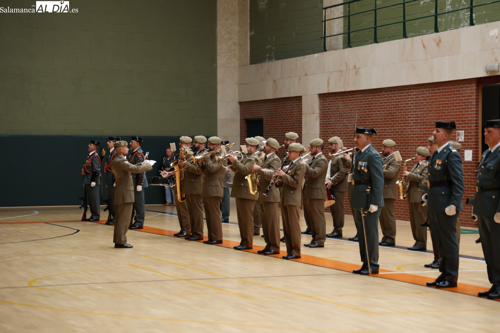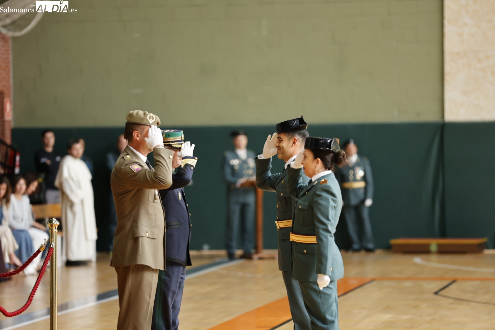 El pabellón municipal de Carbajosa de la Sagrada ha sido el escenario esta mañana de sábado, 10 de mayo, de los solemnes actos conmemorativos del 181 Aniversario de la Fundación del Cuerpo de la Guardia Civil. La celebración, presidida por Arturo Marcos, Teniente Coronel Jefe de la Comandancia de Salamanca y Rosa López, Subdelegada del Gobierno en Salamanca, ha contado con la asistencia de diversas autoridades civiles y militares de la provincia y ha congregado a numeroso público, en un evento que tuvo que ser celebrado bajo techo debido a las inclemencias meteorológicas.