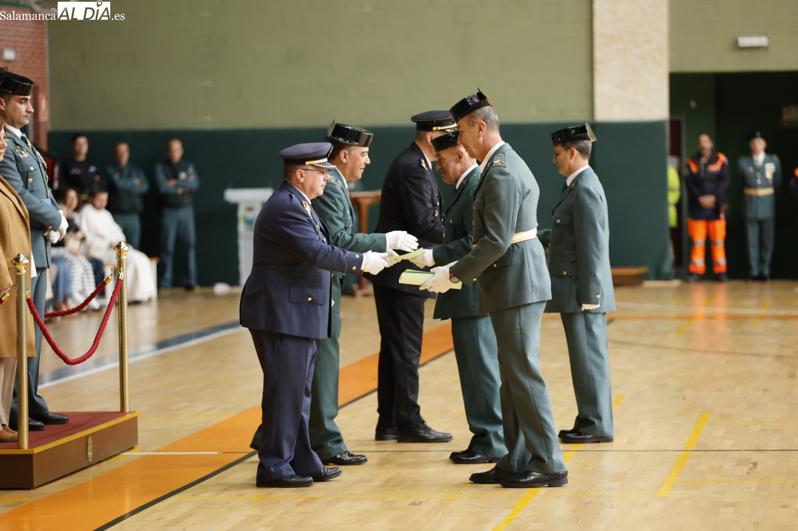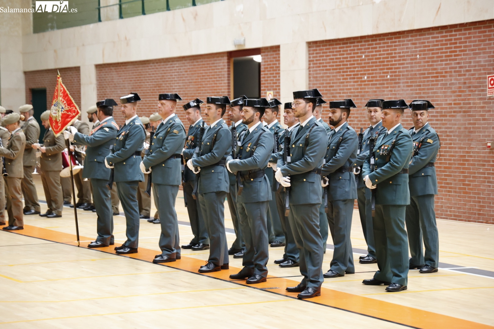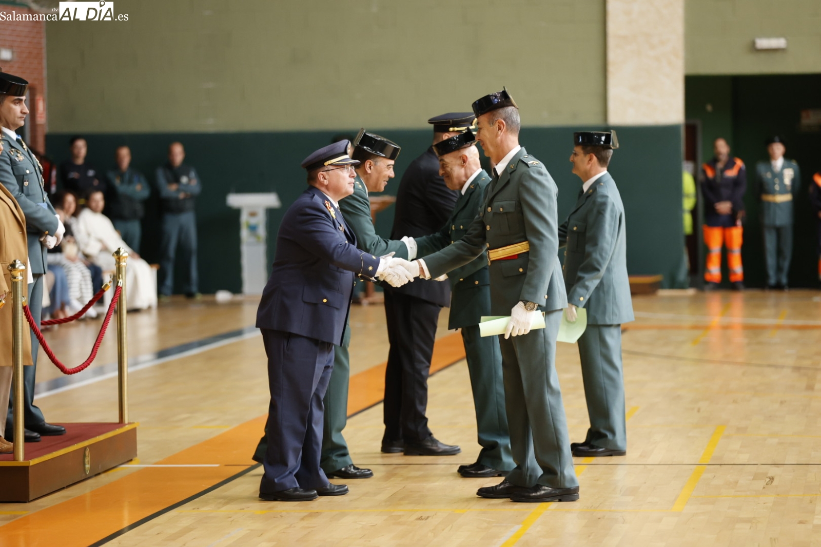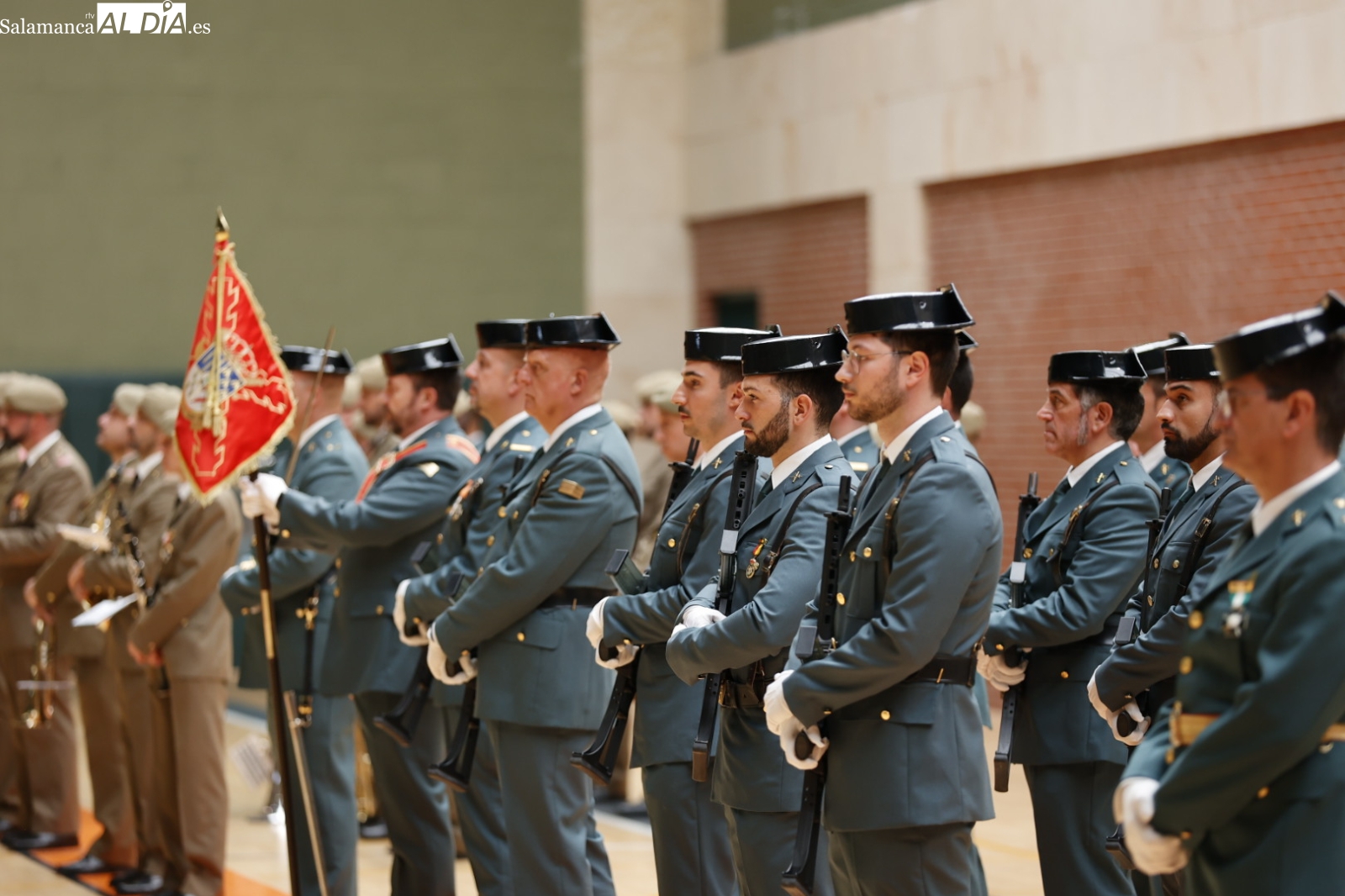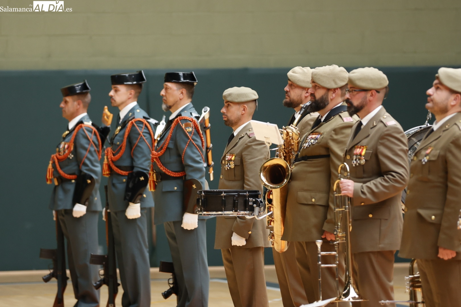 El pabellón municipal de Carbajosa de la Sagrada ha sido el escenario esta mañana de sábado, 10 de mayo, de los solemnes actos conmemorativos del 181 Aniversario de la Fundación del Cuerpo de la Guardia Civil. La celebración, presidida por Arturo Marcos, Teniente Coronel Jefe de la Comandancia de Salamanca y Rosa López, Subdelegada del Gobierno en Salamanca, ha contado con la asistencia de diversas autoridades civiles y militares de la provincia y ha congregado a numeroso público, en un evento que tuvo que ser celebrado bajo techo debido a las inclemencias meteorológicas.