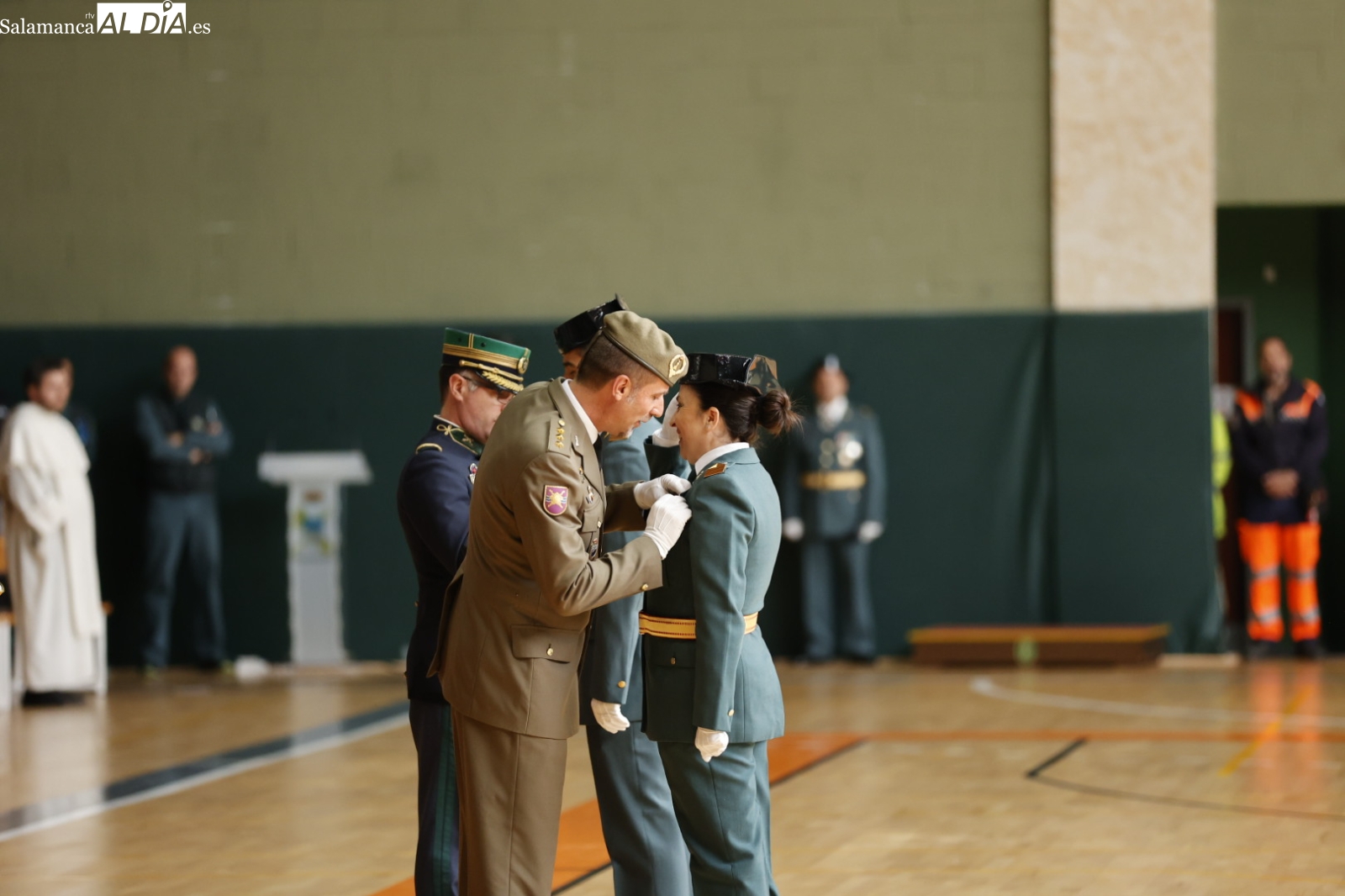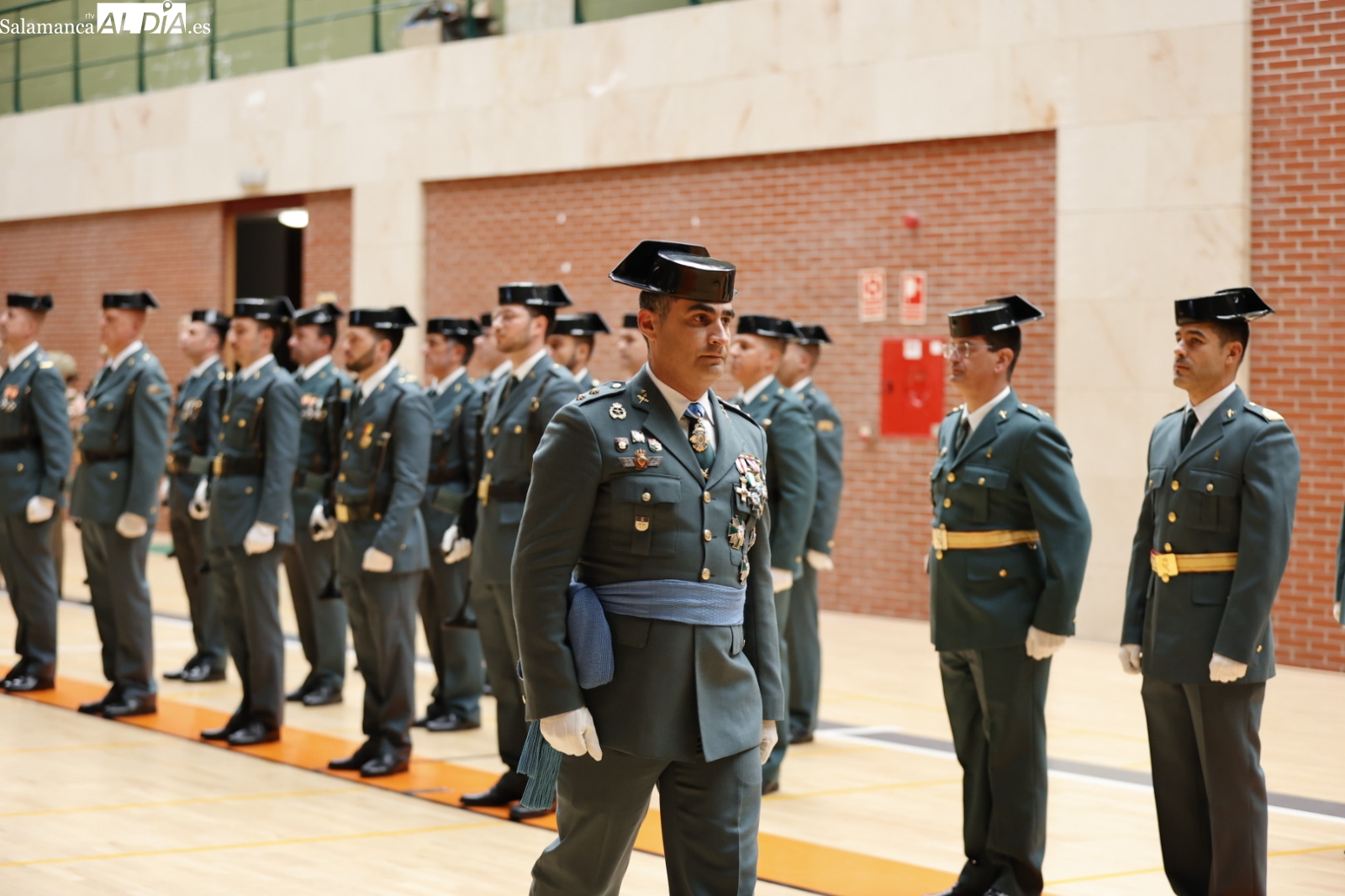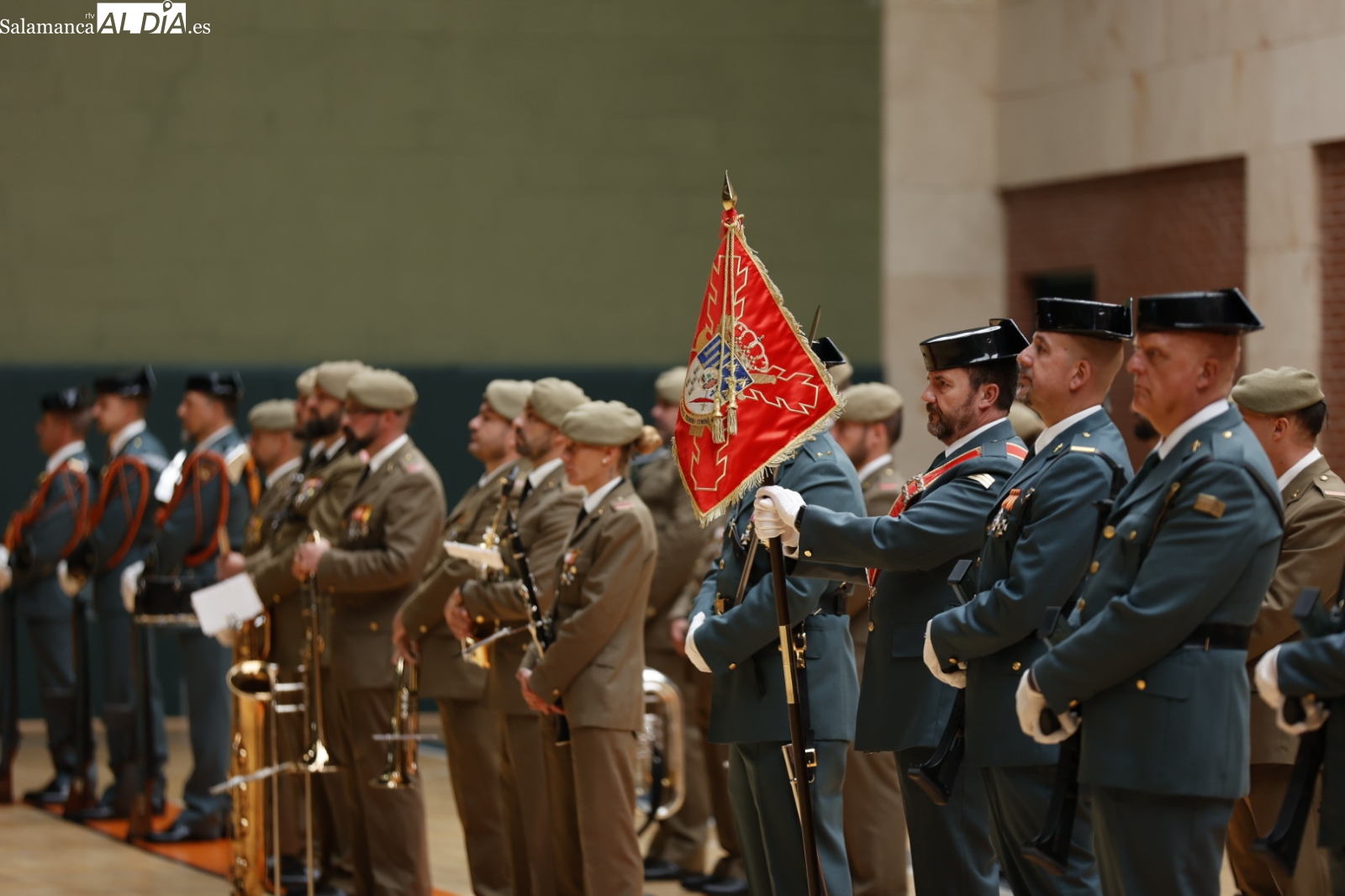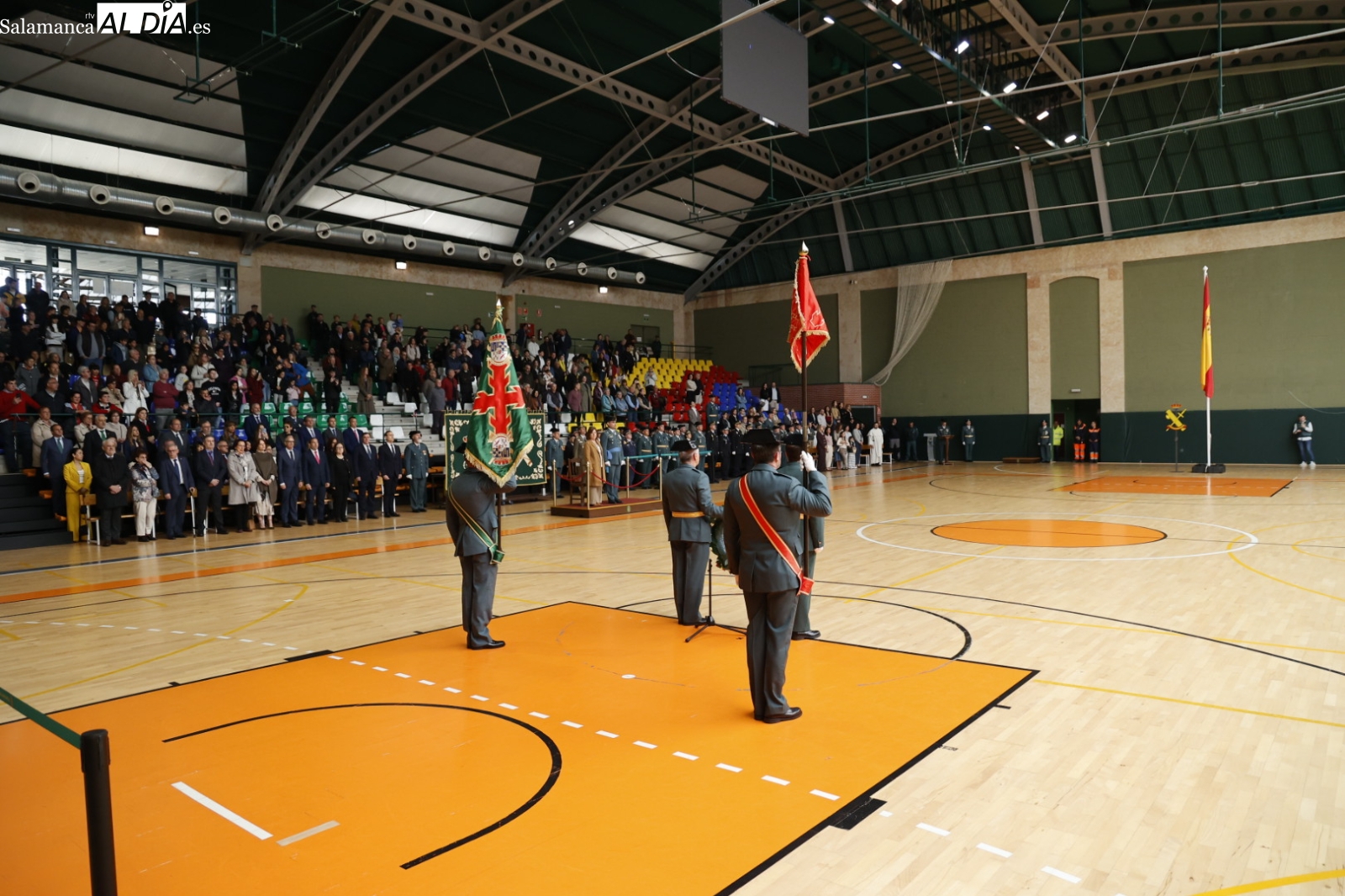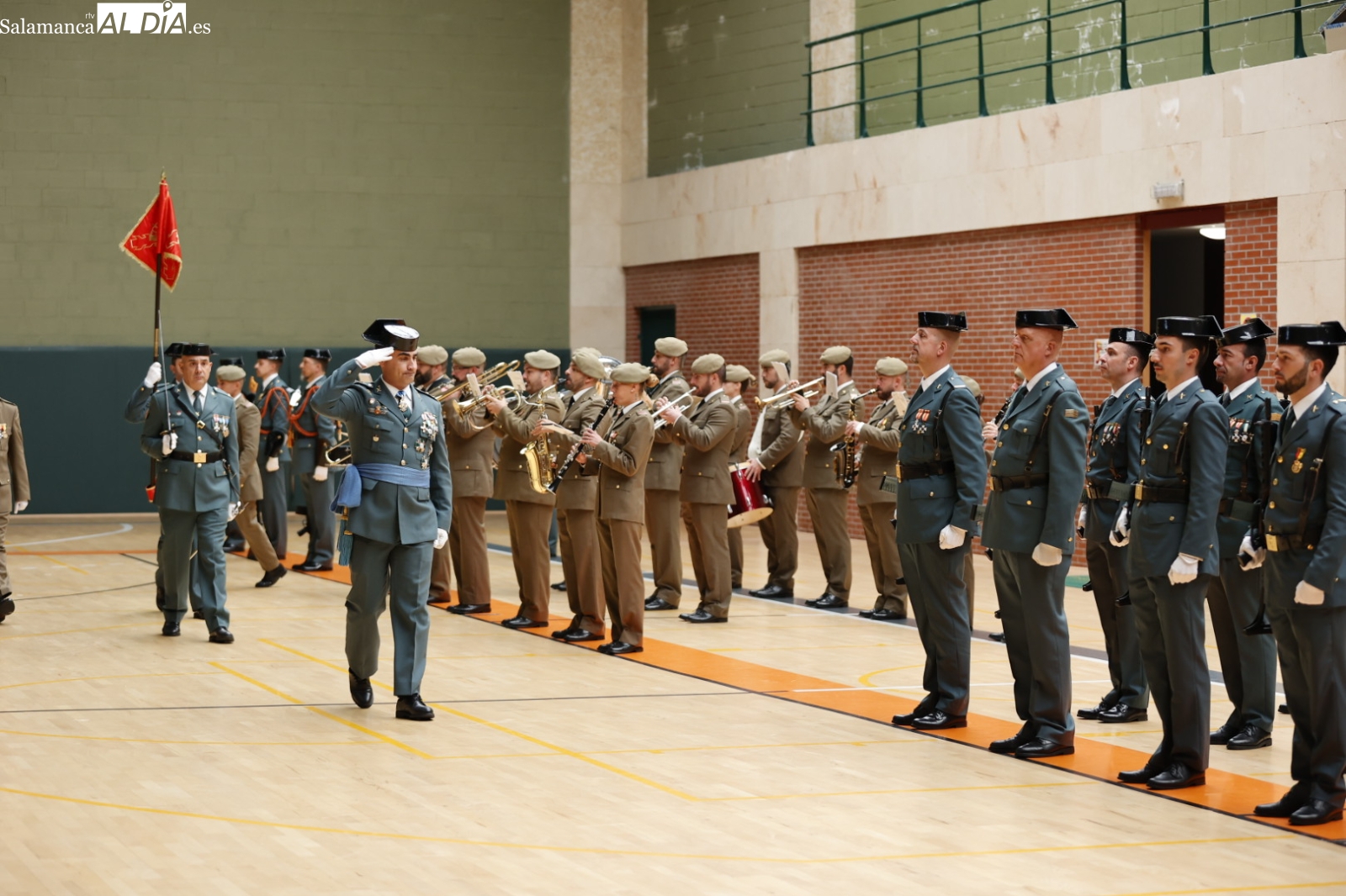 El pabellón municipal de Carbajosa de la Sagrada ha sido el escenario esta mañana de sábado, 10 de mayo, de los solemnes actos conmemorativos del 181 Aniversario de la Fundación del Cuerpo de la Guardia Civil. La celebración, presidida por Arturo Marcos, Teniente Coronel Jefe de la Comandancia de Salamanca y Rosa López, Subdelegada del Gobierno en Salamanca, ha contado con la asistencia de diversas autoridades civiles y militares de la provincia y ha congregado a numeroso público, en un evento que tuvo que ser celebrado bajo techo debido a las inclemencias meteorológicas.
