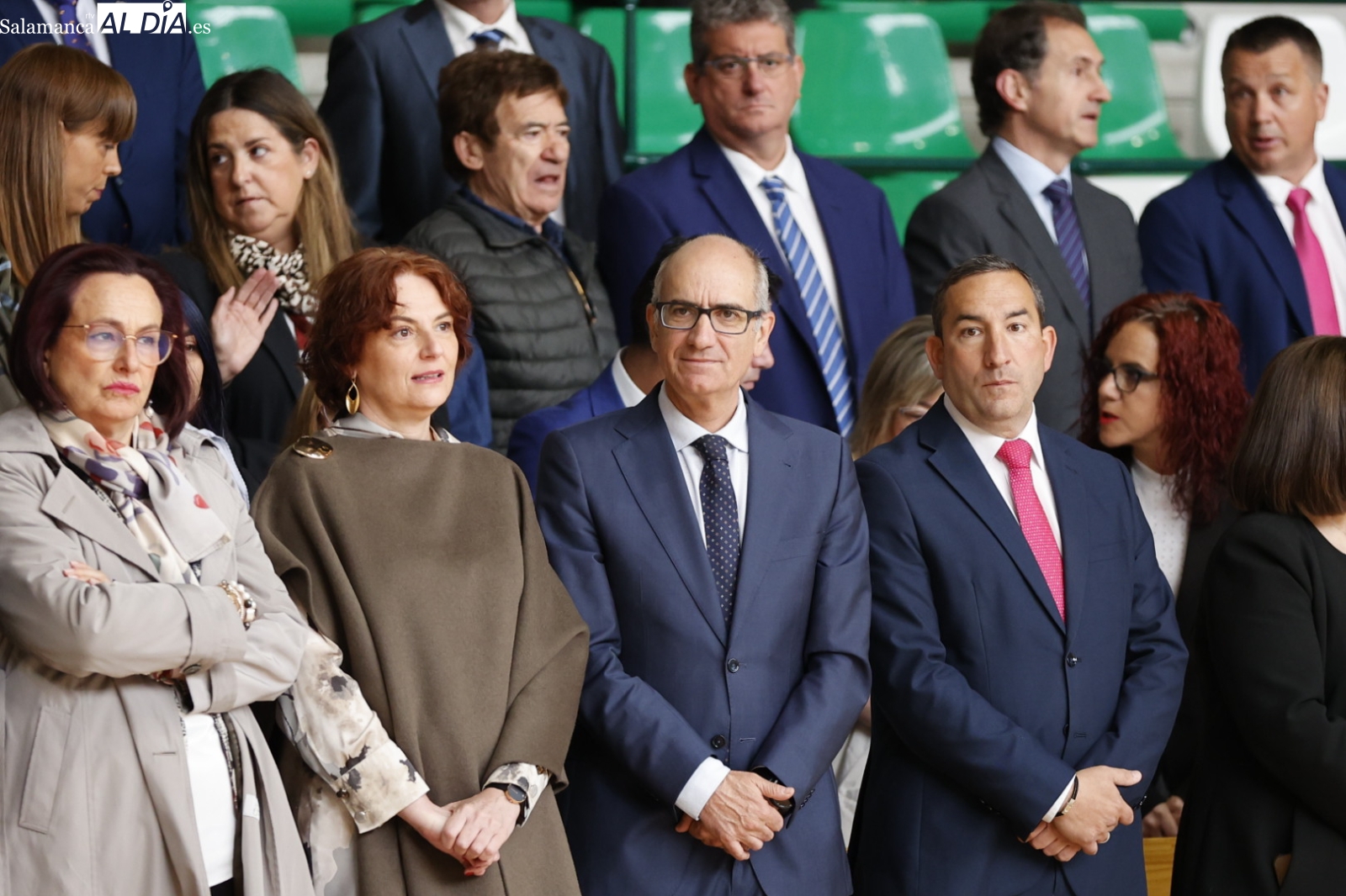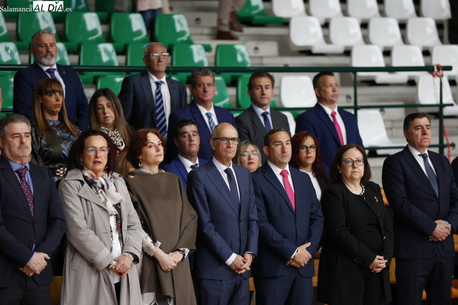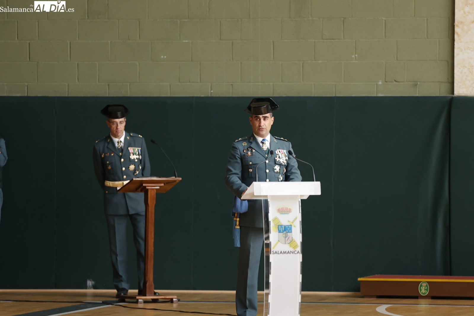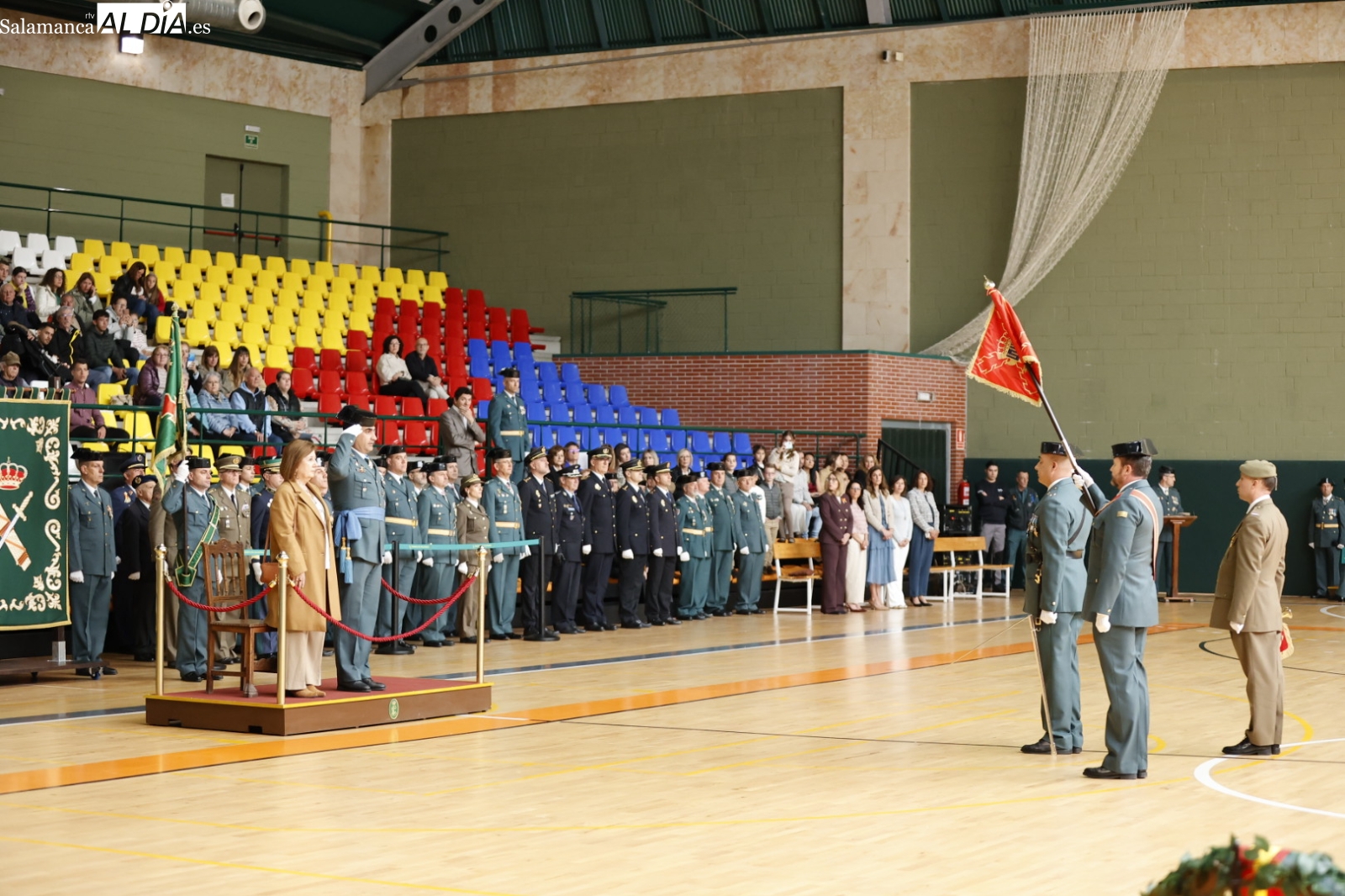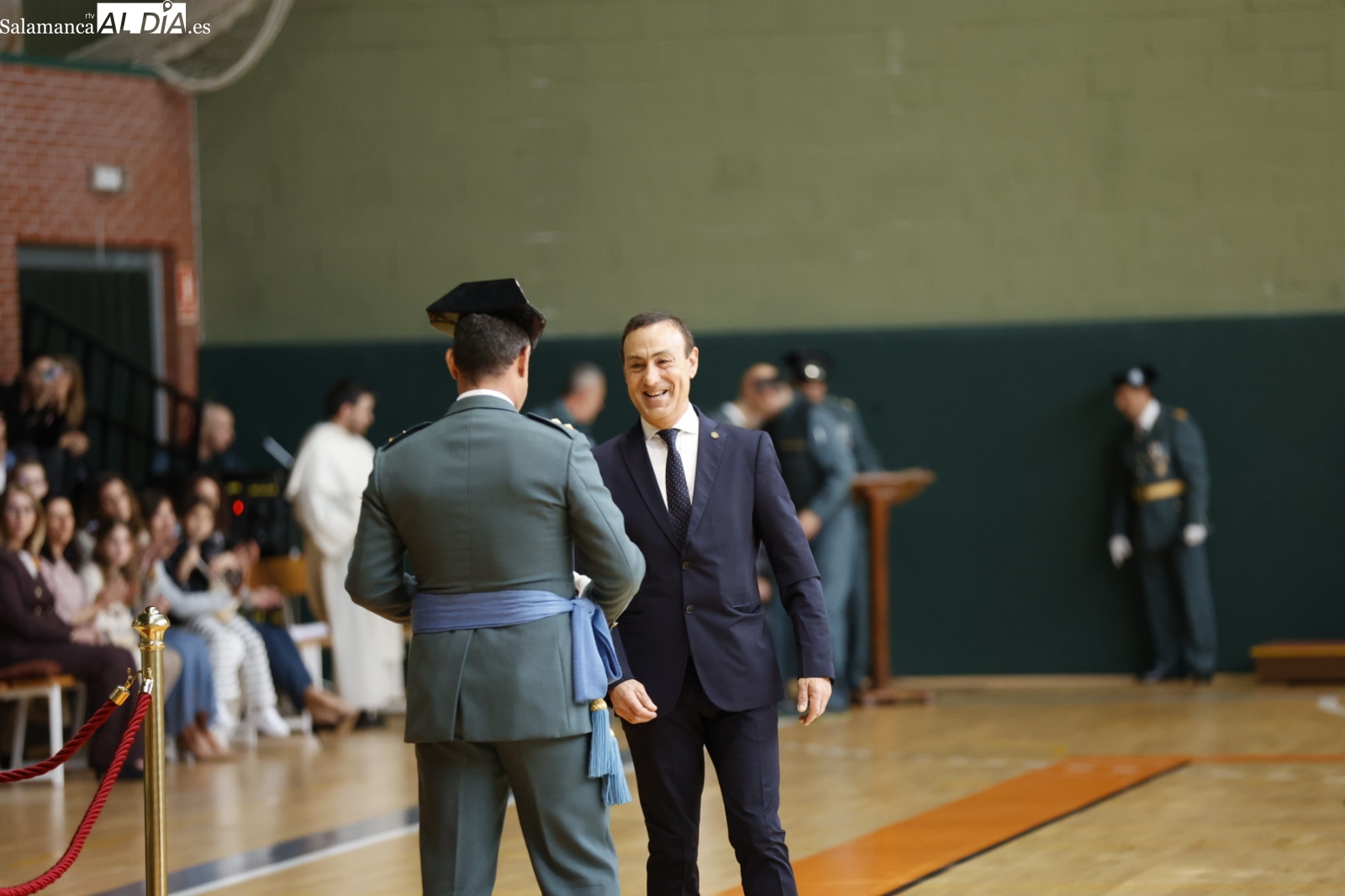 El pabellón municipal de Carbajosa de la Sagrada ha sido el escenario esta mañana de sábado, 10 de mayo, de los solemnes actos conmemorativos del 181 Aniversario de la Fundación del Cuerpo de la Guardia Civil. La celebración, presidida por Arturo Marcos, Teniente Coronel Jefe de la Comandancia de Salamanca y Rosa López, Subdelegada del Gobierno en Salamanca, ha contado con la asistencia de diversas autoridades civiles y militares de la provincia y ha congregado a numeroso público, en un evento que tuvo que ser celebrado bajo techo debido a las inclemencias meteorológicas.