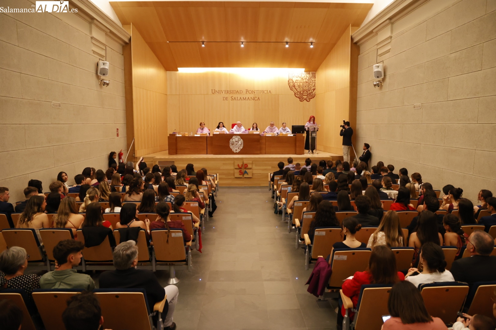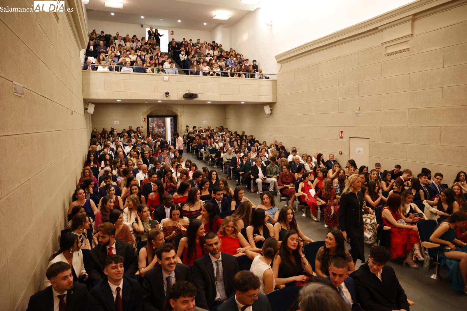 Familiares, amigos y miembros del claustro docente han acompañado a los recién graduados en un evento cargado de emoción y expectativas ante el futuro. Con la tradicional imposición de becas y la entrega de los correspondientes diplomas, los nuevos psicólogos cierran su etapa formativa en la institución salmantina, listos para afrontar los retos y oportunidades de su ejercicio profesional.