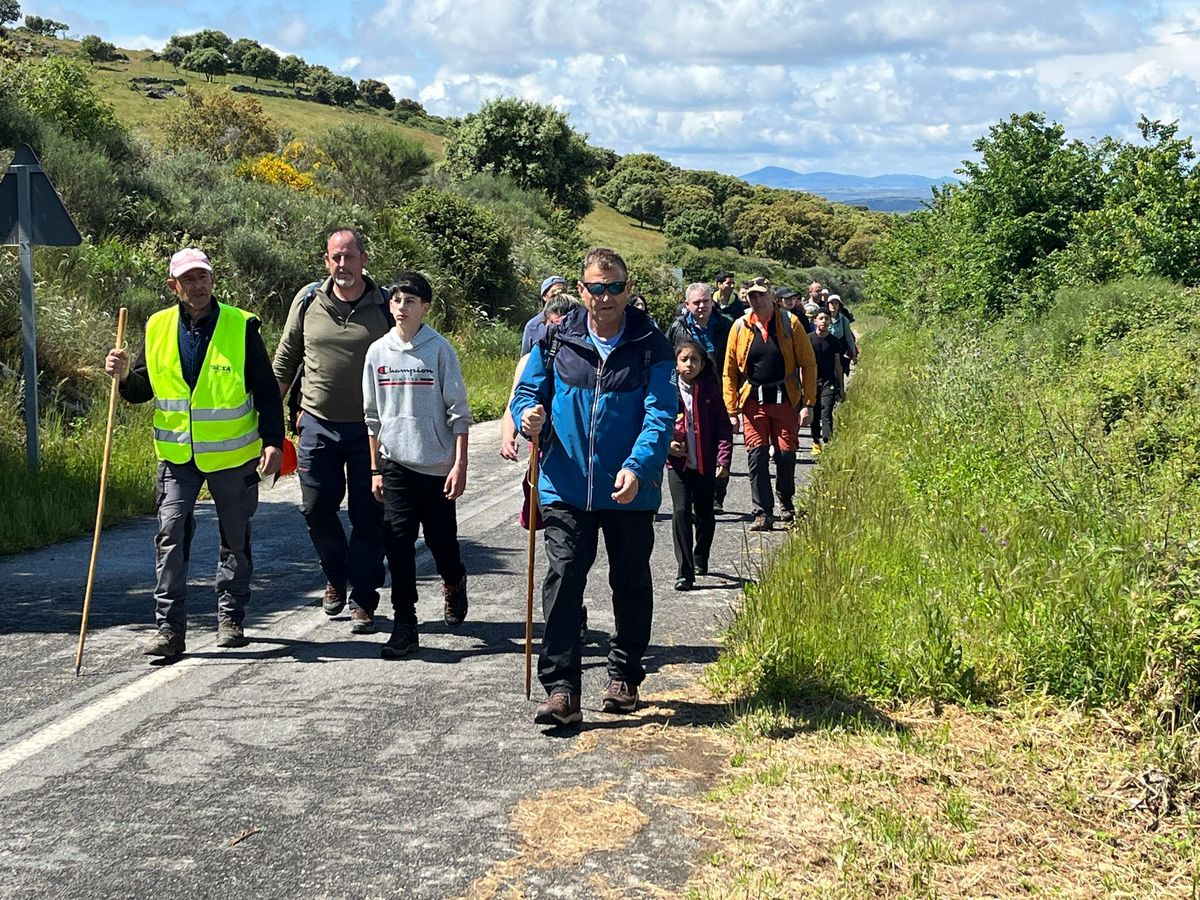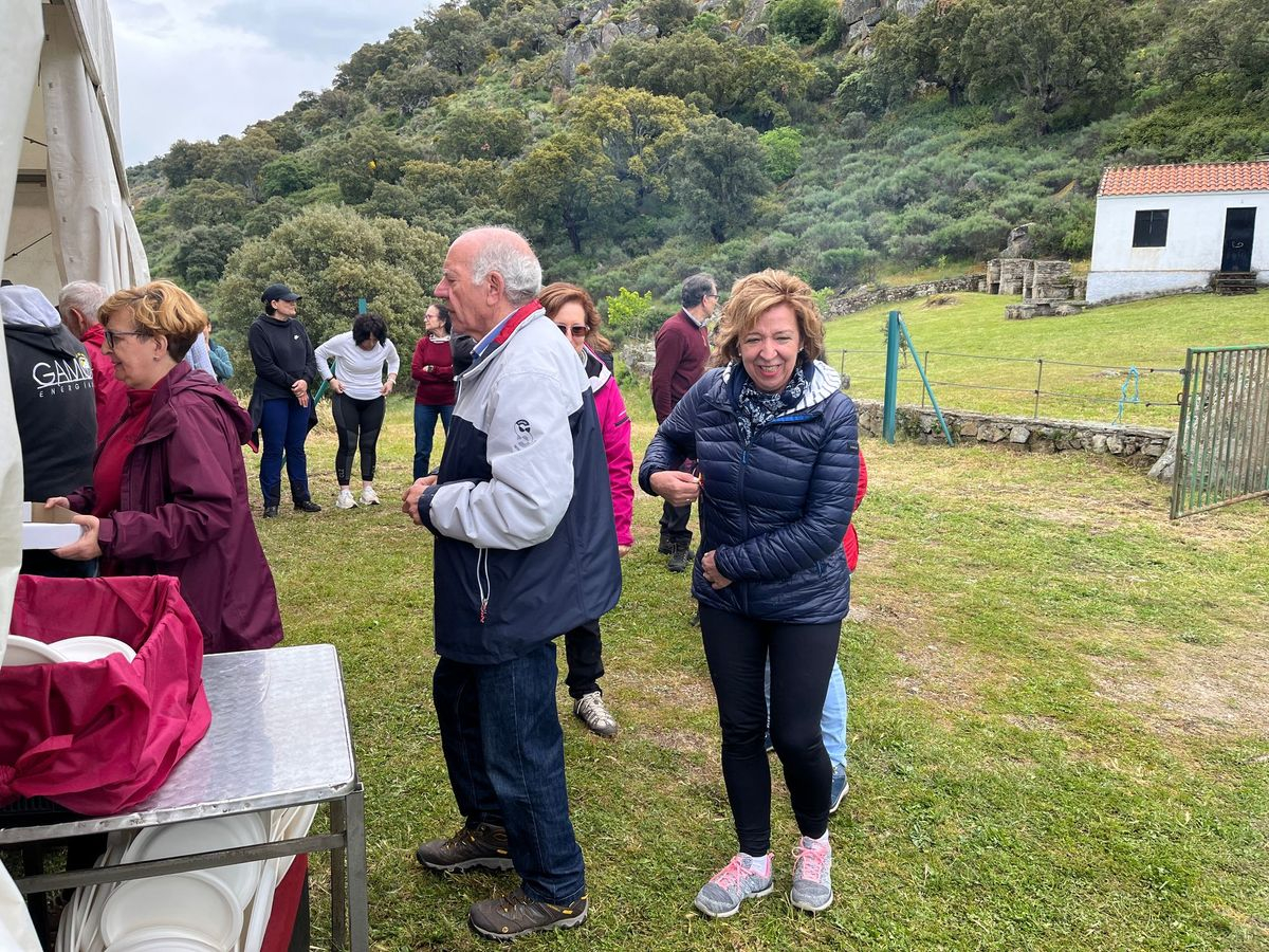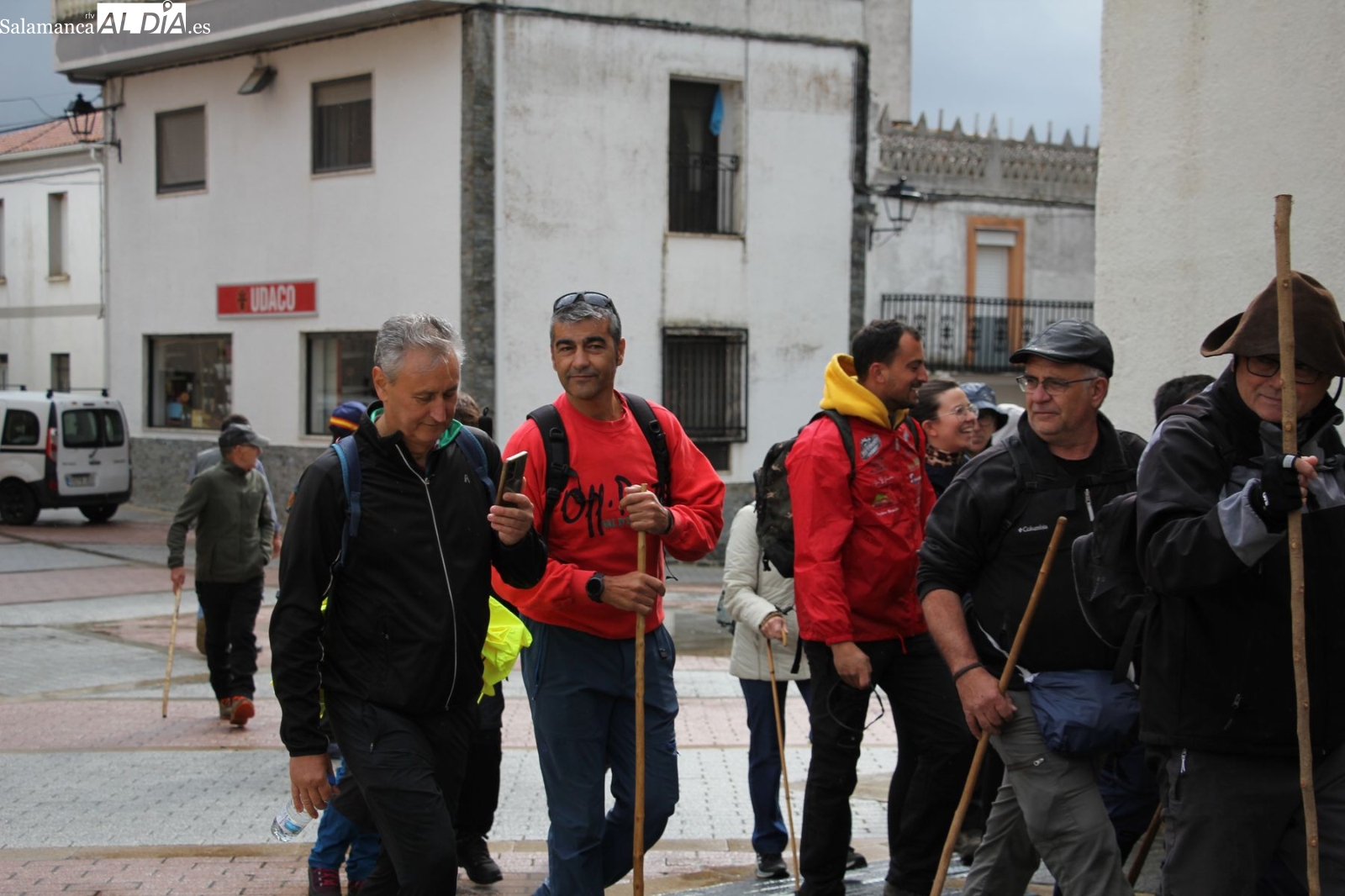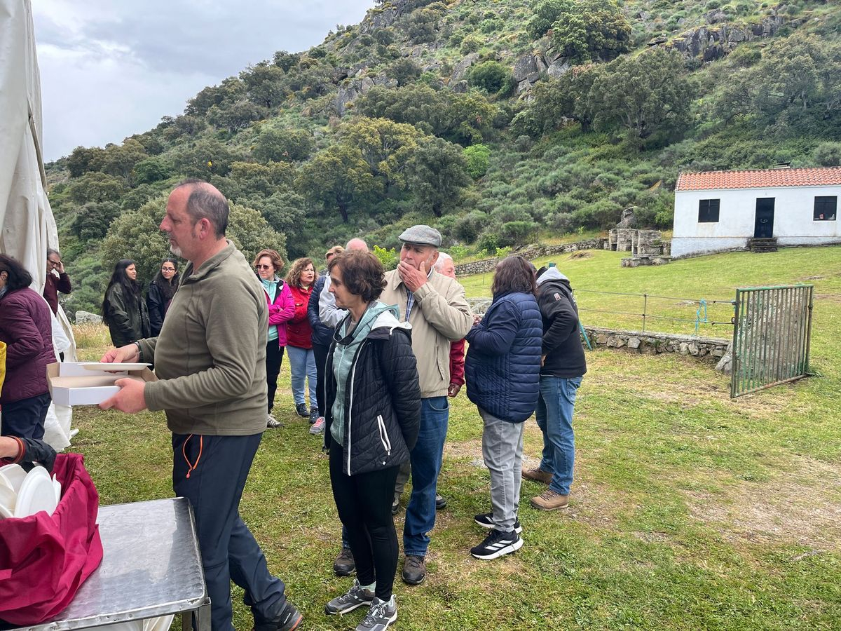 La presencia de una nube, que descargaba un buen aguacero, retrasaba unos minutos el inicio de la marcha. Una vez pasaron por el control donde les obsequiaron con un juego de cubiertos y provistos ya de la pulsera identificativa, los participantes iniciaban la salida desde la Plaza del Ayuntamiento, formando dos grupos, los que eligieron el recorrido general, tenían por delante unos 11,5 kilómetros hasta llegar al Llano de la Dehesa, lugar donde estaba prevista la comida. Por otro lado, los que prefirieron el recorrido corto, lo harían con 4,5 kilómetros.