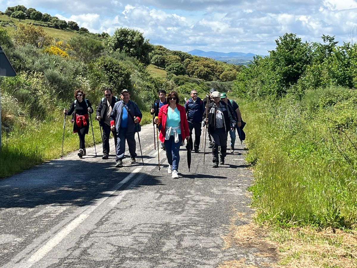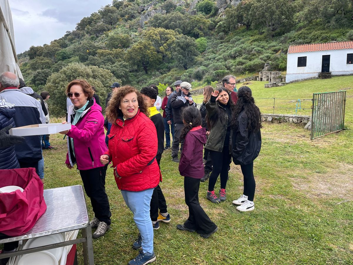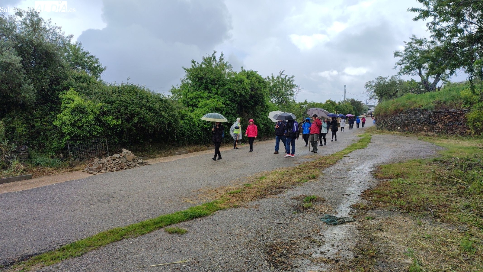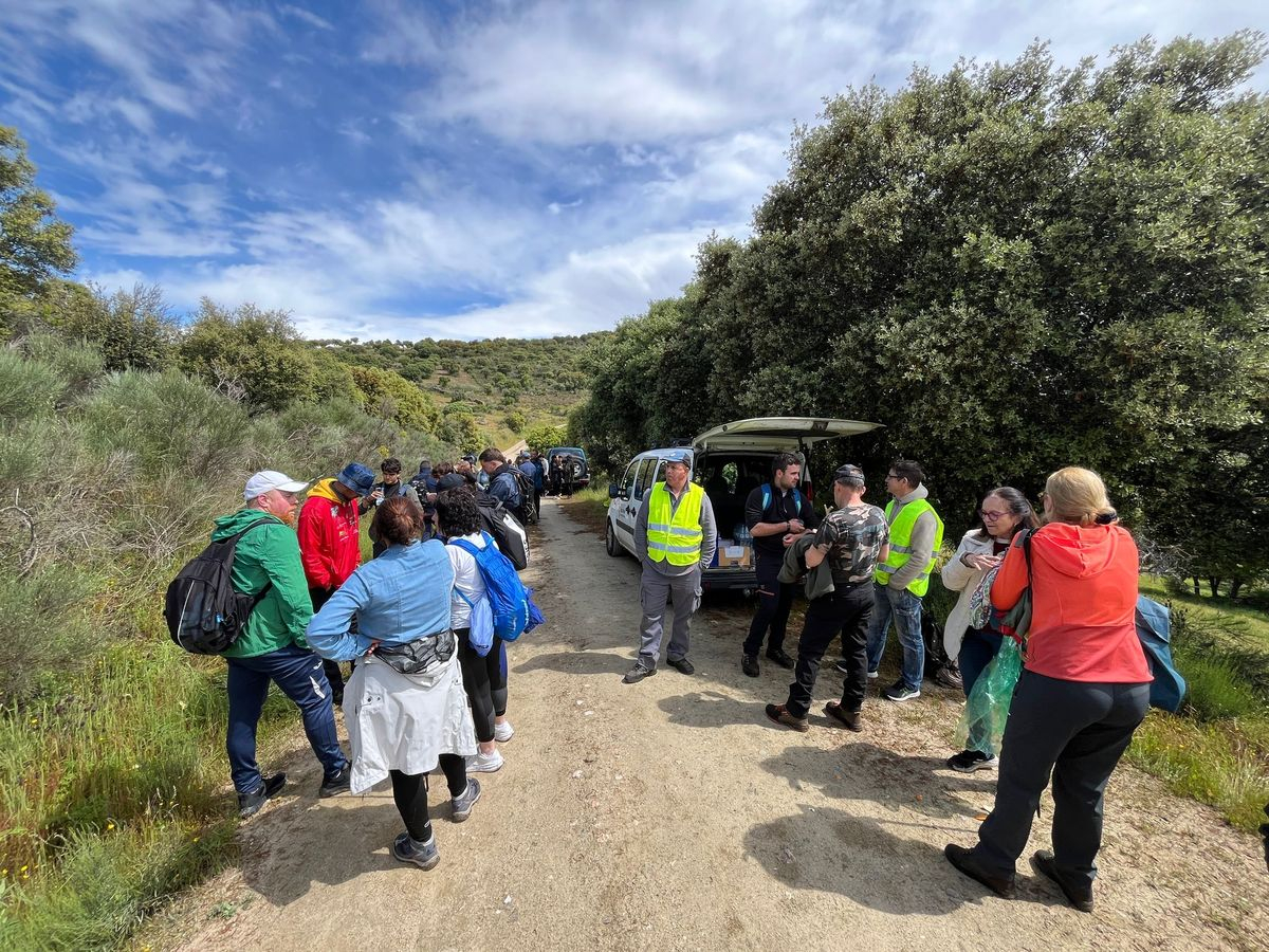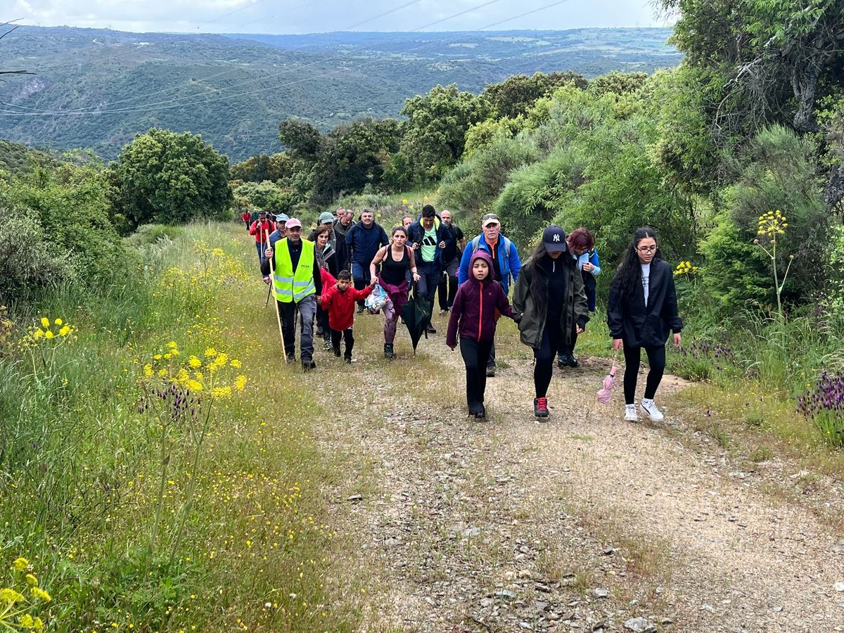 La presencia de una nube, que descargaba un buen aguacero, retrasaba unos minutos el inicio de la marcha. Una vez pasaron por el control donde les obsequiaron con un juego de cubiertos y provistos ya de la pulsera identificativa, los participantes iniciaban la salida desde la Plaza del Ayuntamiento, formando dos grupos, los que eligieron el recorrido general, tenían por delante unos 11,5 kilómetros hasta llegar al Llano de la Dehesa, lugar donde estaba prevista la comida. Por otro lado, los que prefirieron el recorrido corto, lo harían con 4,5 kilómetros.