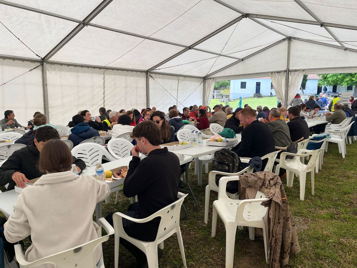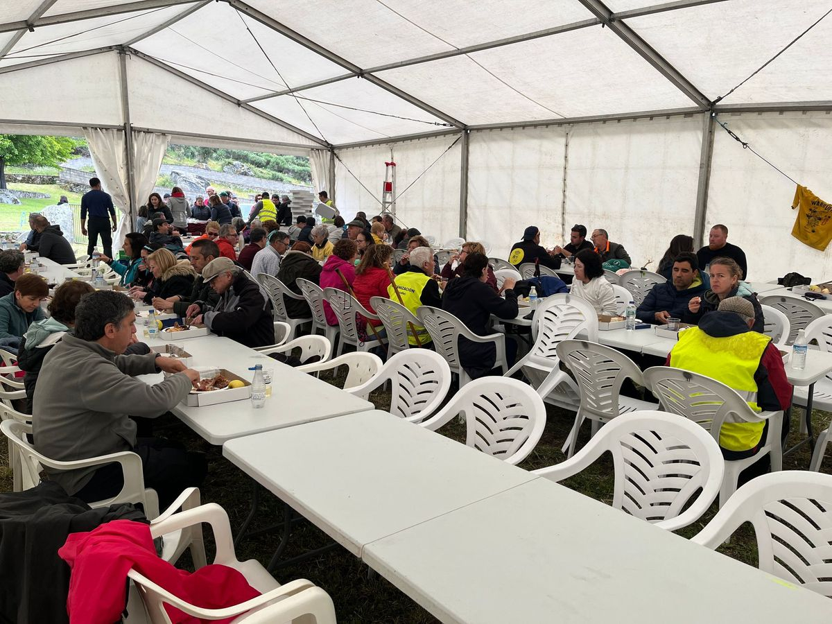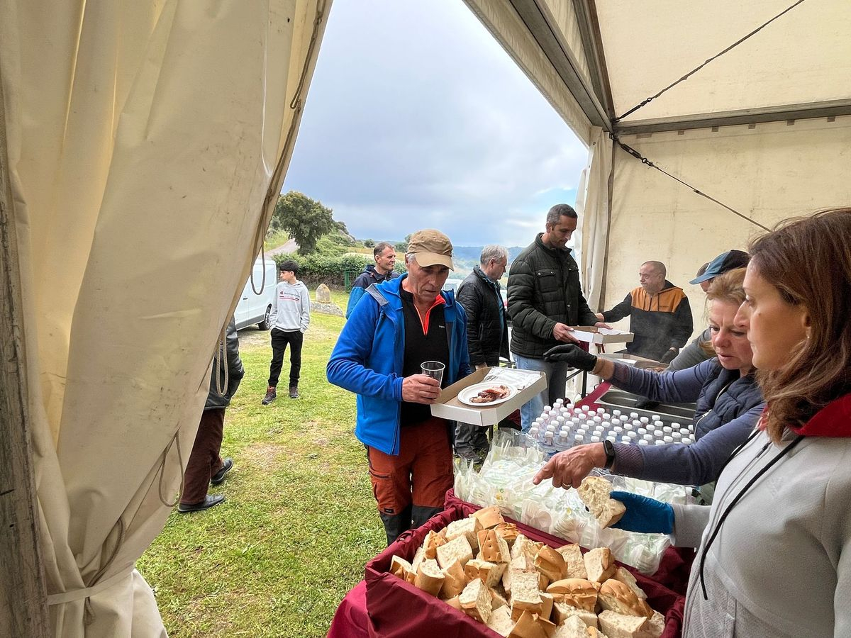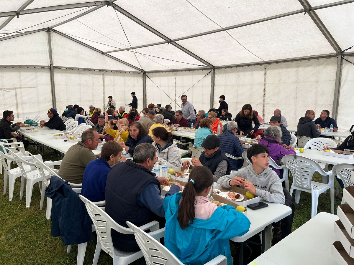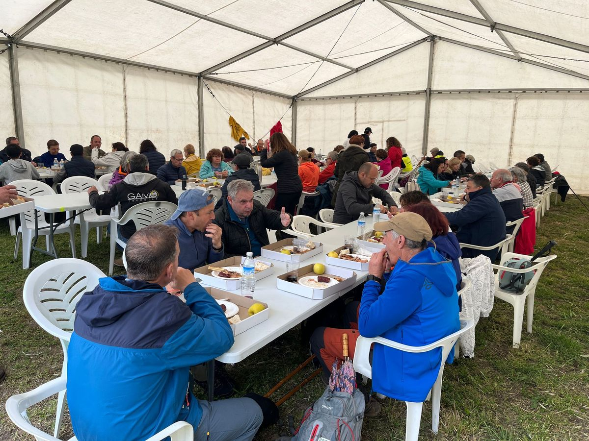 Unos minutos antes de las dos de la tarde comenzaba a verse en este lugar el goteo de senderistas en busca de la comida, barbacoa con chorizo asado, lomo y panceta para reponer fuerzas y que pondría un excelente broche a la jornada.
